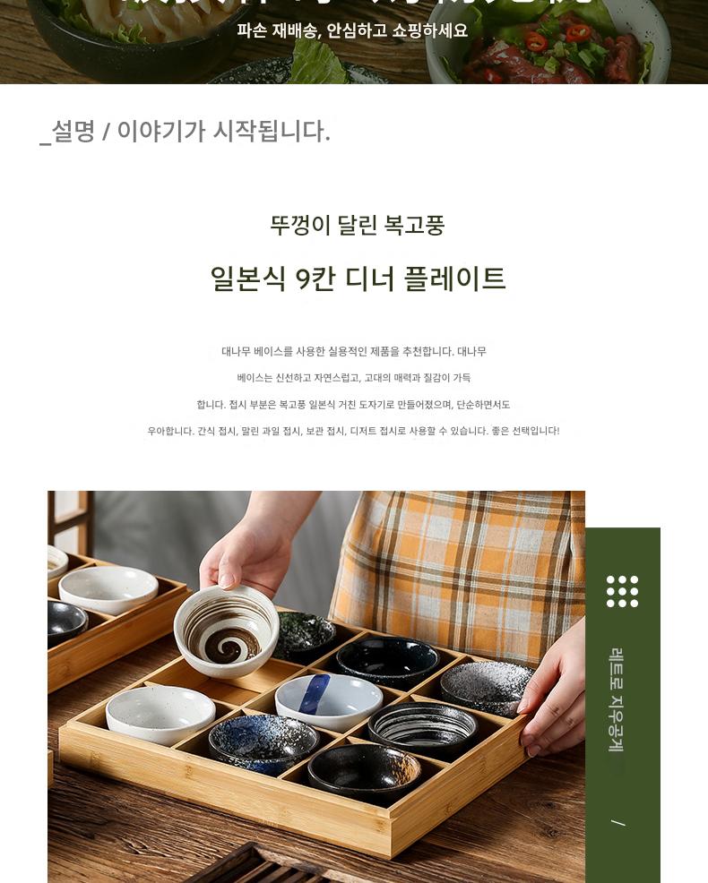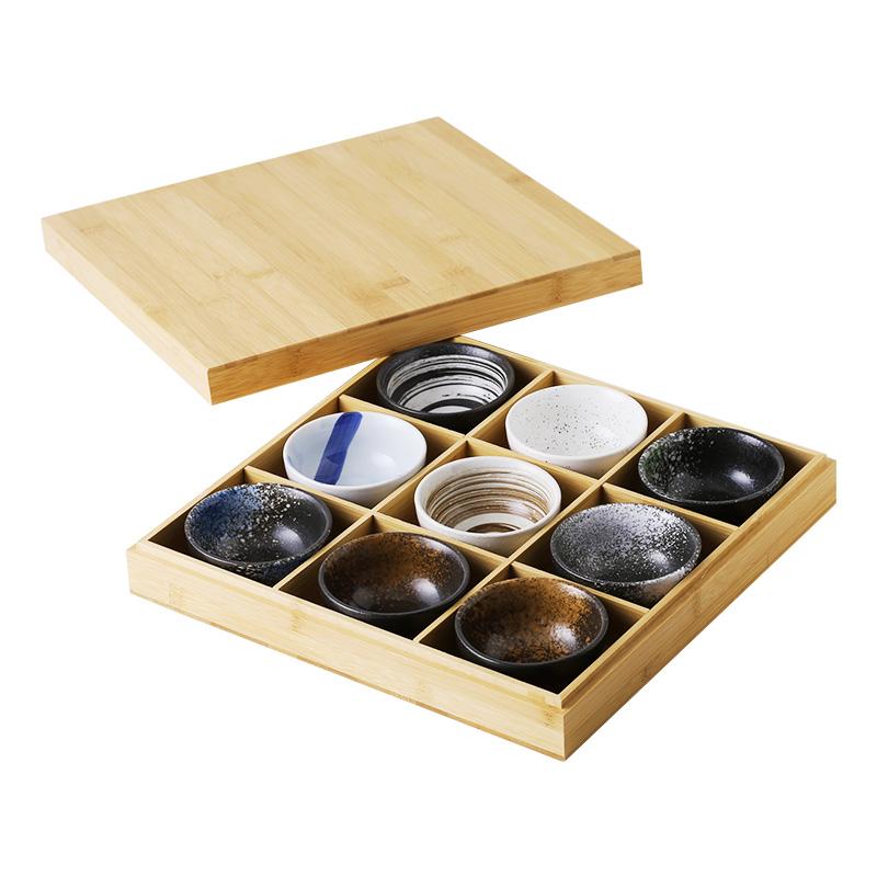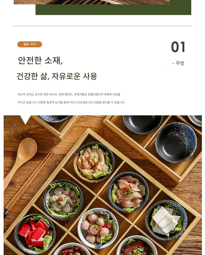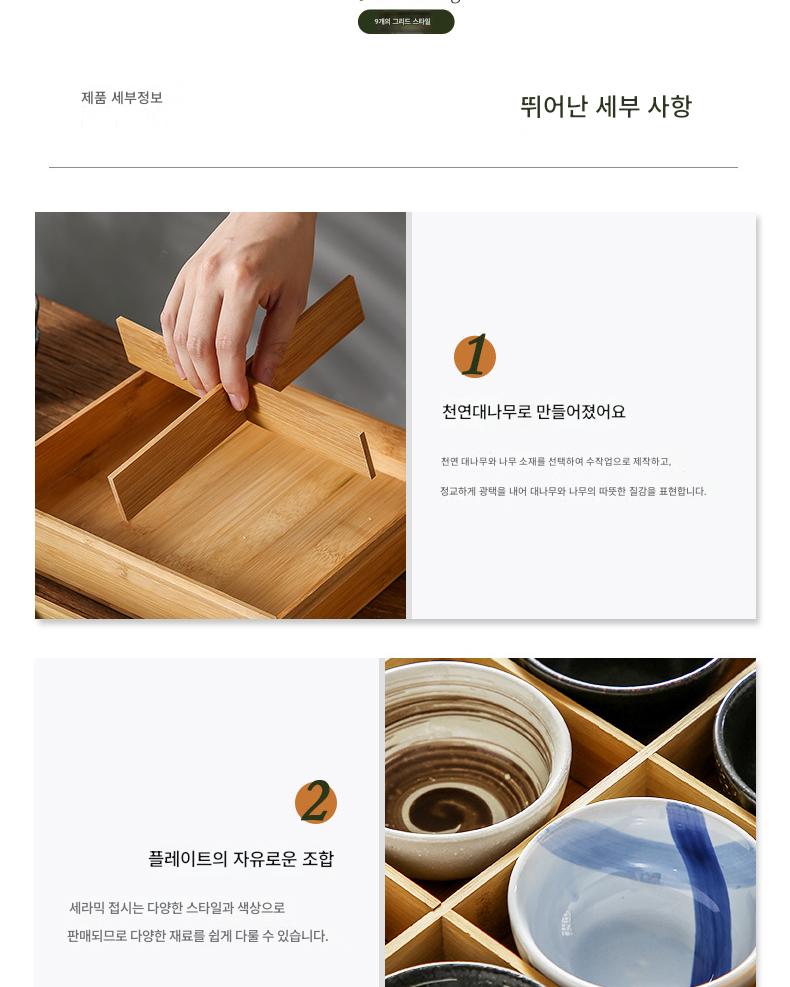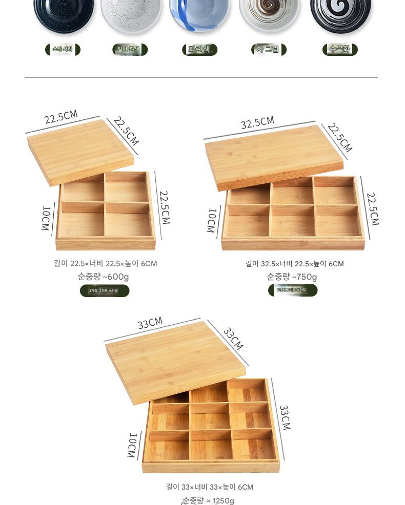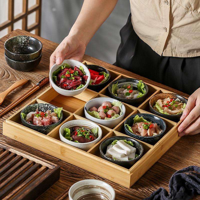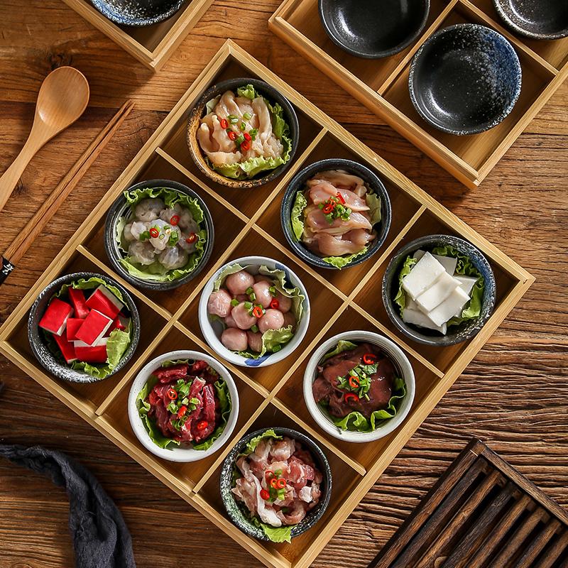 일본식 크리에이티브 9칸 바비큐 레스토랑 플레이트 핫팟 레스토랑 스페셜 식기 야채 그리드 뚜껑이 달린 대나무 쟁반