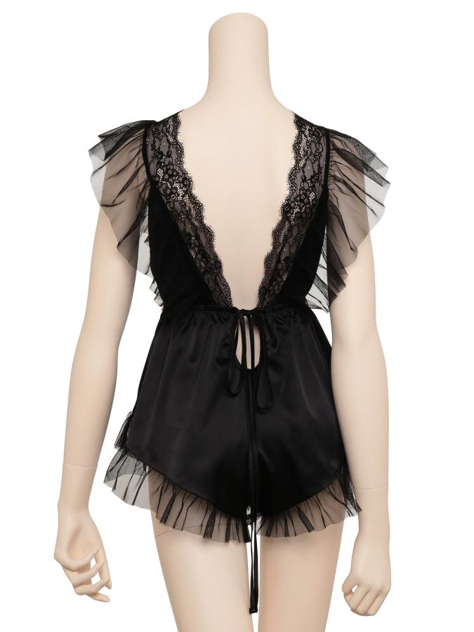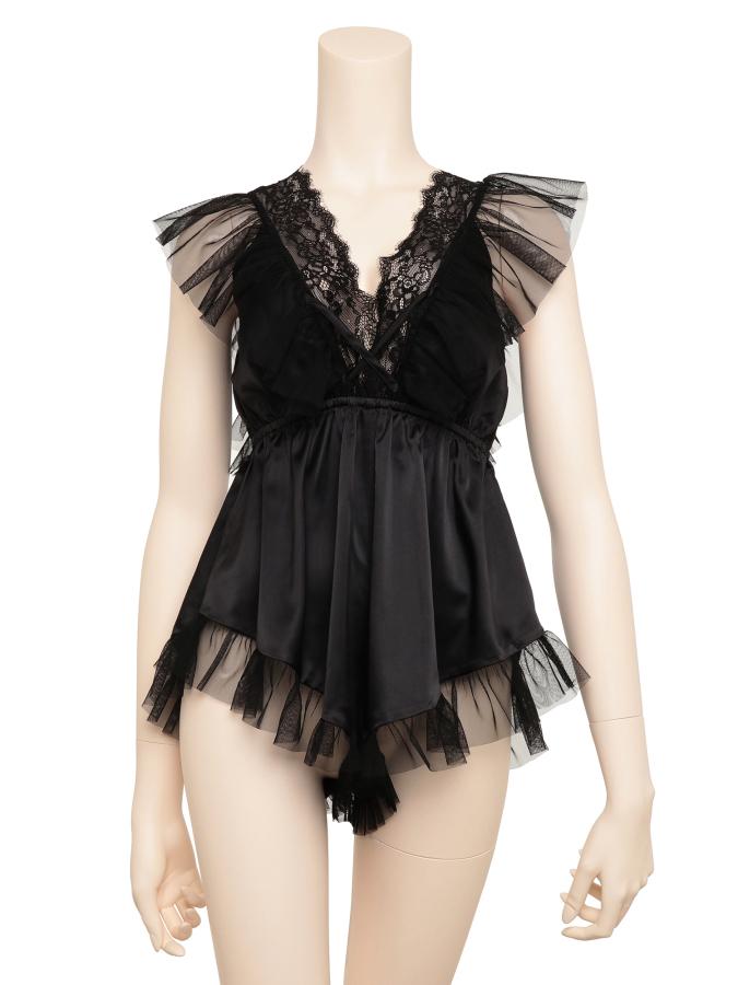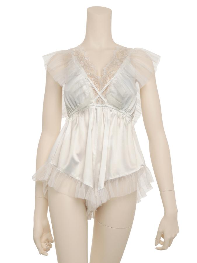 일본 구매 라비주르 아름다운 새틴 백 스플릿 레이스 반바지 가슴 패드 섹시 파자마