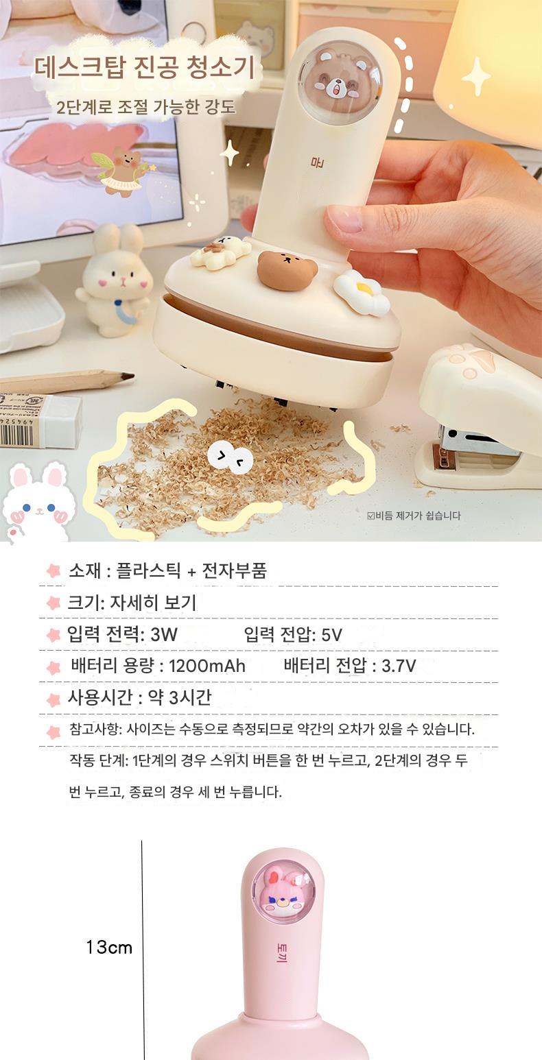 일본 수입 세이코 소형 진공 청소기 학생용 데스크탑 지우개 조각 USB 충전식 미니 청소 문구