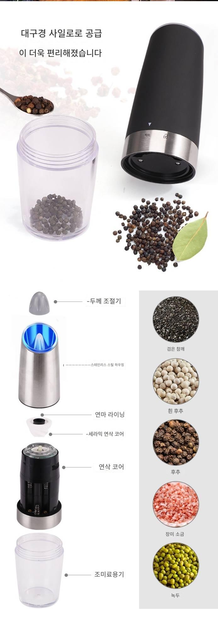 “일본 전기 후추 분쇄기 곡물 후추 바다 소금 분쇄 병 수동 스테인리스 스틸 자동 분쇄기”의 첫 상품평을 남겨 주세요