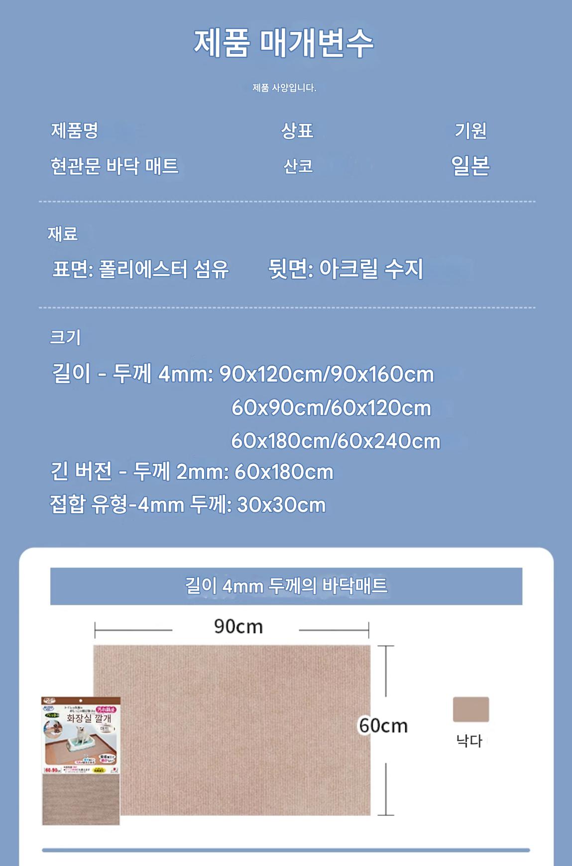 일본 SANKO 현관매트 도어매트 카펫 미끄럼방지 고급 초박형 방수 도어매트 홈