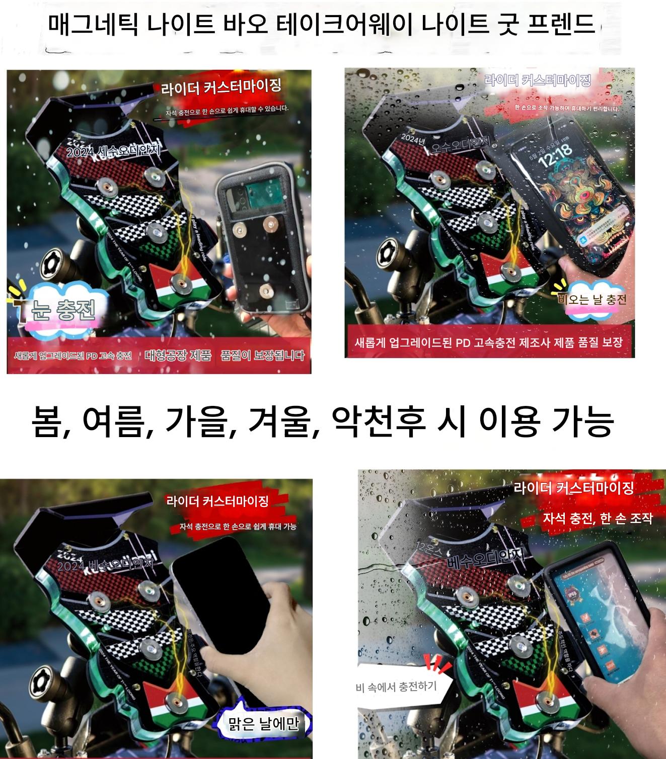자기 충전 무선 전화 홀더” 화창한 날, 비오는 날, 눈오는 날의 전기 오토바이 배달 라이더를 위한 트렌디한 장비