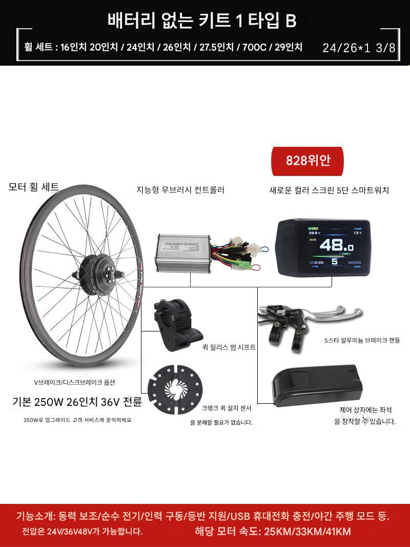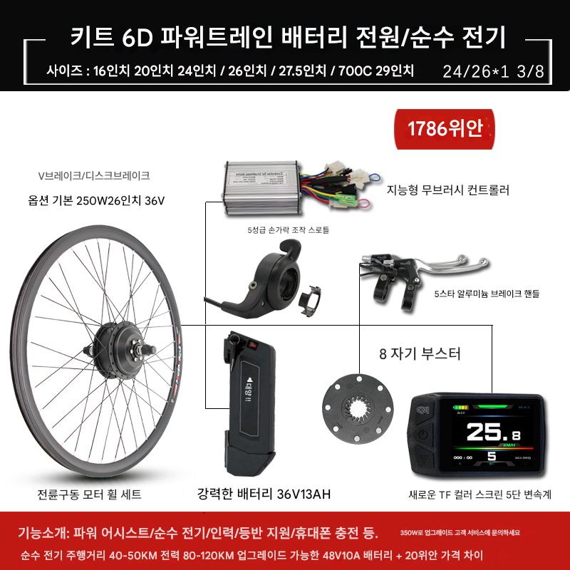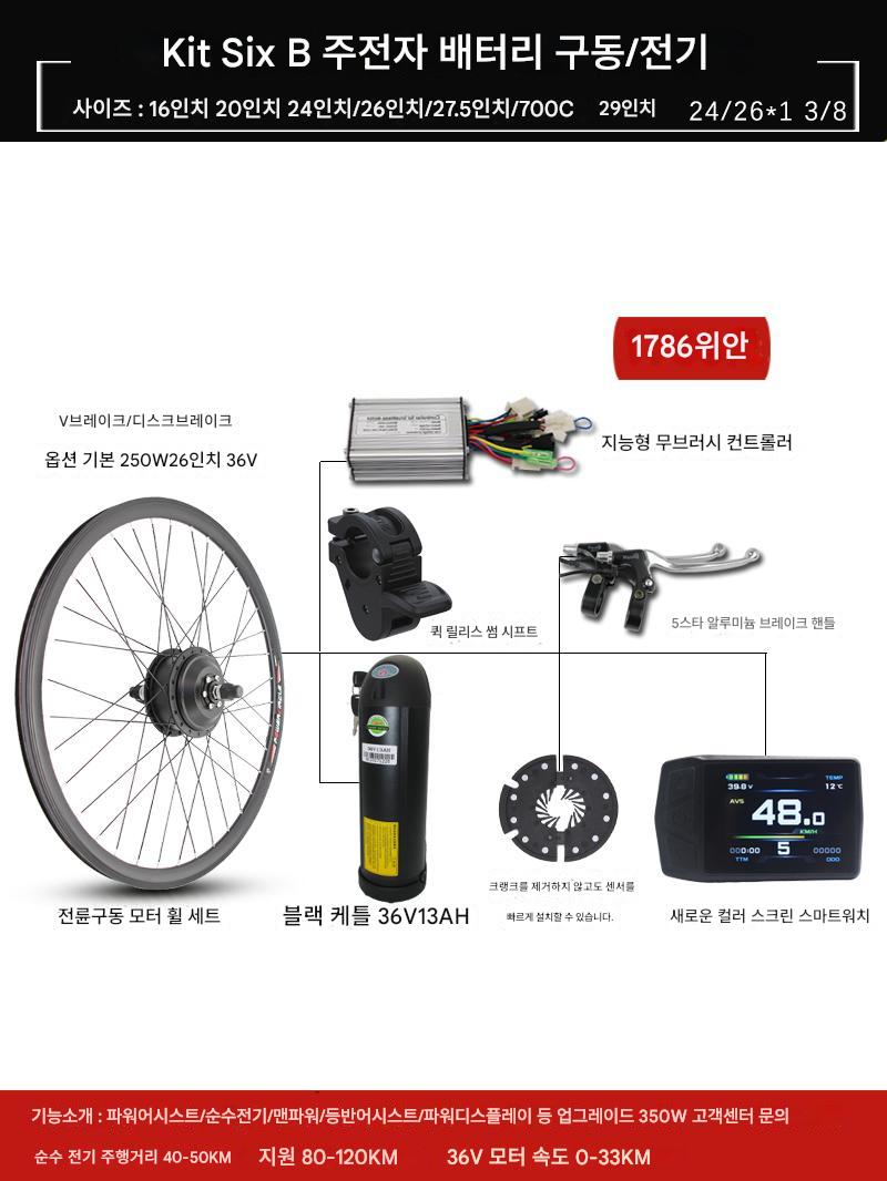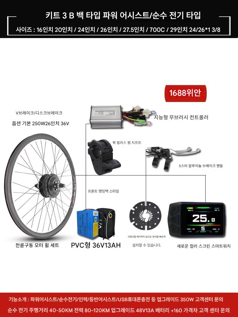 자전거 개조 전기 자동차 키트 산악 자전거 전동 보조 자전거 앞뒤 구동 고속 모터 모터 자전거 전기 모터