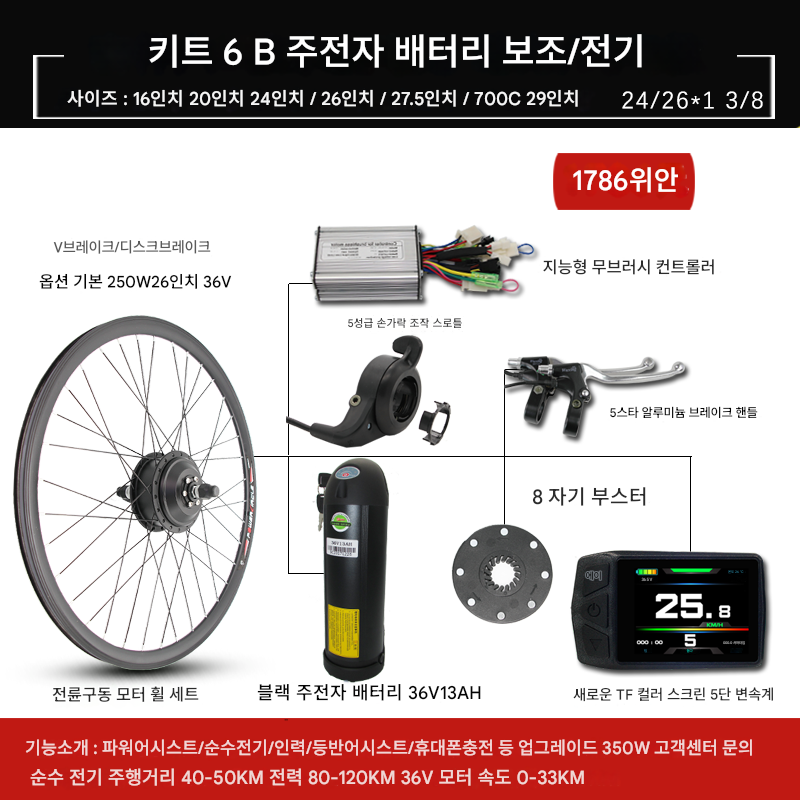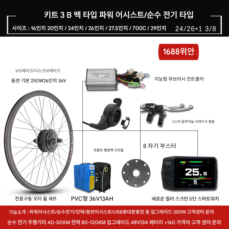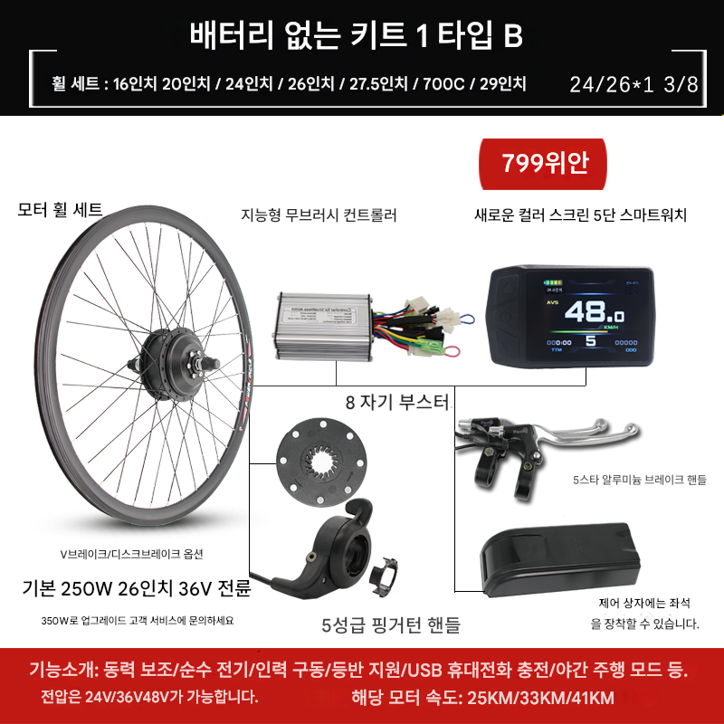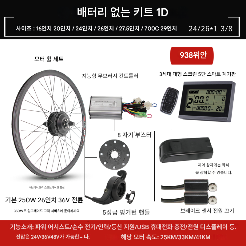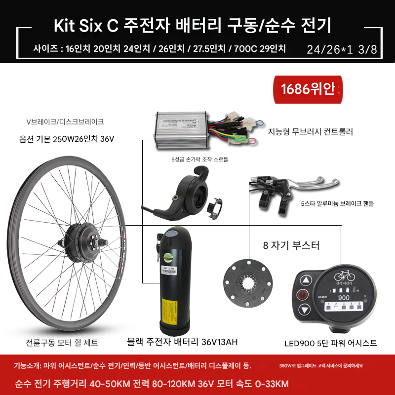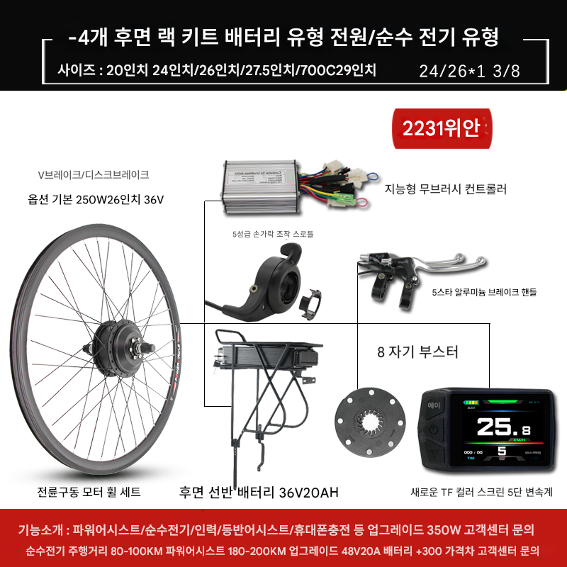 자전거 개조 전기 자동차 키트 산악 자전거 전동 보조 자전거 앞뒤 구동 고속 모터 모터 자전거 전기 모터