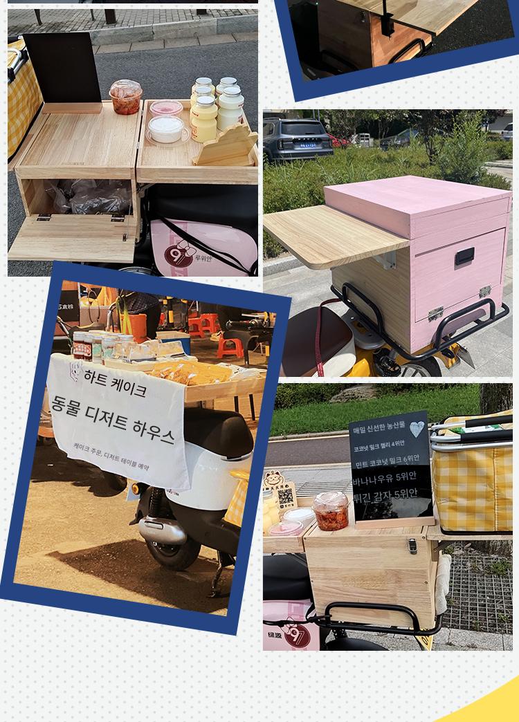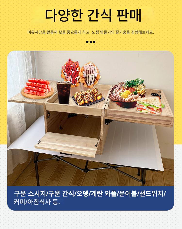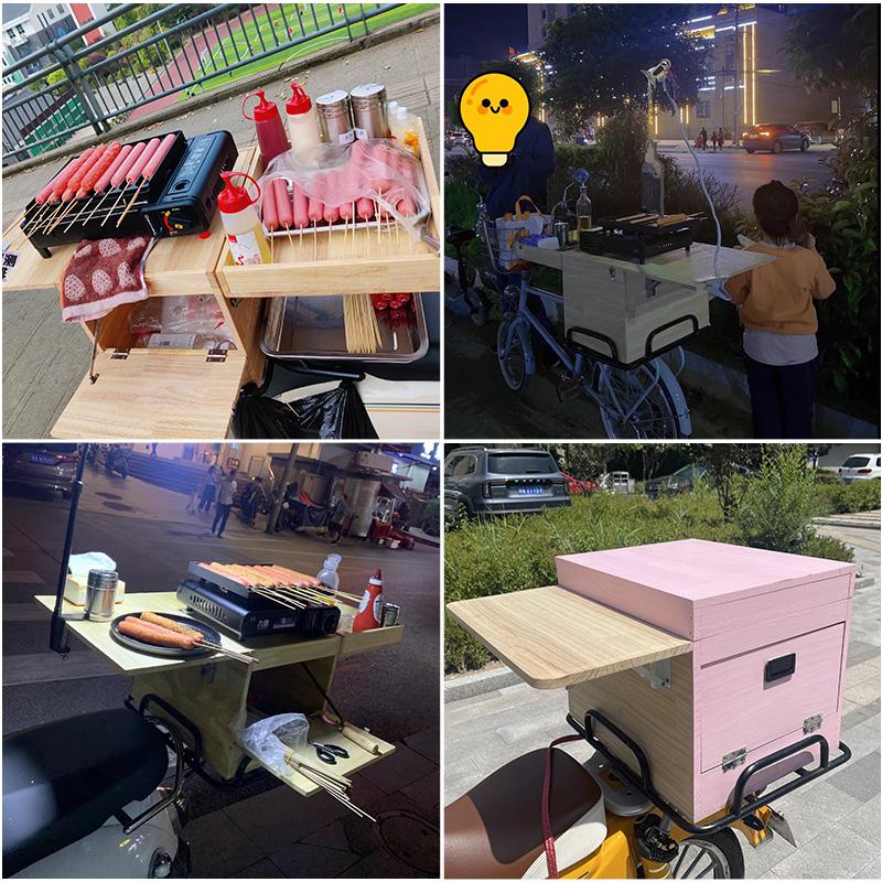 전기 자동차 야시장 노점 나무 상자 백업 트렁크 보관 랙 접이식 휴대용 견고한 나무 노점 구운 소시지 유물