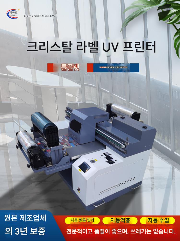 전자동 롤 크리스탈 라벨 UV 프린터 소형 플랫 유리 와인 병 라벨 광고 범용 인쇄기