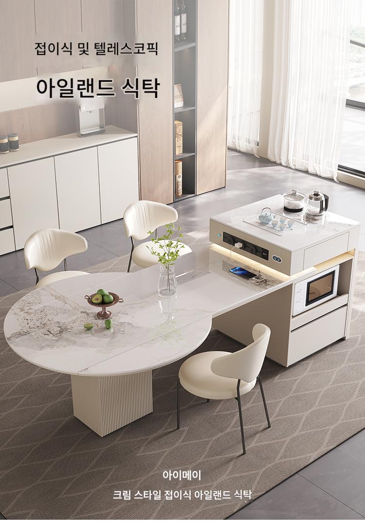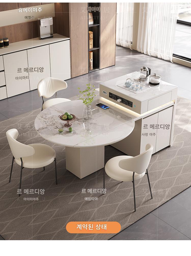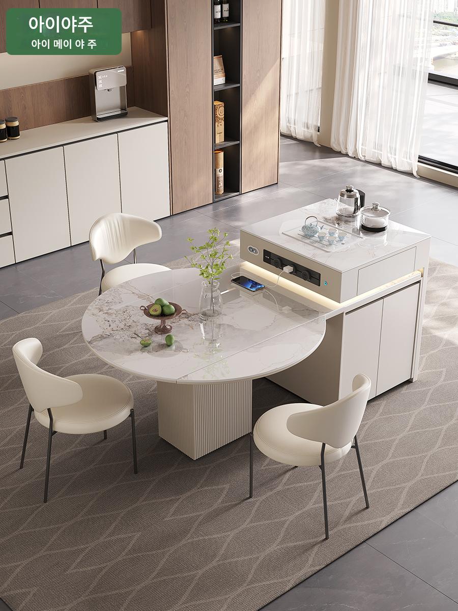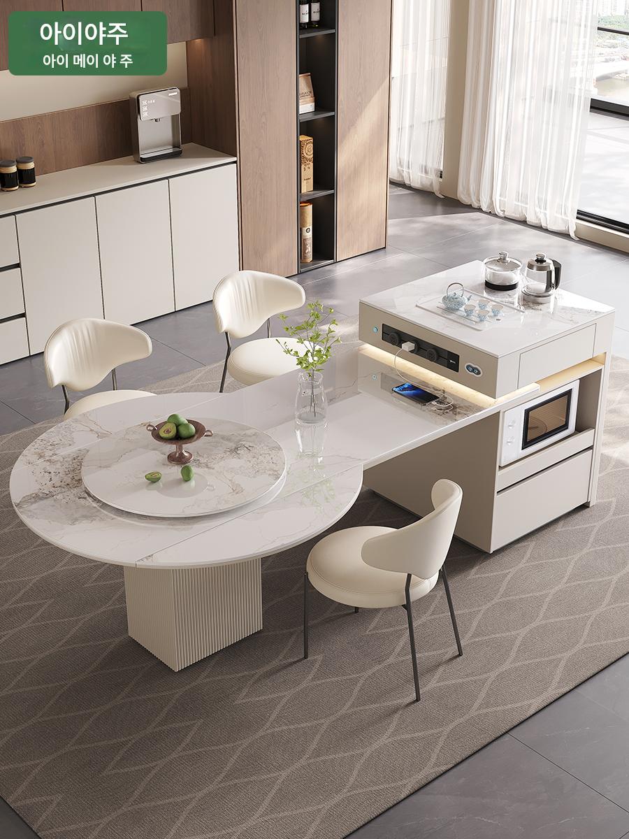 전자동 솔리드 우드 록 플레이트 아일랜드 테이블 식탁 통합 크림 스타일 텔레스코픽 접이식 스마트 전기 음성 주방 티바
