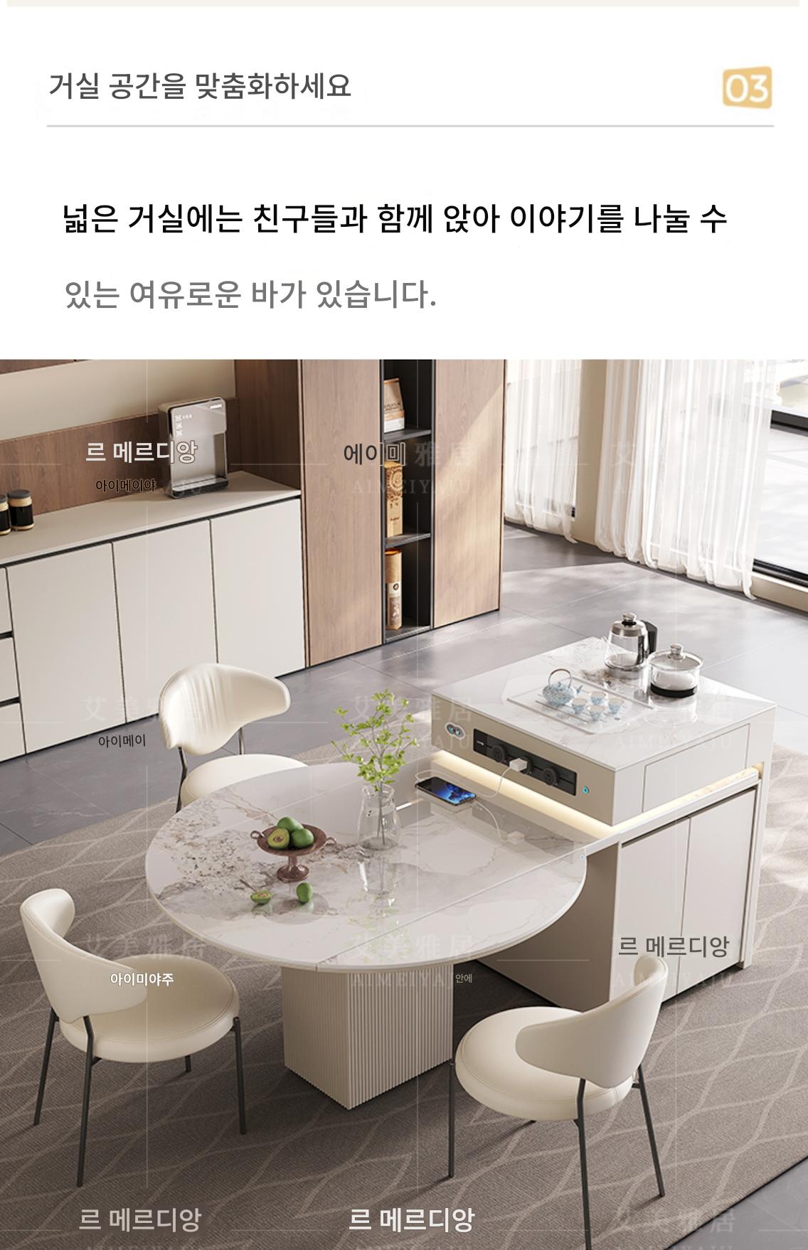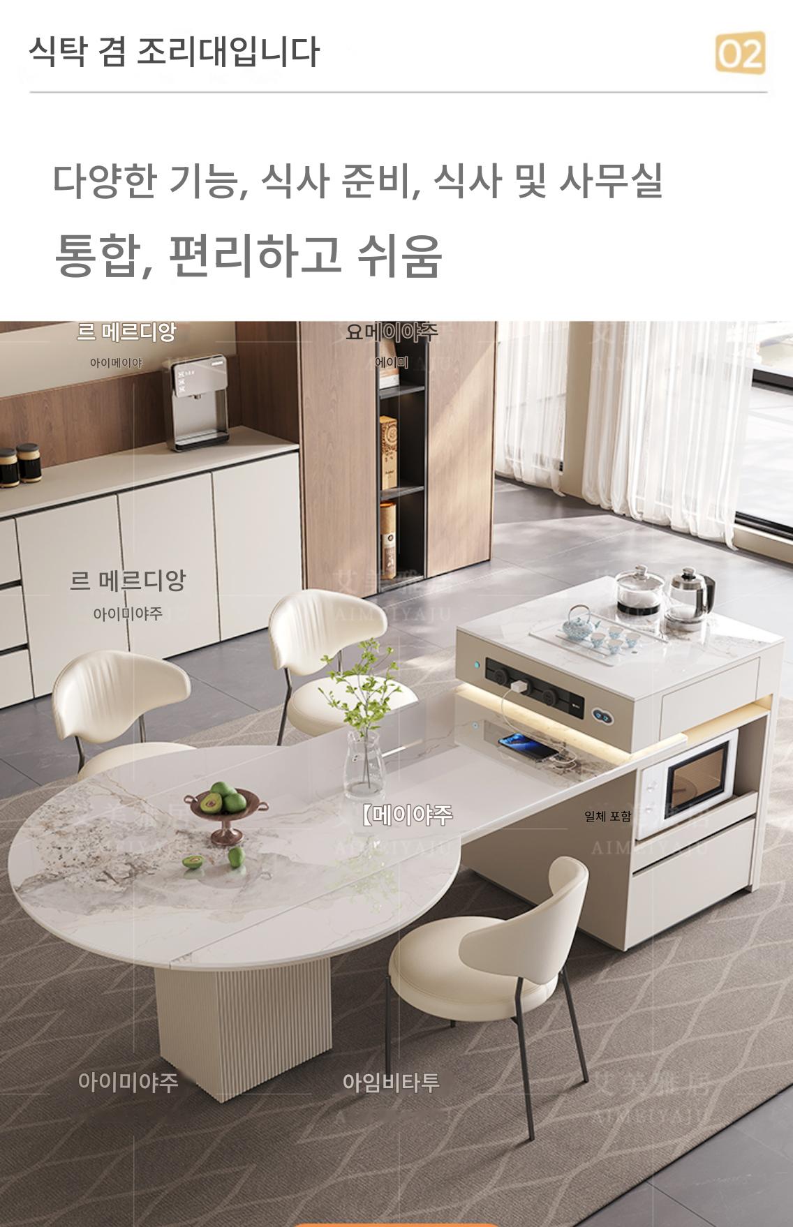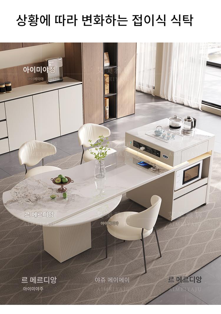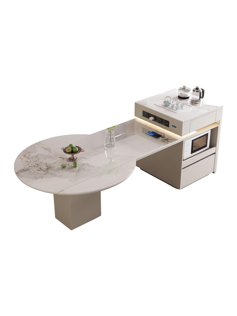 전자동 솔리드 우드 록 플레이트 아일랜드 테이블 식탁 통합 크림 스타일 텔레스코픽 접이식 스마트 전기 음성 주방 티바