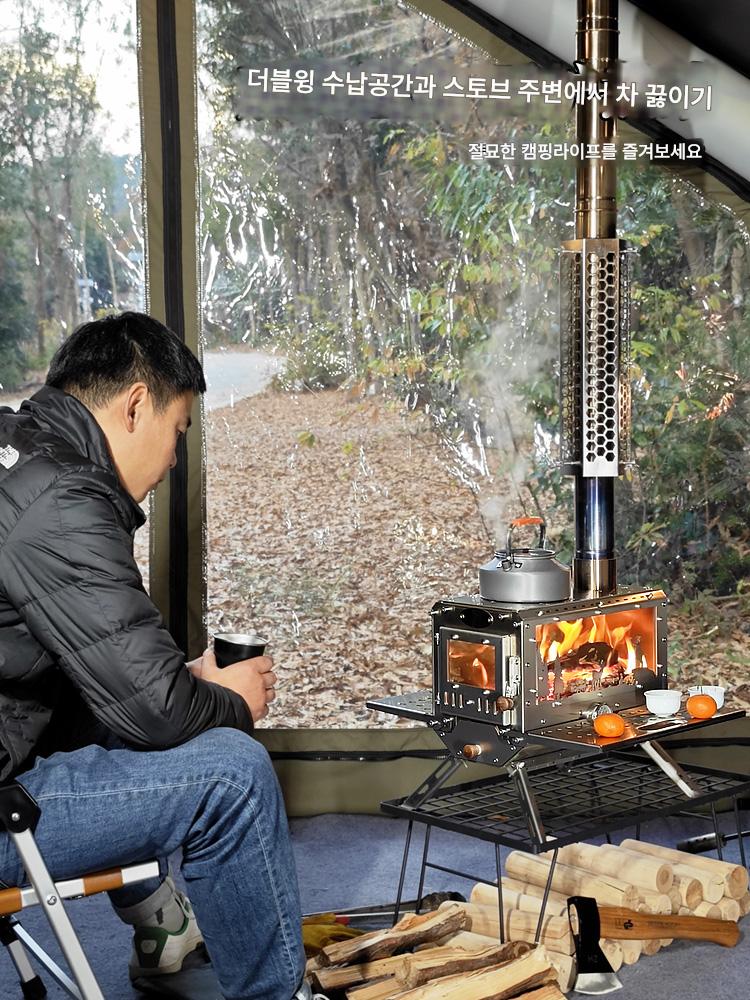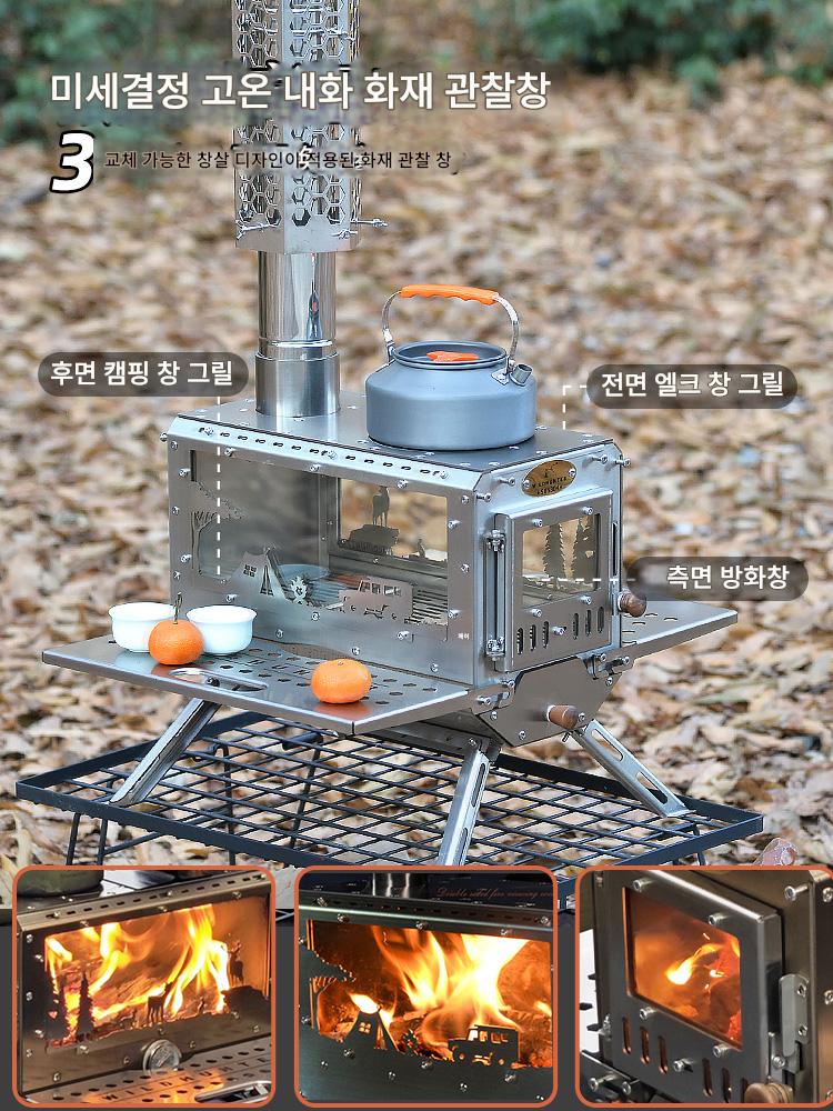 절묘한 캠핑 엘프 나무 난로 3면 화덕 304 벽난로 오븐 입자 창고 야외 텐트 난방 피크닉 난로