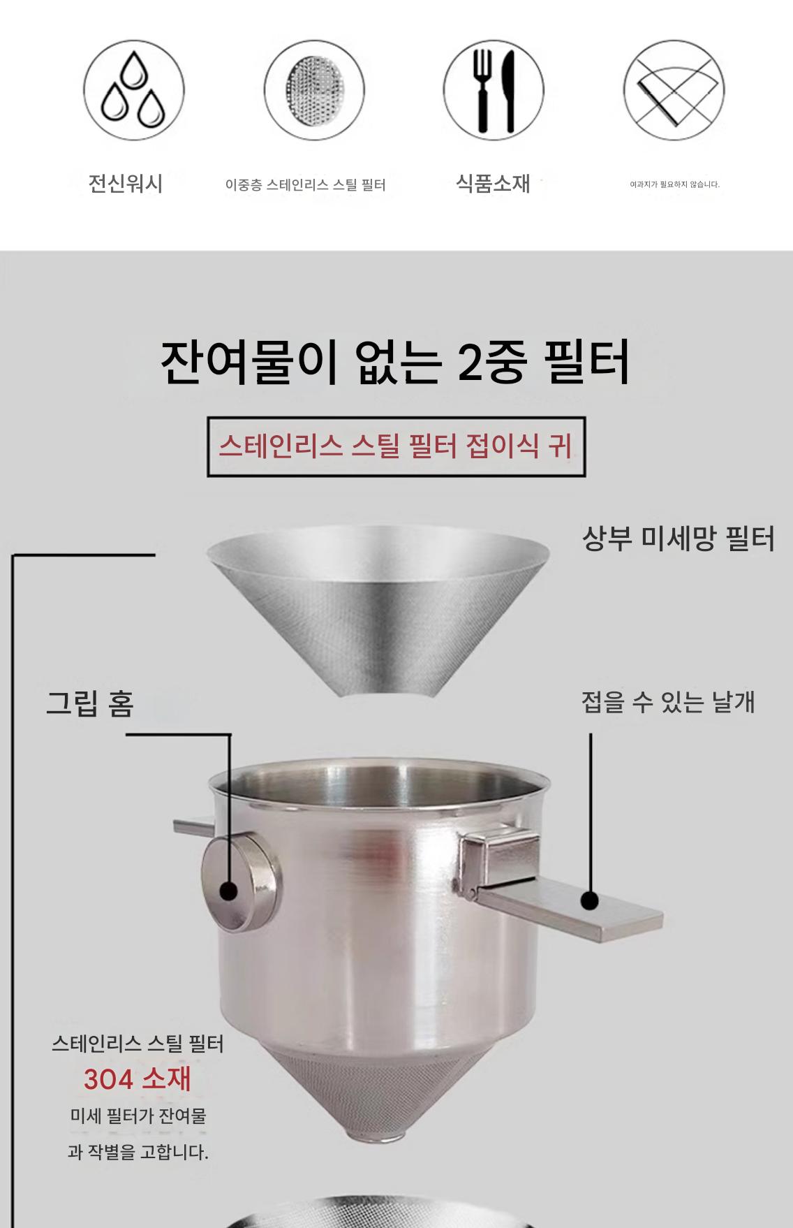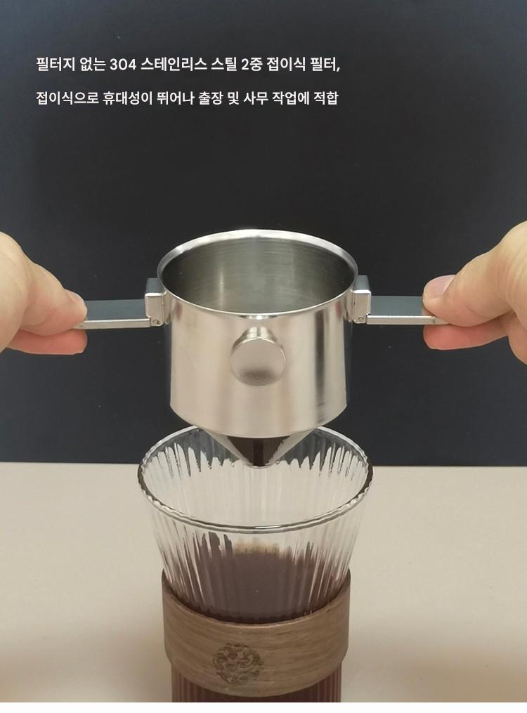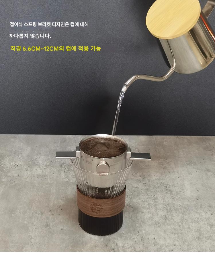 접이식 걸이형 커피필터 컵 필터지 프리드립 타입 304 스테인리스 스틸 필터 핸드브루 휴대용 커피메이커