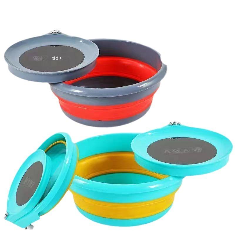 접이식 느슨한 거품통 전체 자석 미끼 트레이 낚시 상자 낚시 의자 범용 휴대용 미끼 통 회전 이중 레이어 낚시 및 미끼 통