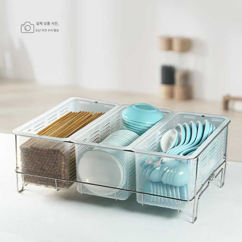 젓가락과 숟가락 보관 바구니 식기 배수 랙 데스크탑 상업용 소독 캐비닛 특수 젓가락 랙 3 그리드 파티션