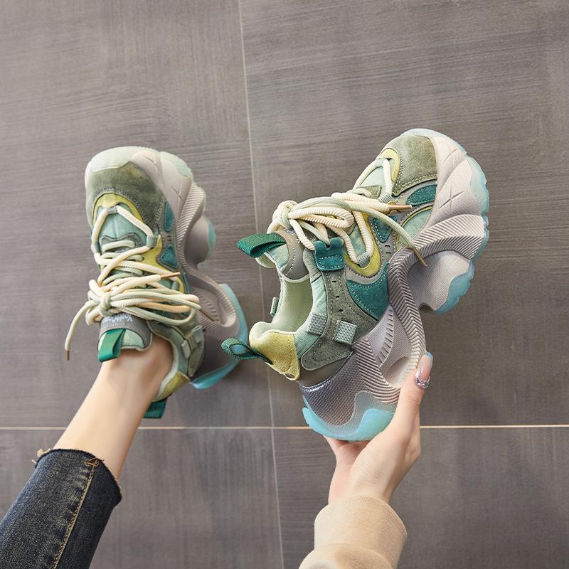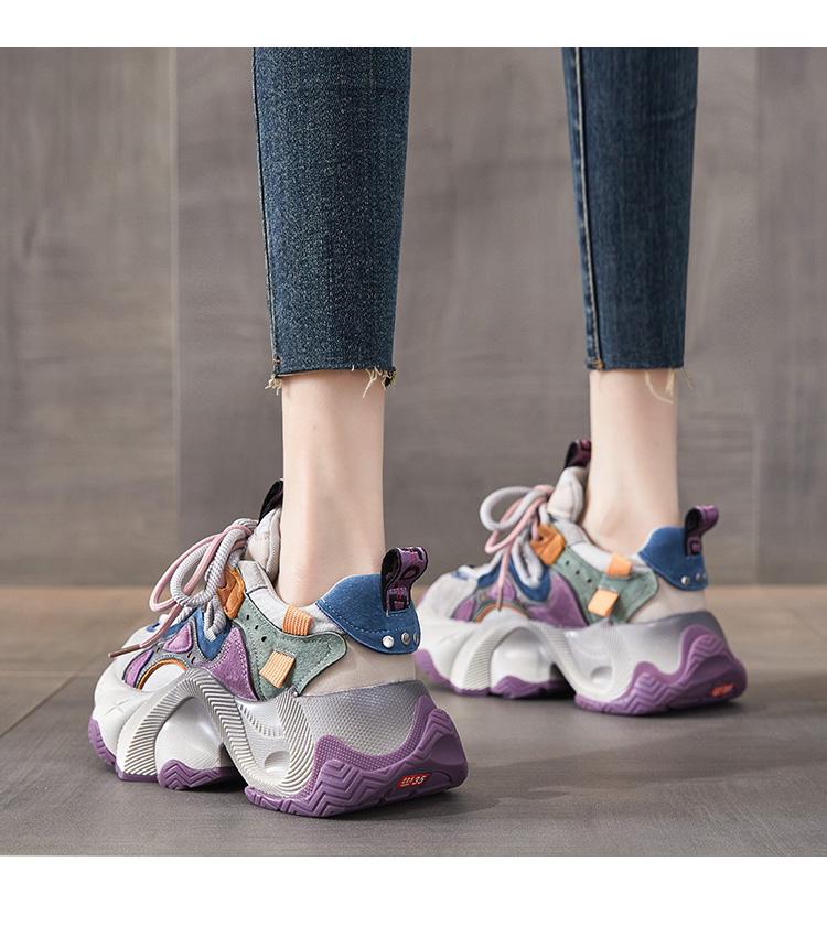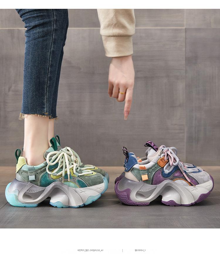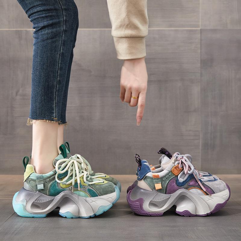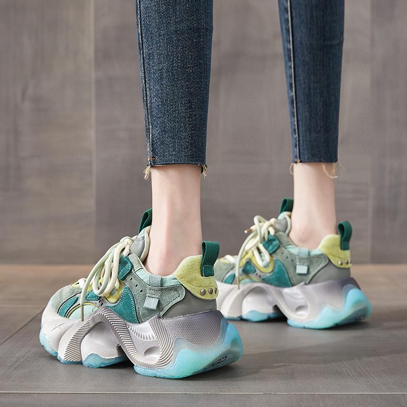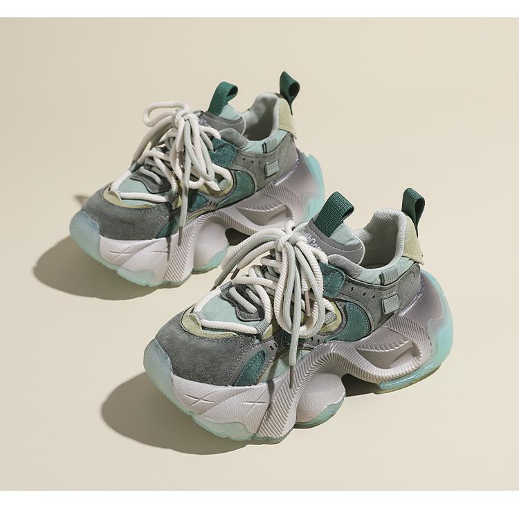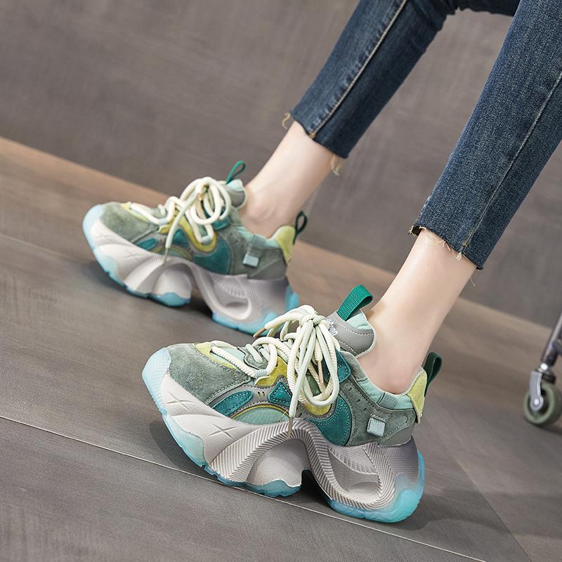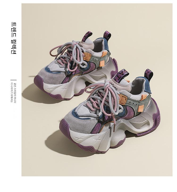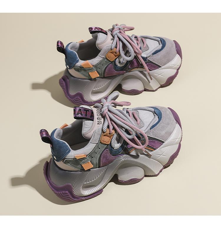 정품 가죽 레트로 두꺼운 밑창 아빠 신발 여성용 2024년 가을 신상품 홍콩 스타일 작은 키 증가 캐주얼 스포츠 올매치 트렌드