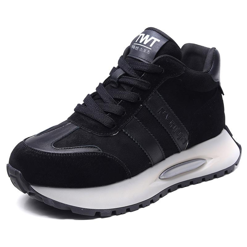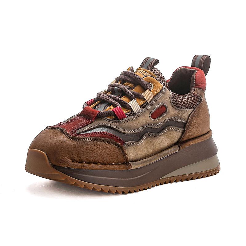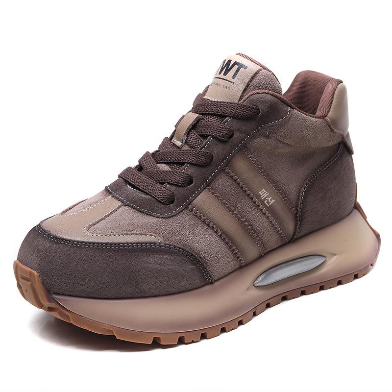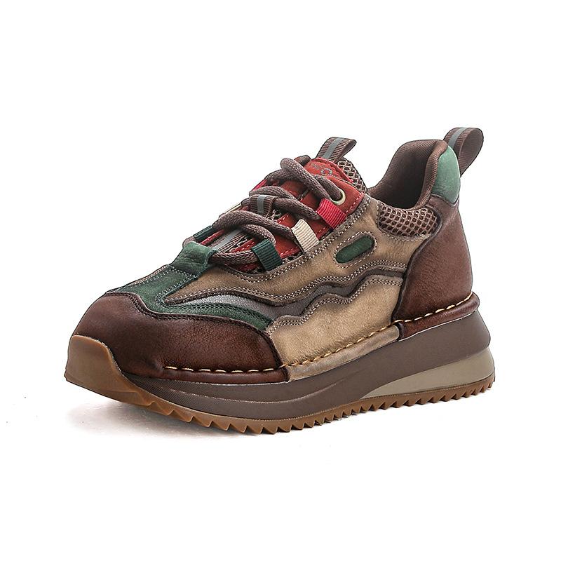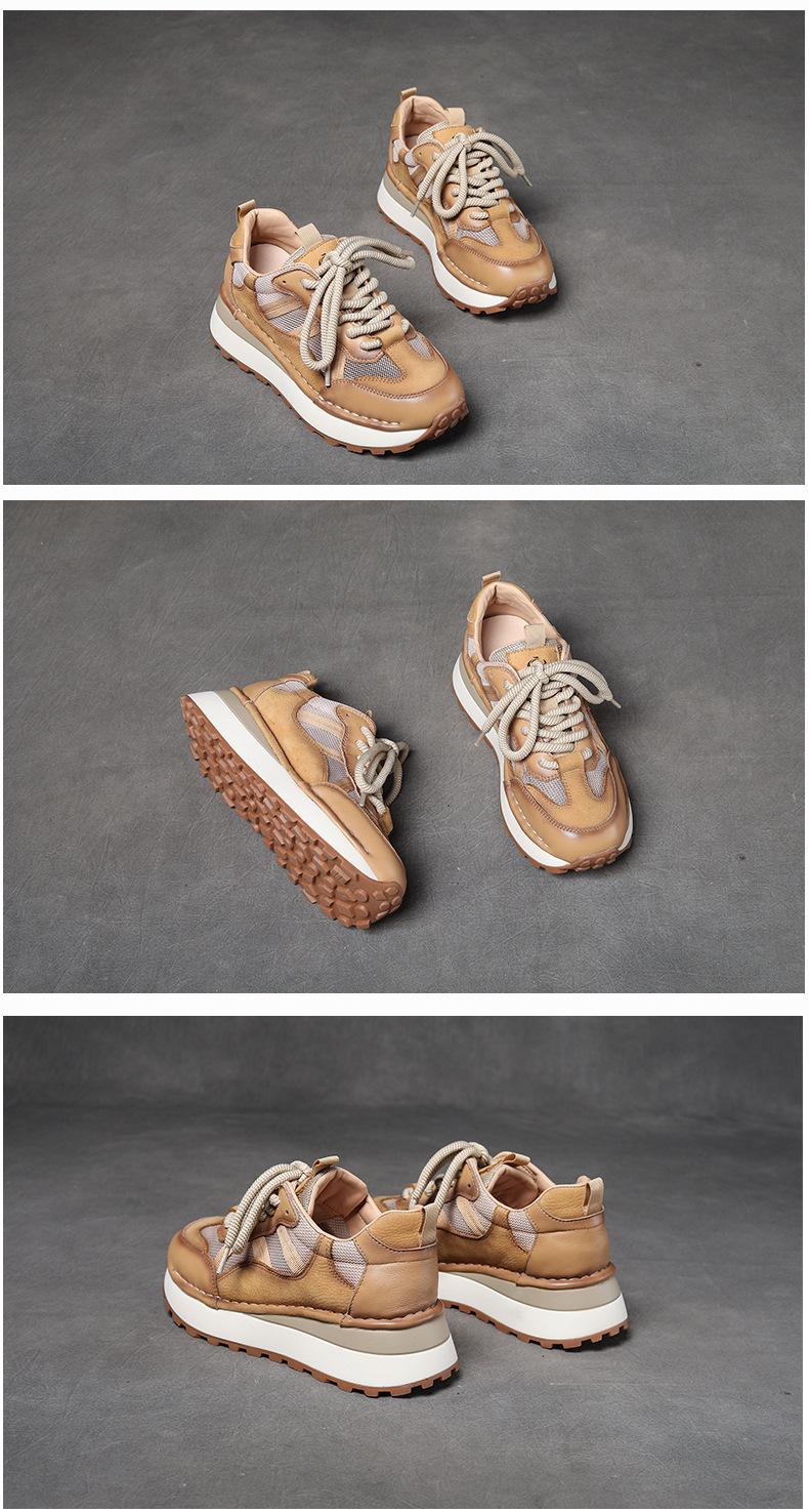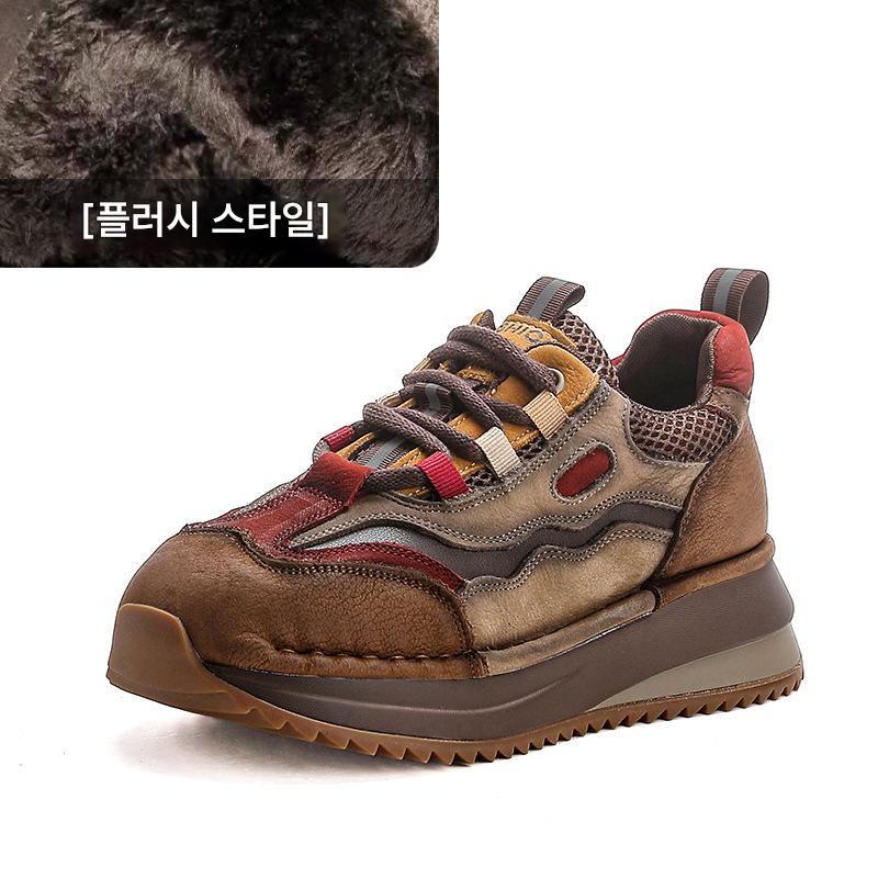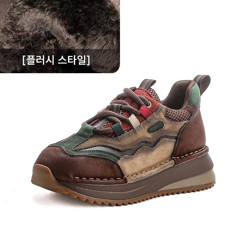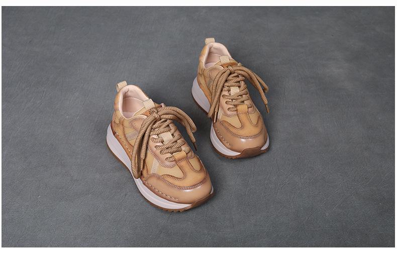 정품 가죽 여성화 1층 소가죽 2024년 신상 캐주얼 봄 가을 레이스업 미끄럼 방지 두꺼운 바닥 통기성 메시 웨지힐 싱글화
