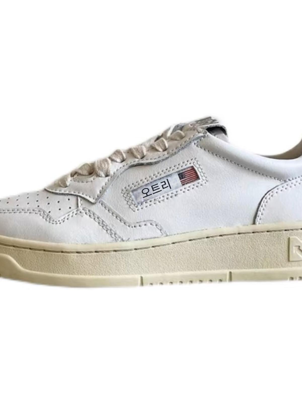 정품 오트리 가죽 화이트 슈즈 레트로 두꺼운 밑창 키높이 슈즈 EPT 로우탑 남성 및 여성용 스포츠화 새상품