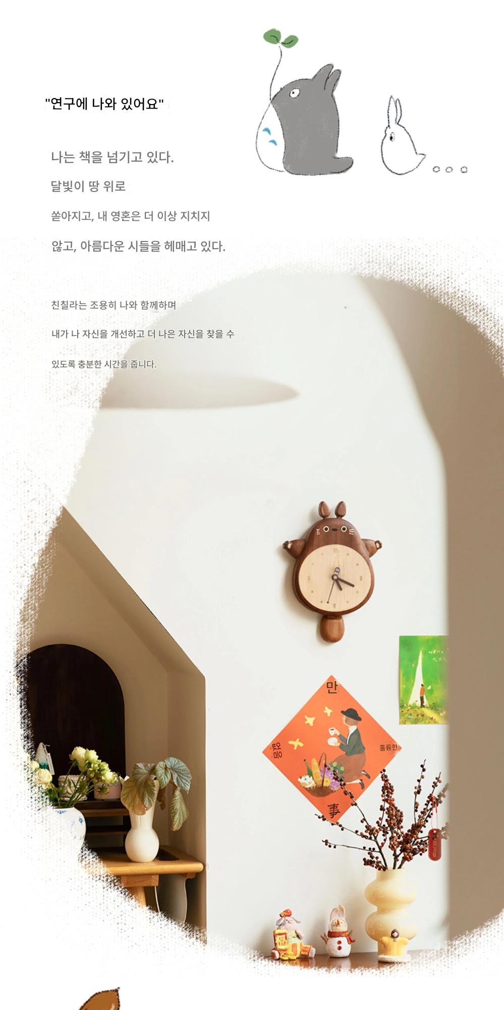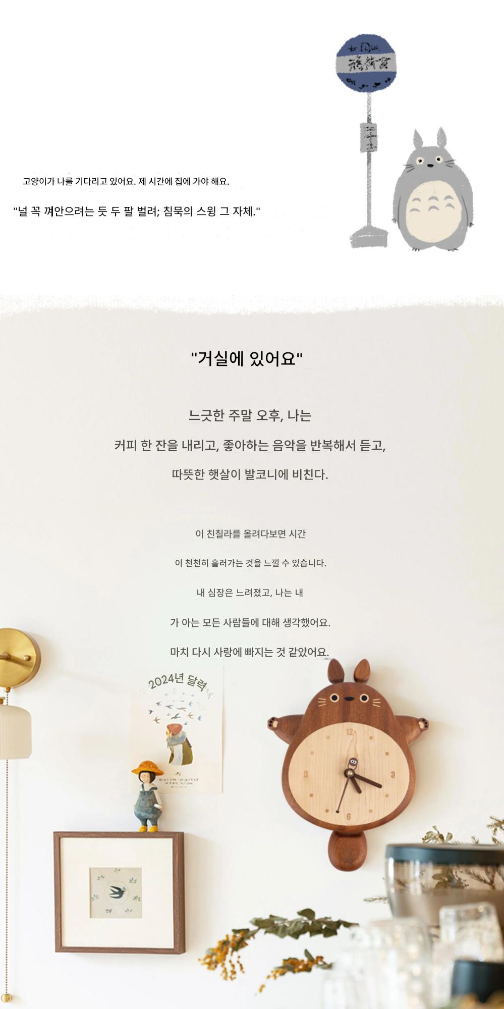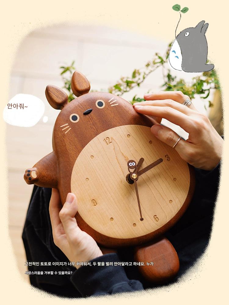 정품 이웃집 토토로 벽시계/단단한 나무 진자 시계 귀여운 거실 벽 장식 벽시계 인 스타일 창의적인 어린이 방 시계