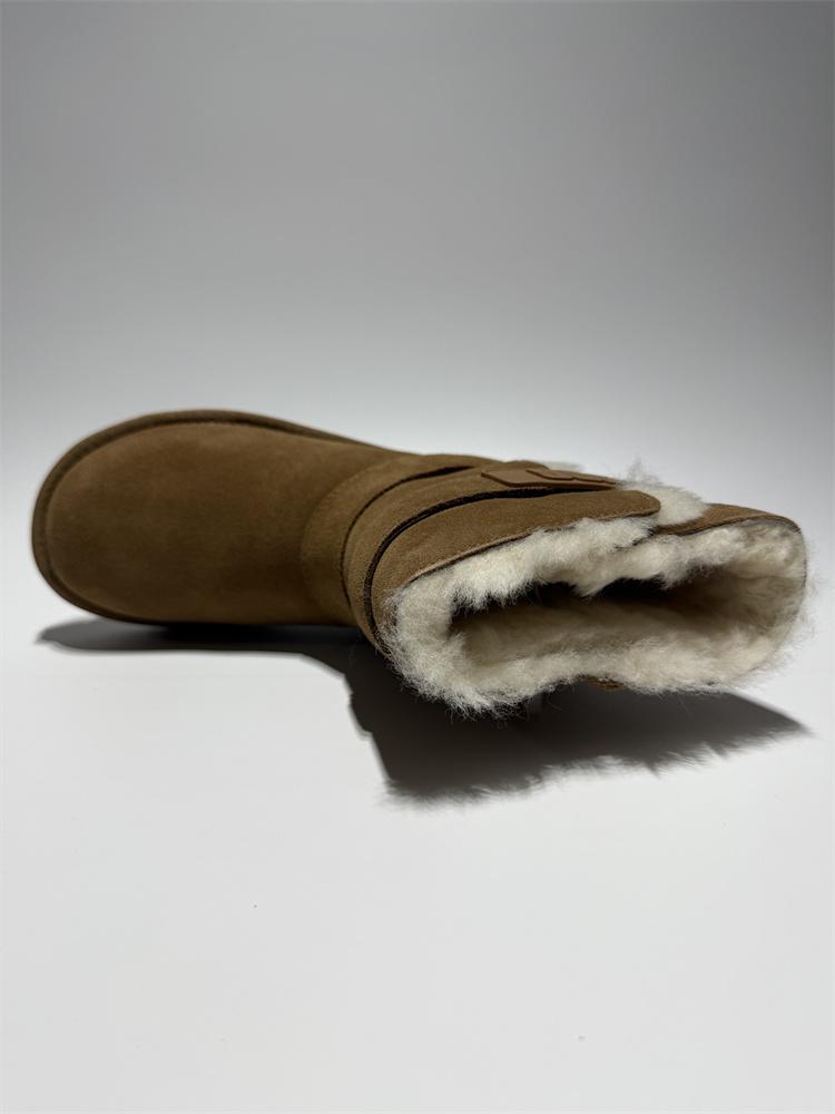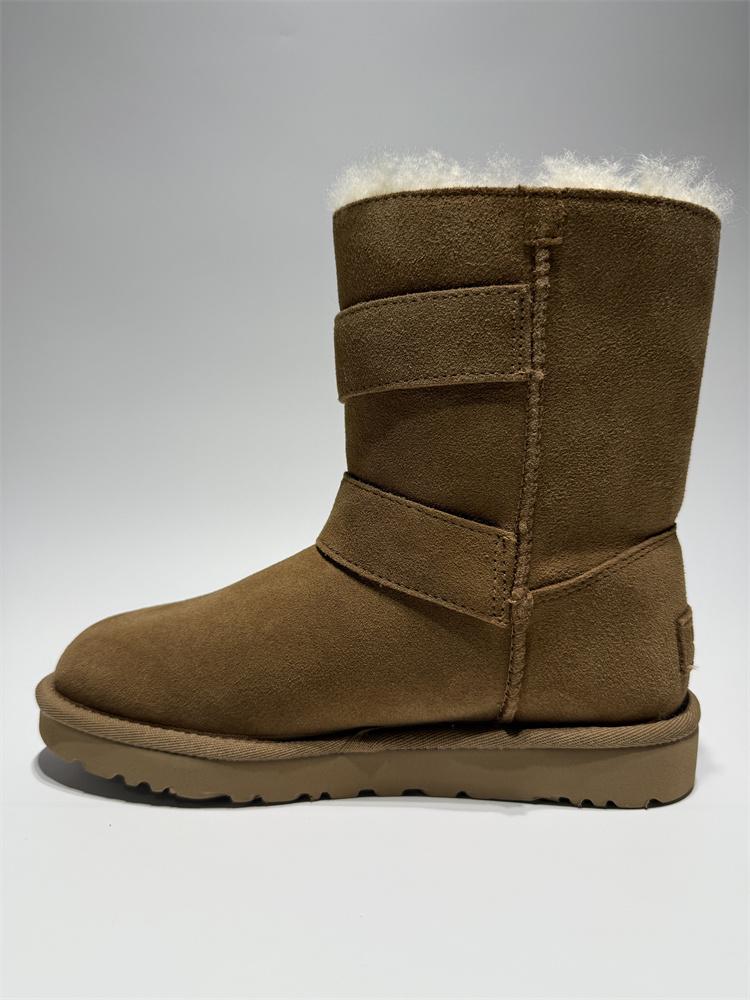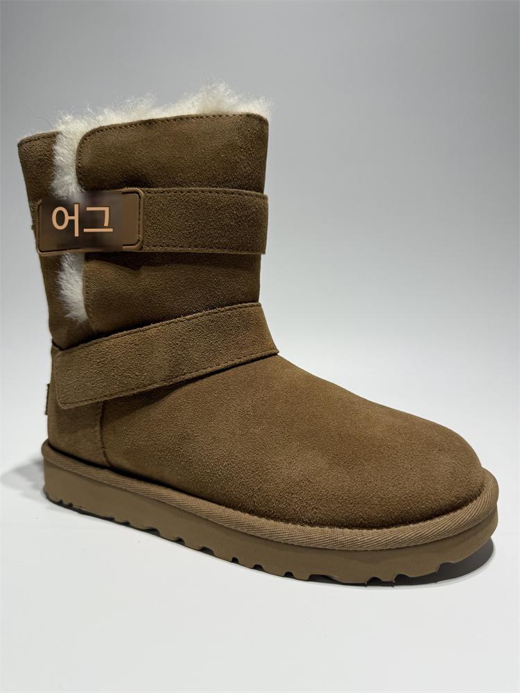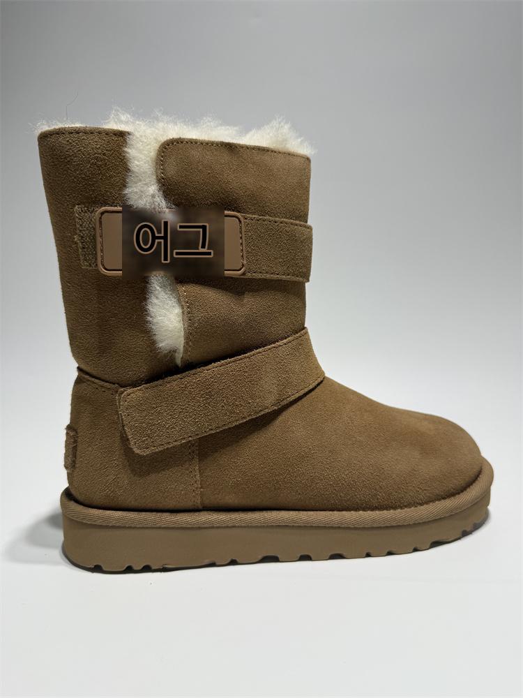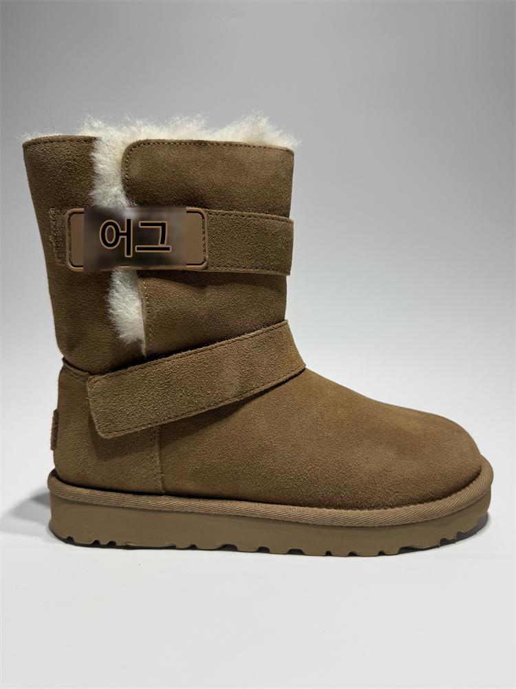 정품 UGG 여성용 밤색 대형 로고 드로스트링 미드 튜브 웜 스노우 부츠 1137074