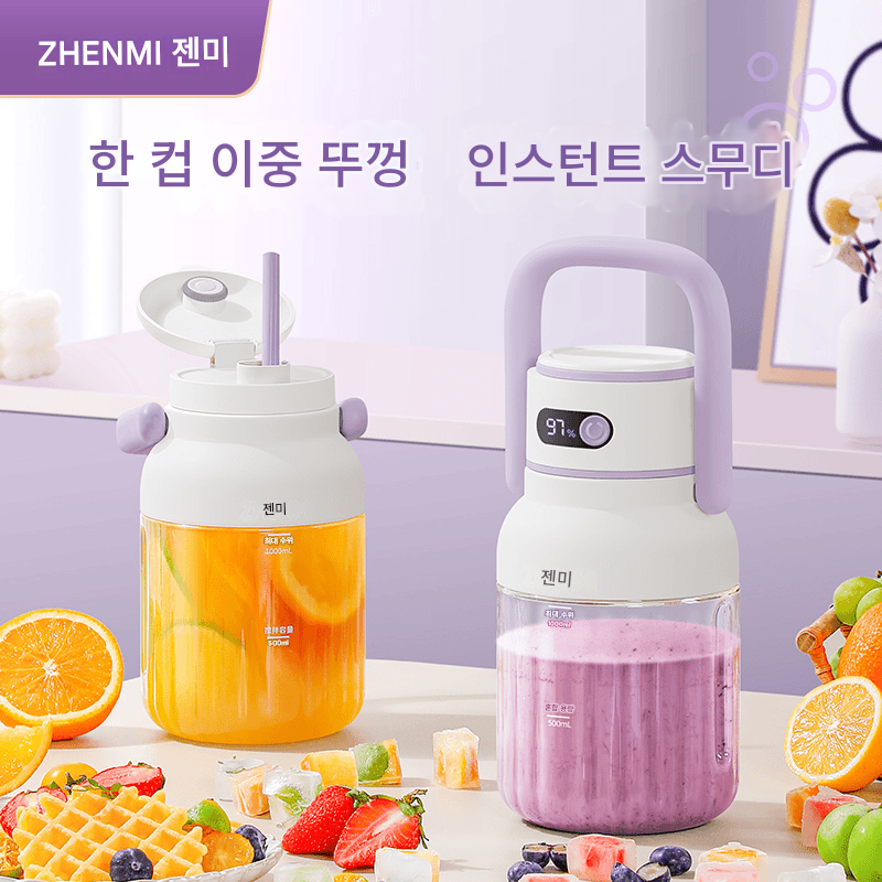 젠미 주스기 다기능 디지털 디스플레이 12개 블레이드 얼음 분쇄 가능 편리한 이중 커버 주스통 톤 버킷 대용량