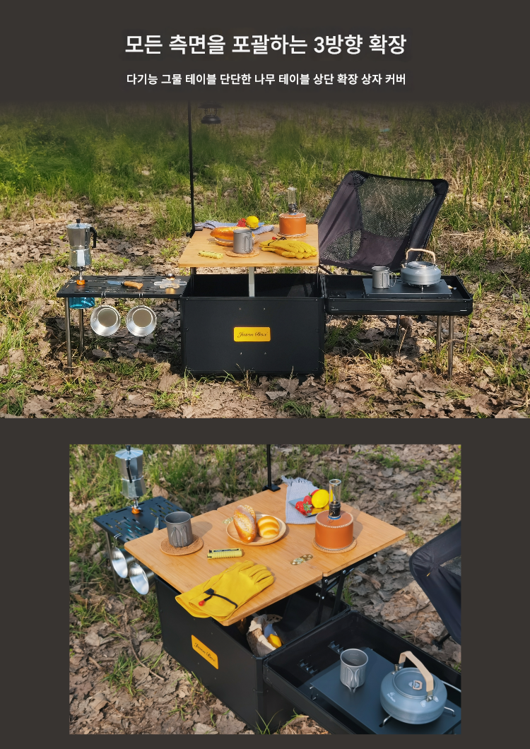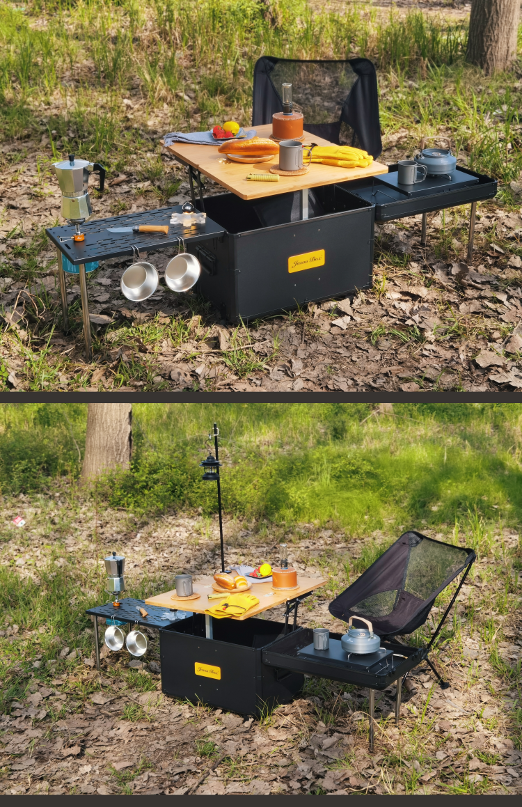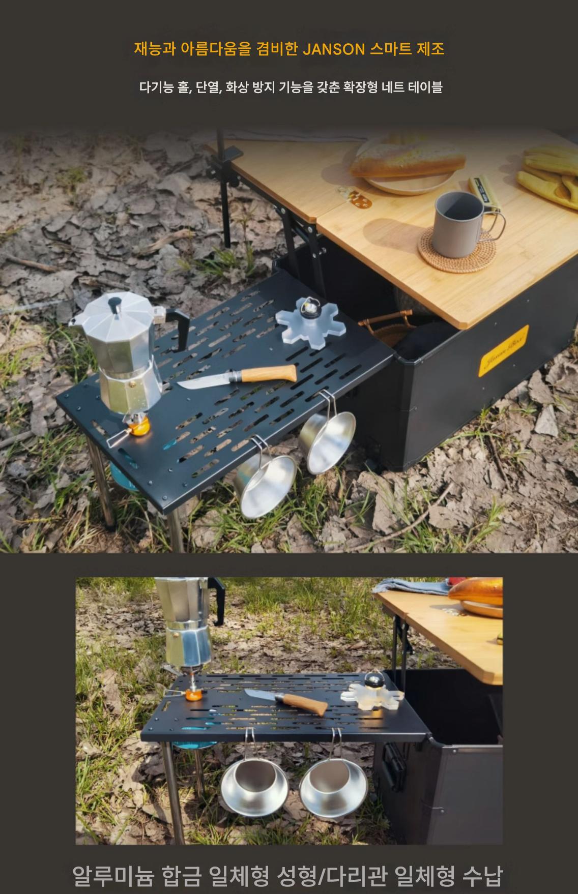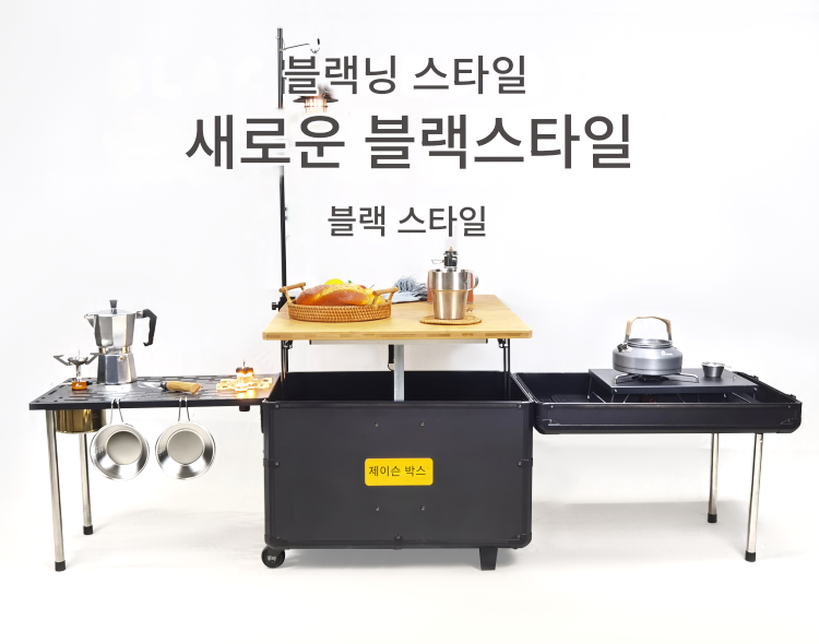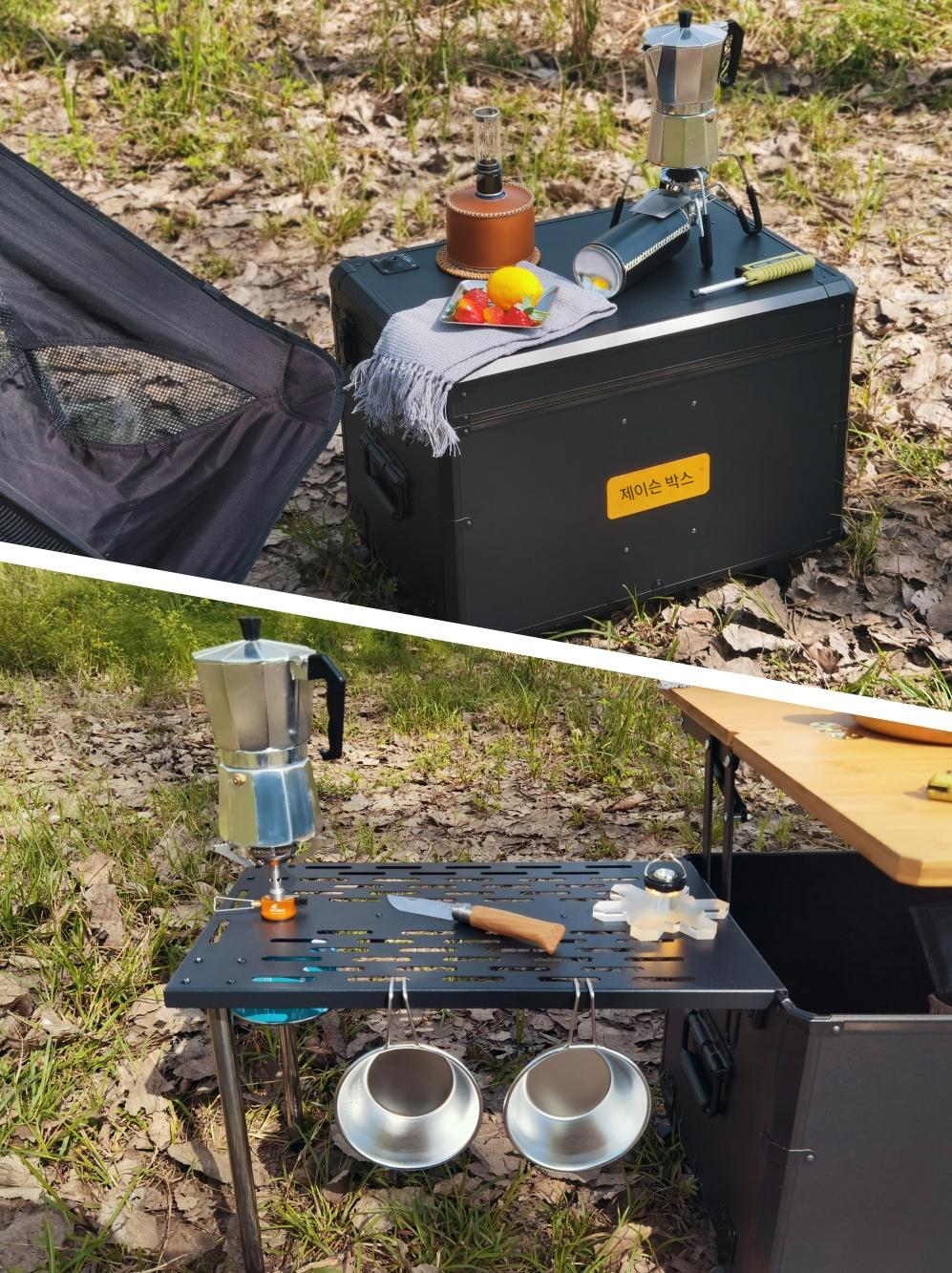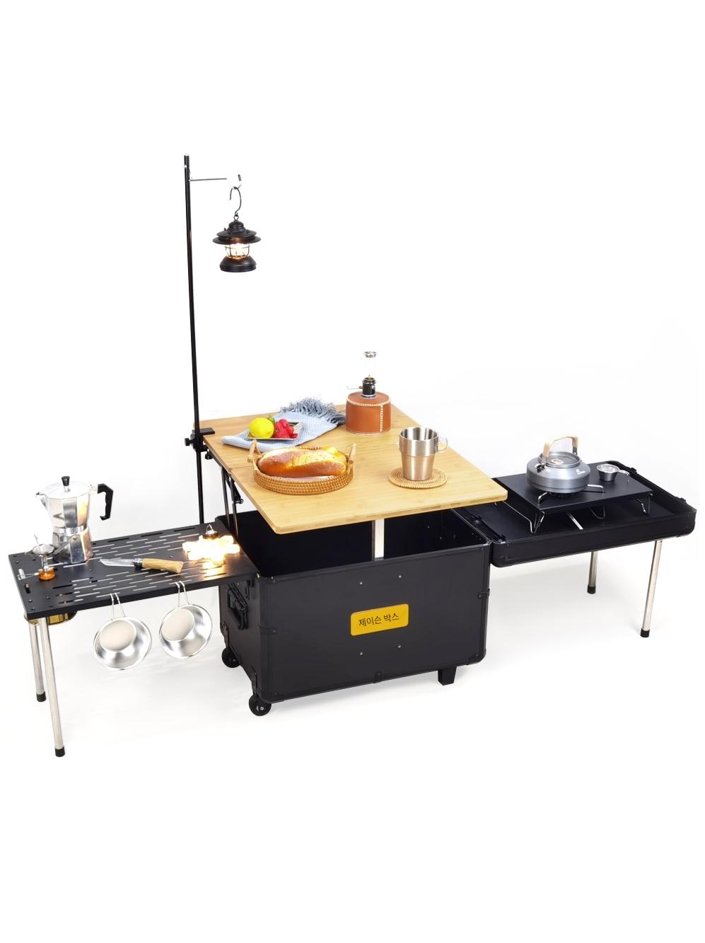 젠슨 야외 모바일 주방 자동차 캠핑 상자 피크닉 보관 보관 접이식 티 테이블 커피 확장 블랙 릿지