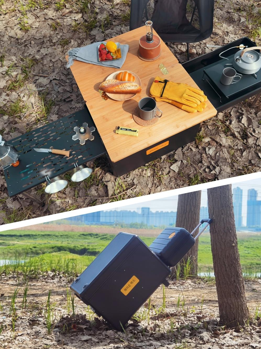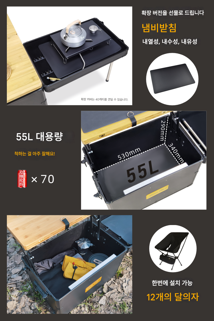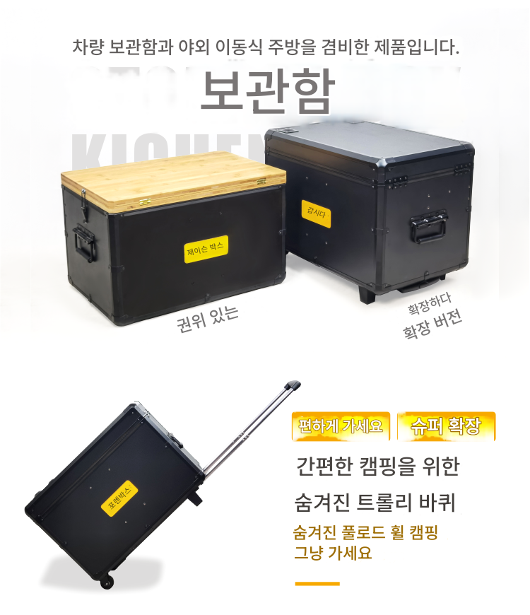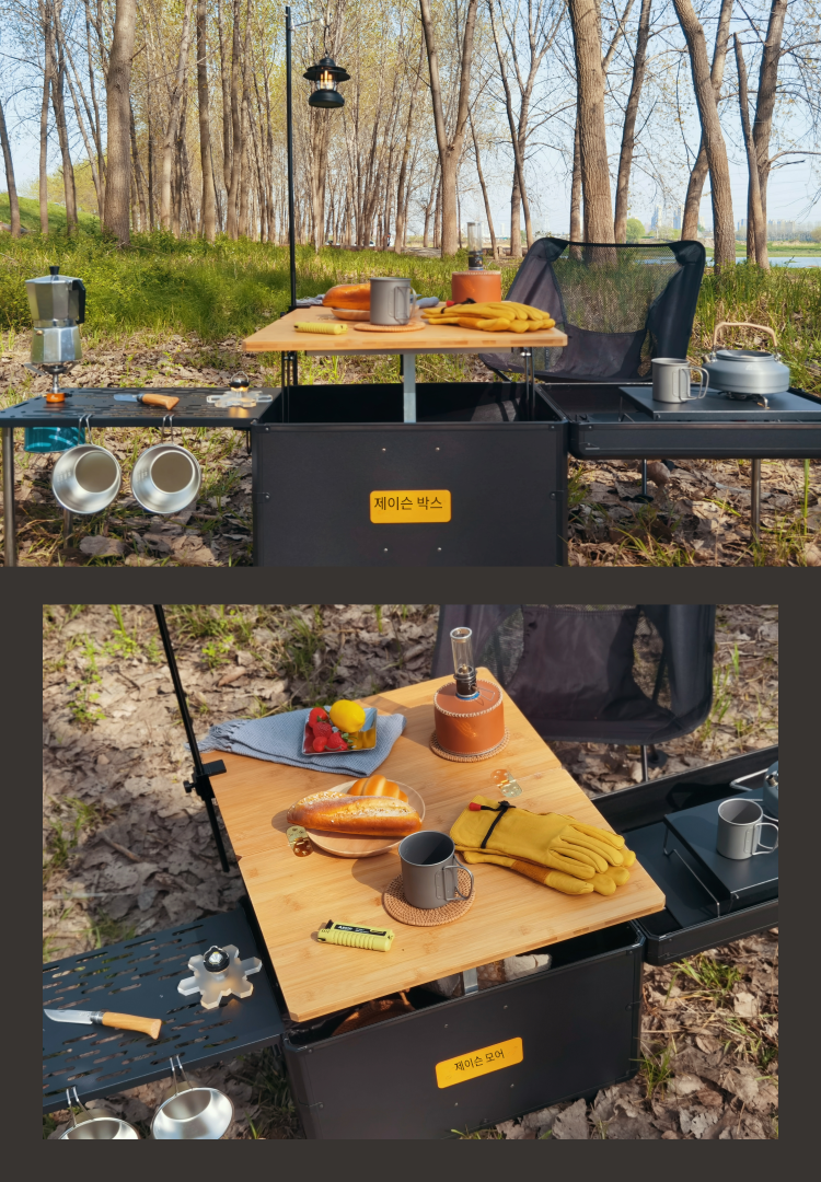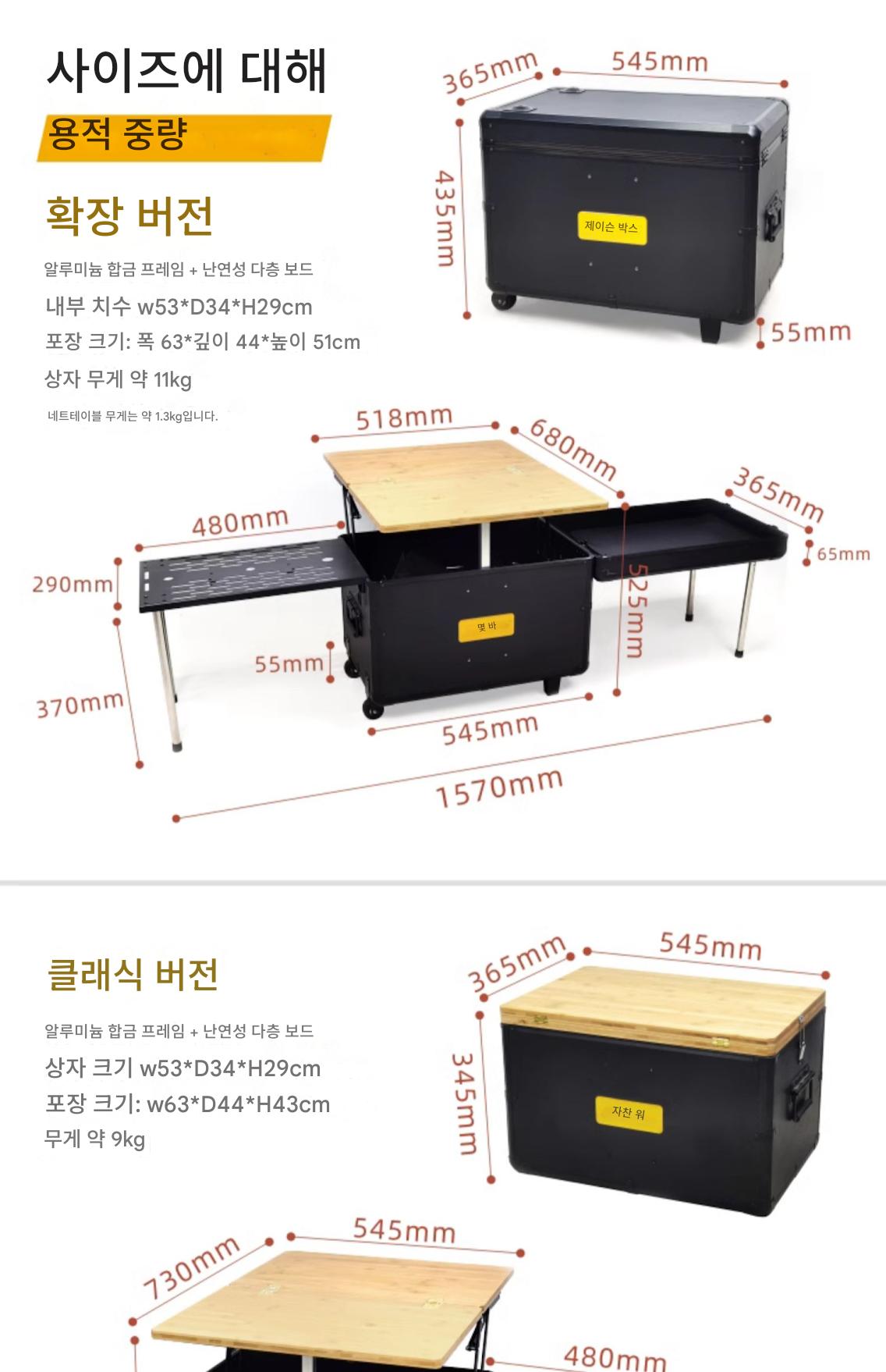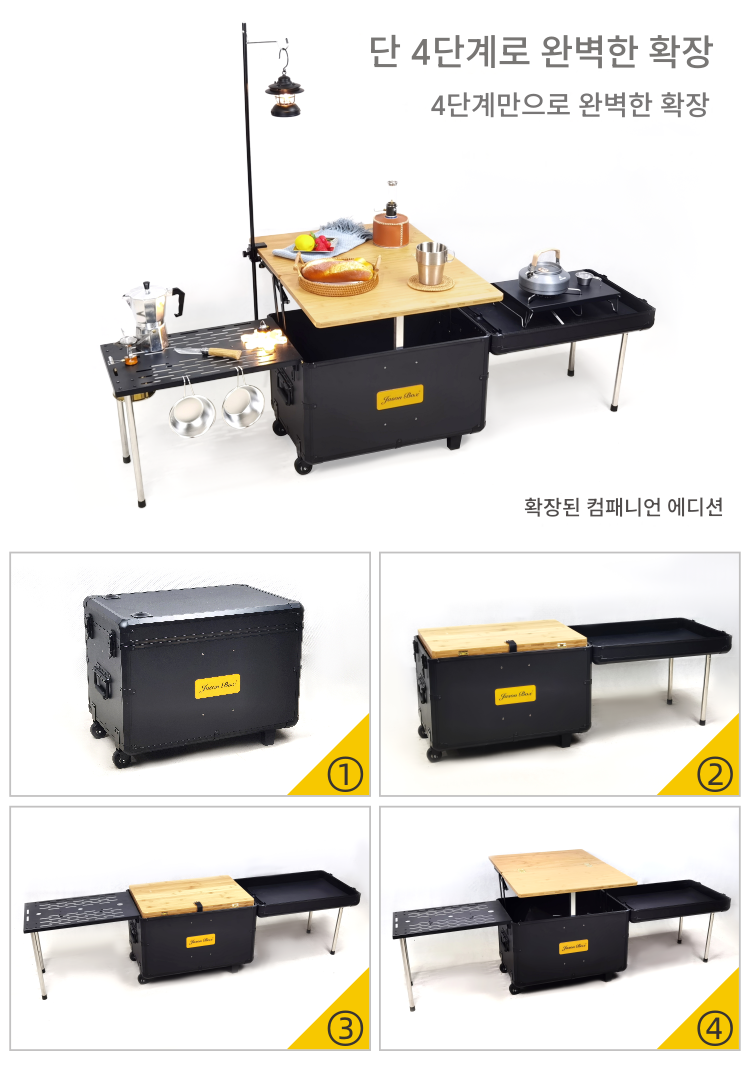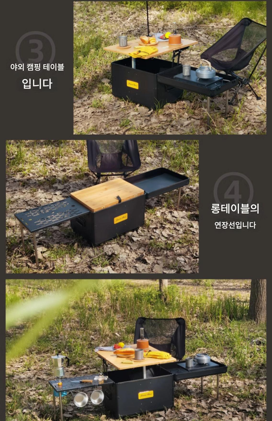 젠슨 야외 모바일 주방 자동차 캠핑 상자 피크닉 보관 보관 접이식 티 테이블 커피 확장 블랙 릿지