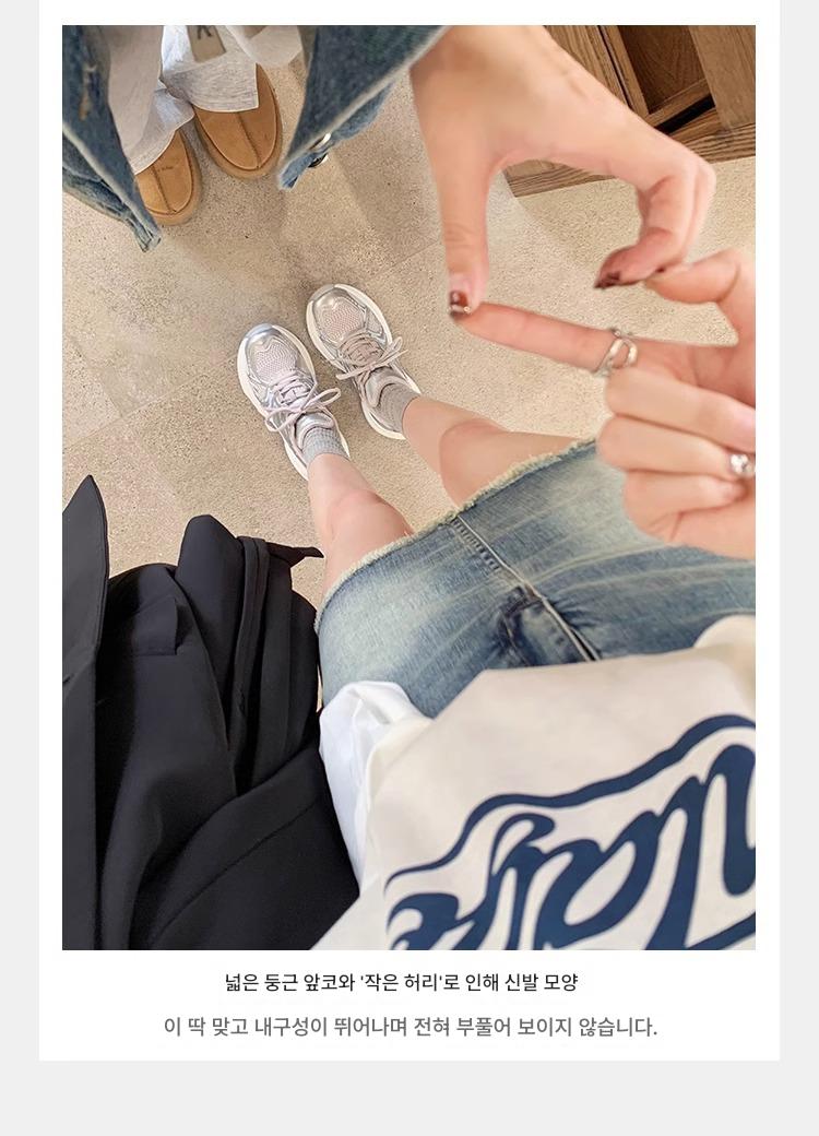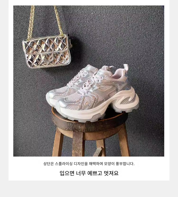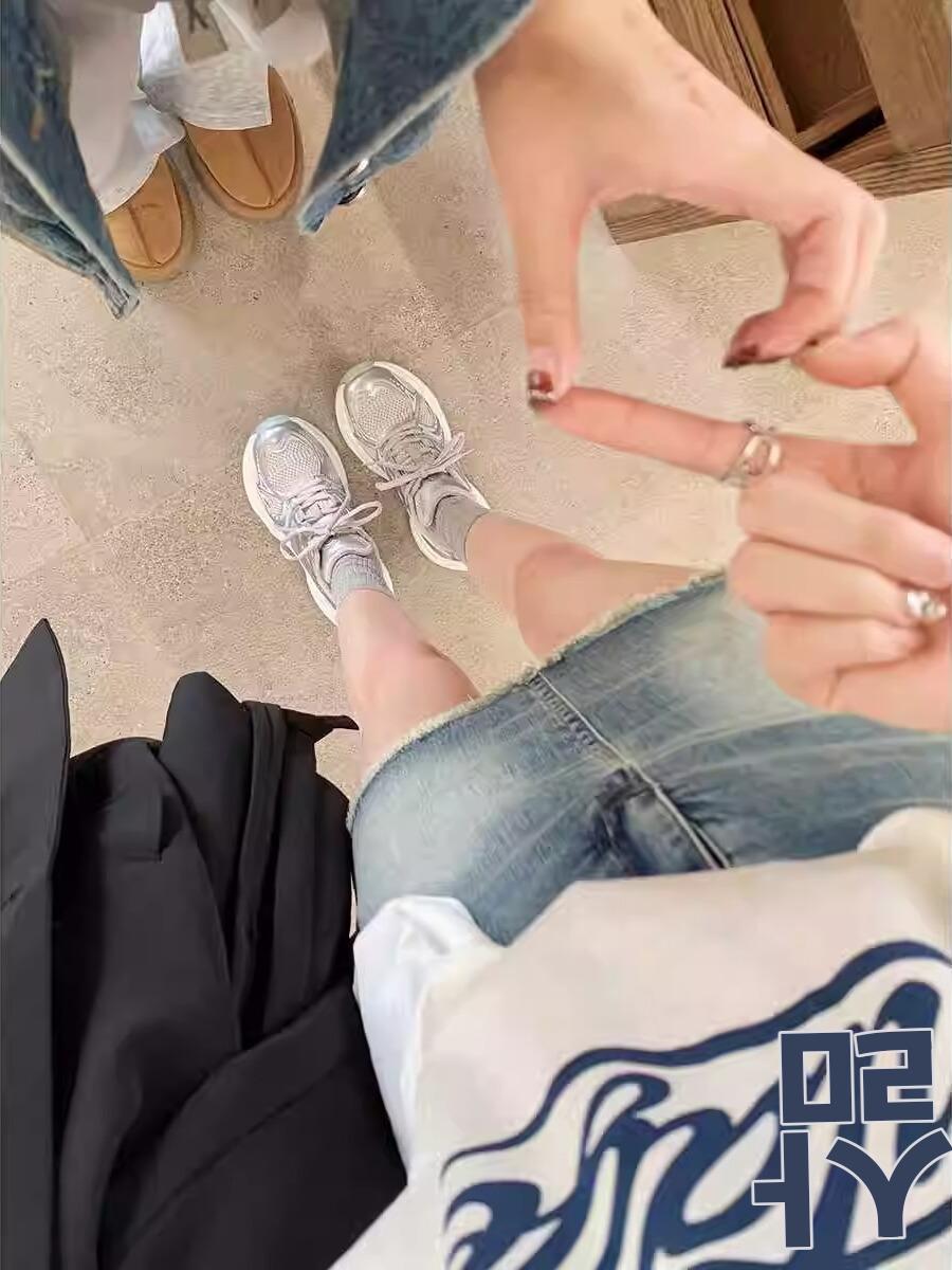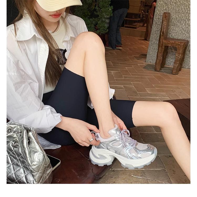 조루시 같은 스타일 아빠화 여성용 봄 두꺼운 밑창 키높이 2025년 신상 실버메쉬 통기성 캐주얼 스포츠화