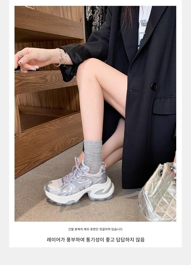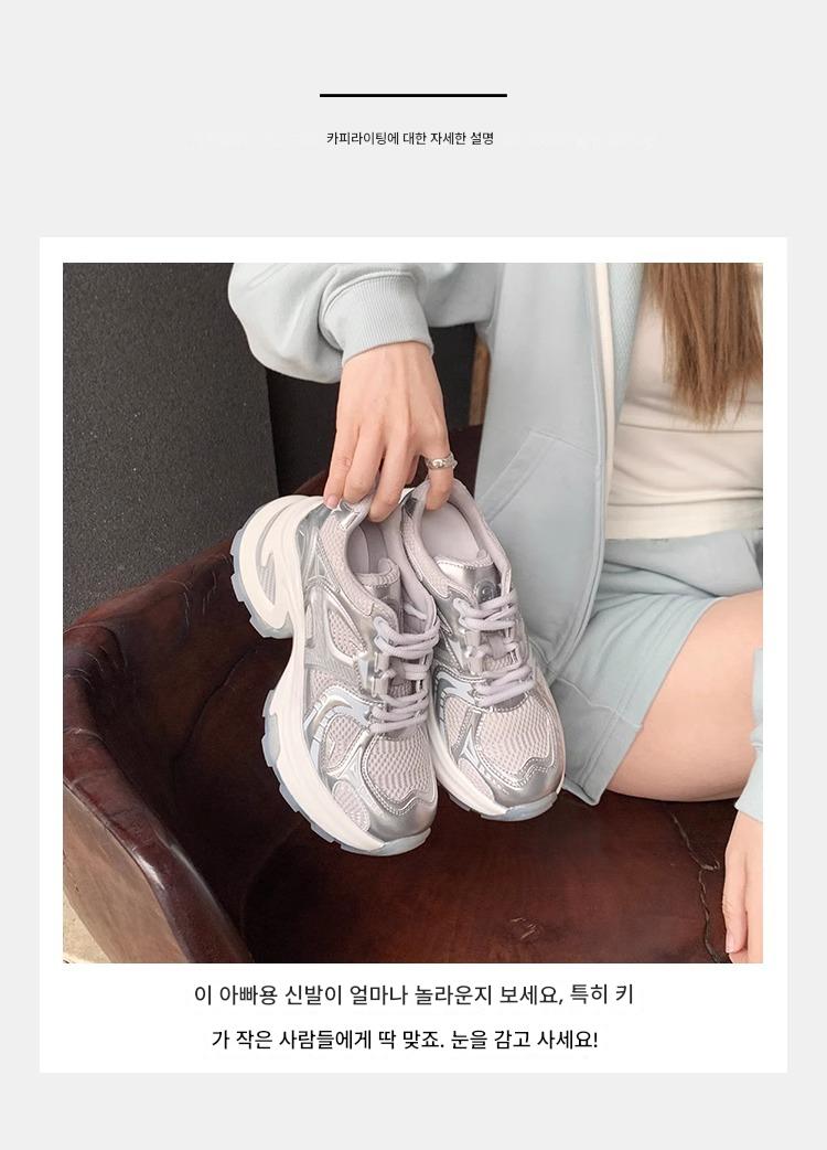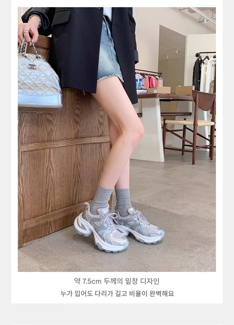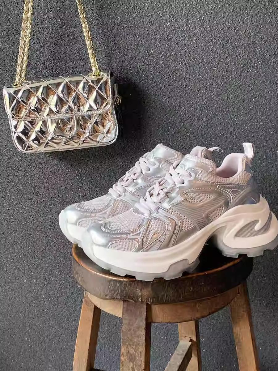 조루시 같은 스타일 아빠화 여성용 봄 두꺼운 밑창 키높이 2025년 신상 실버메쉬 통기성 캐주얼 스포츠화