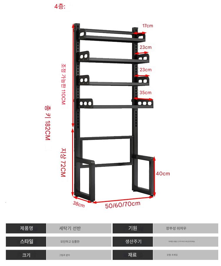 조절식 세탁기 냉동고 선반 소독 캐비닛 청소기 보관 선반 바닥 다층 홈 보관 선반 위