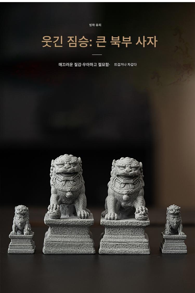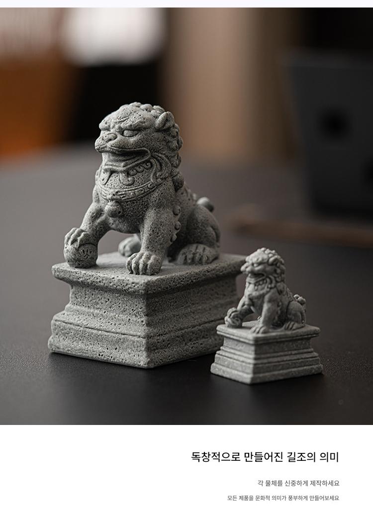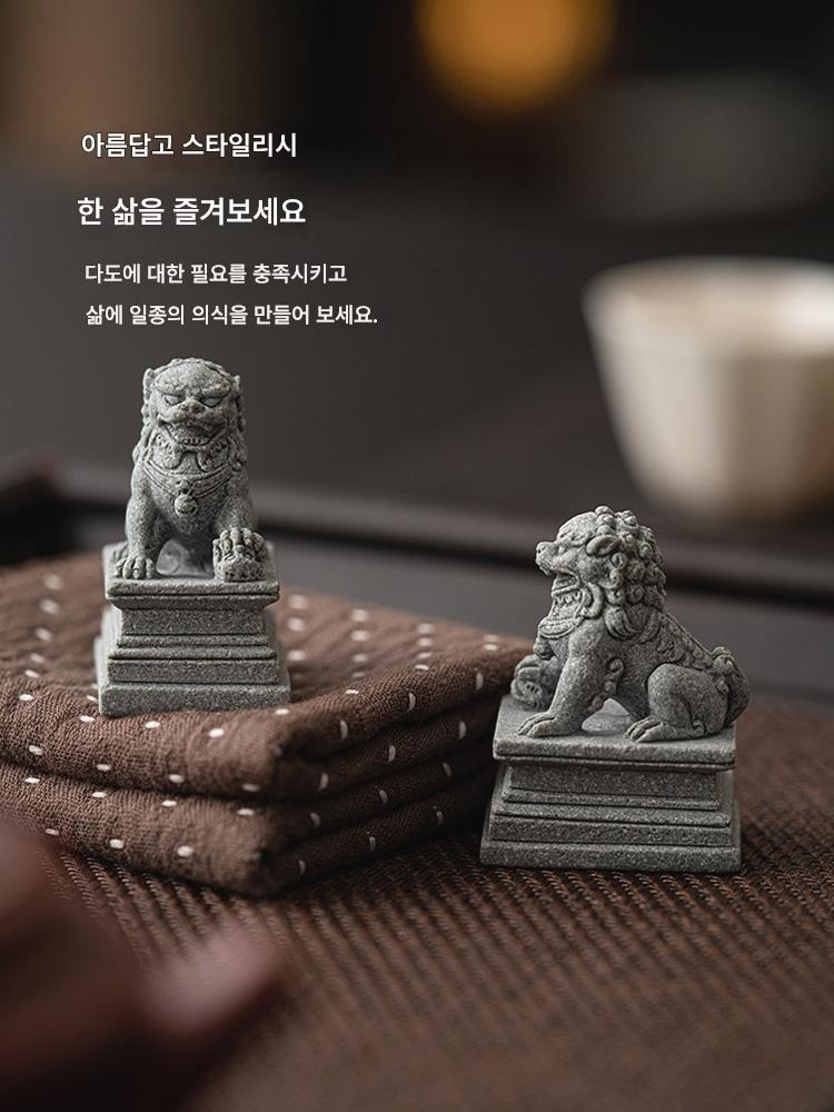 조조의 L. PD. 자취안. 녹색 사암 장식 창의적인 후루이 돌 사자 한 쌍의 차 애완동물 | 개지에