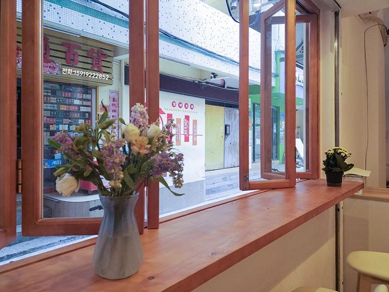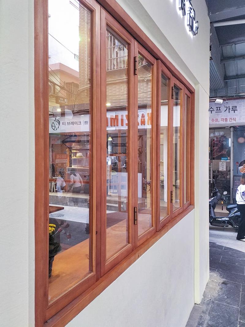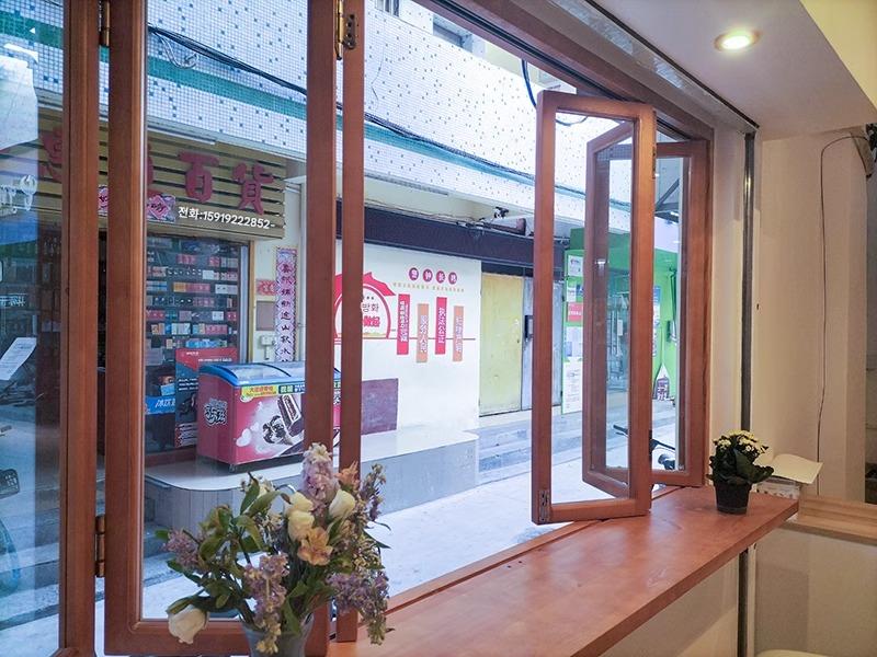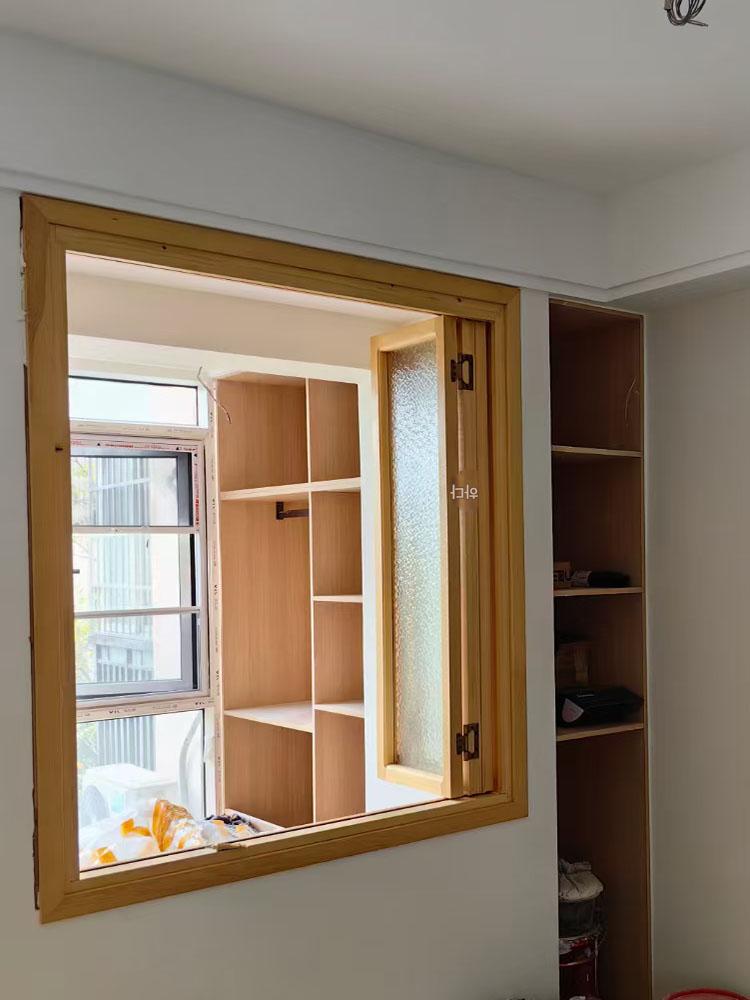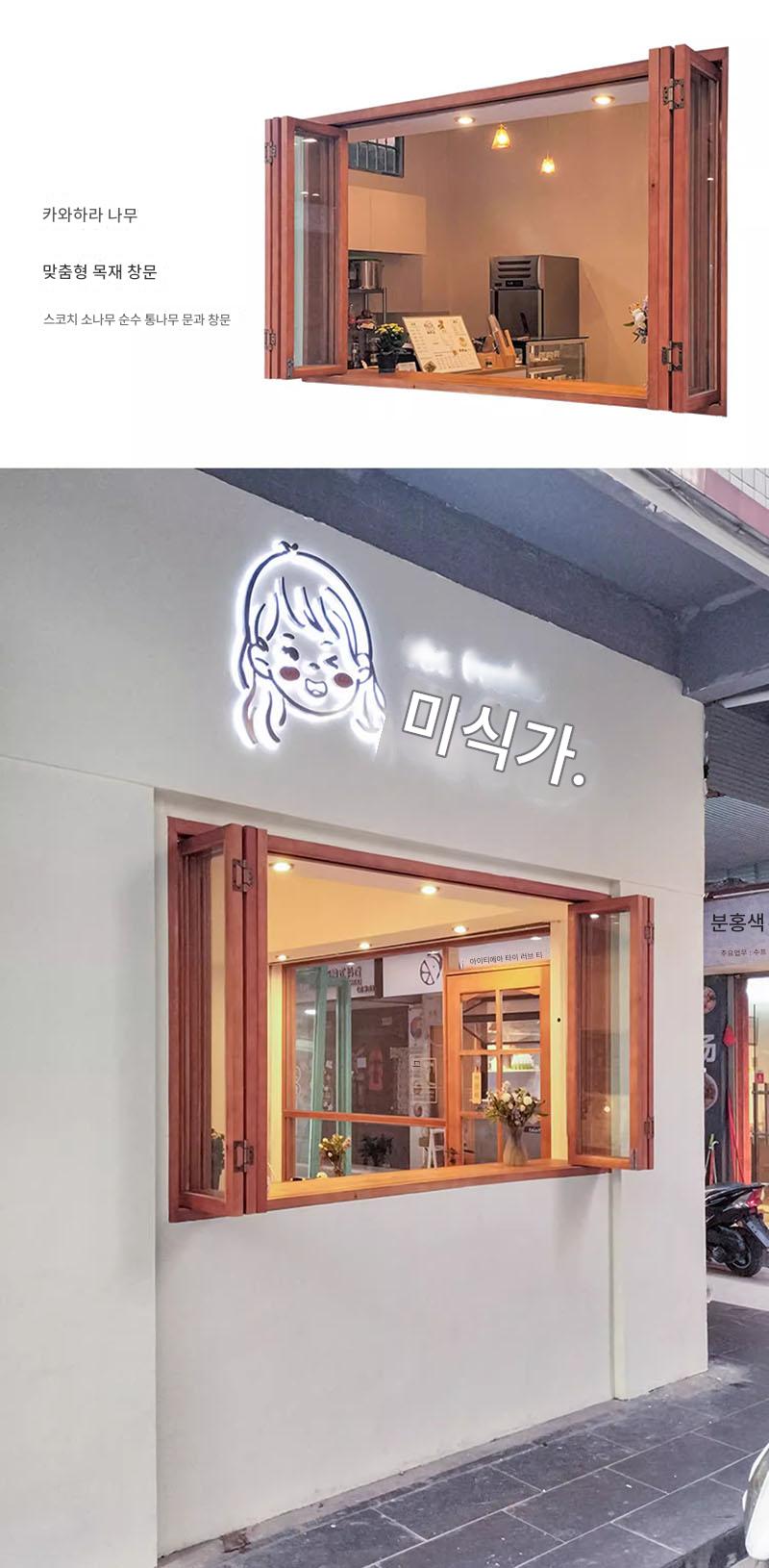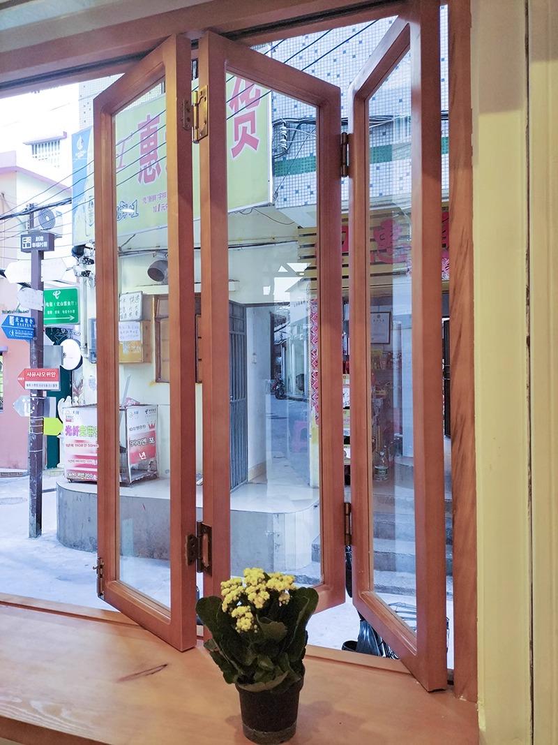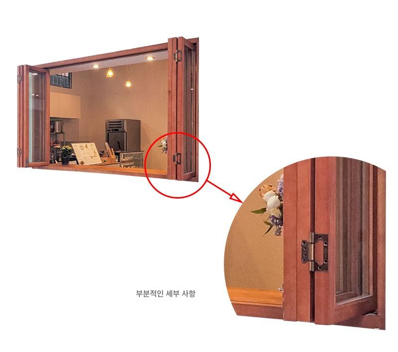 좌우 접이식 창문 견고한 목재 창문 통나무 주방 커피숍 케이크숍 인테리어 파티션 장식 슬라이딩 접이식 창문