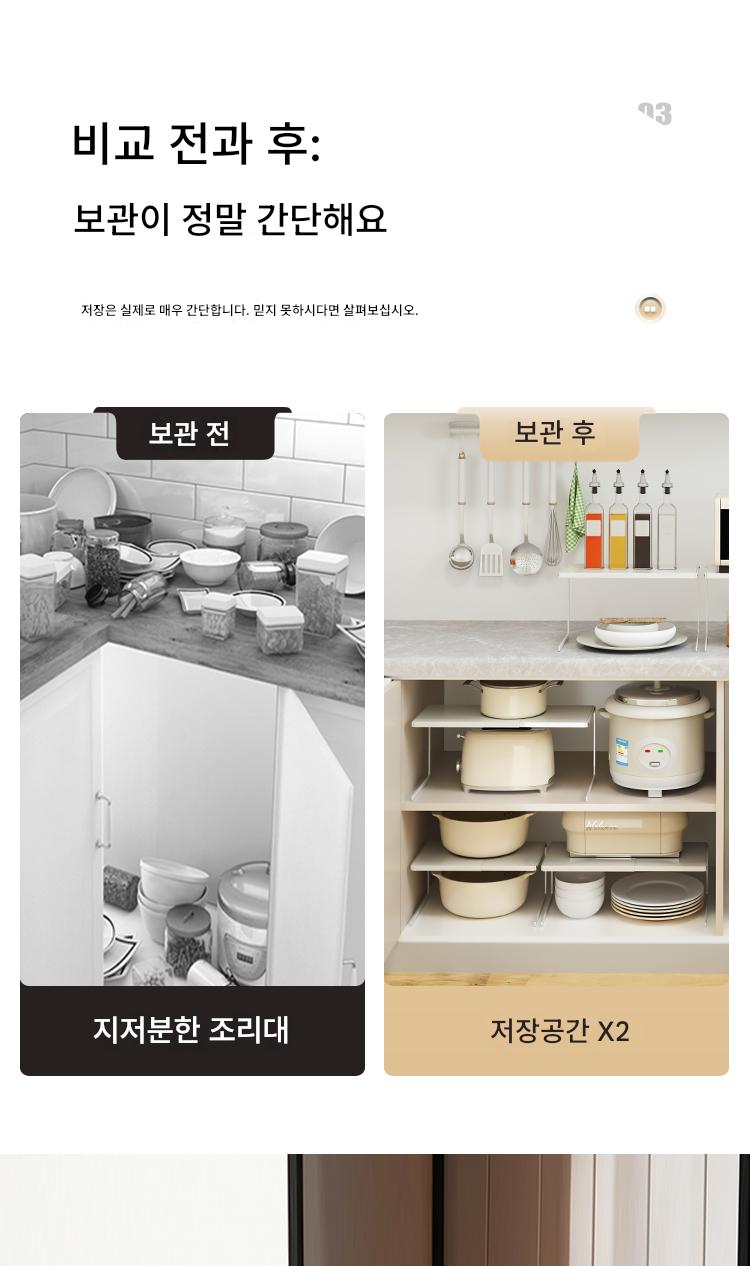 “주방 수납식 테이블 칸막이 탁상 조리대 선반 확장 보드 칸막이 보관 유물 공간 활용”의 첫 상품평을 남겨 주세요