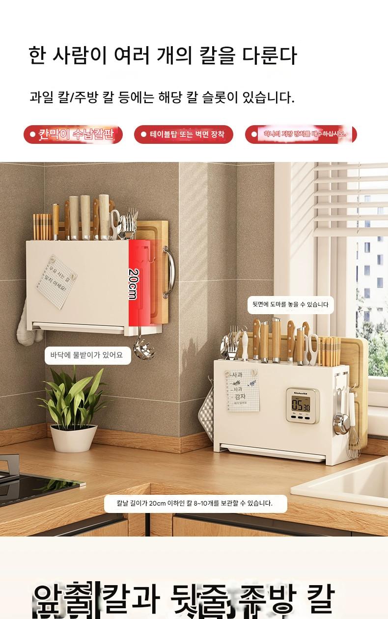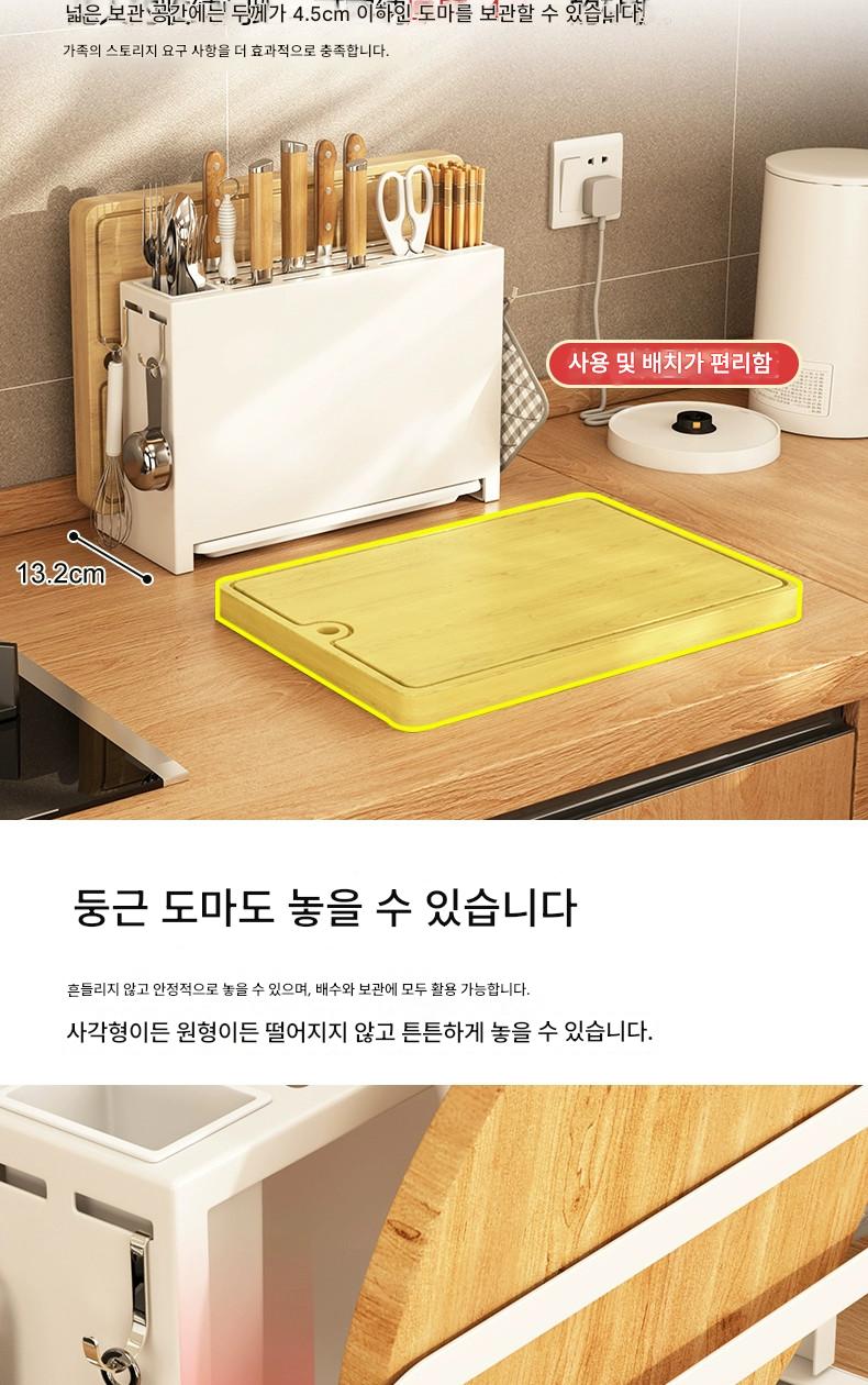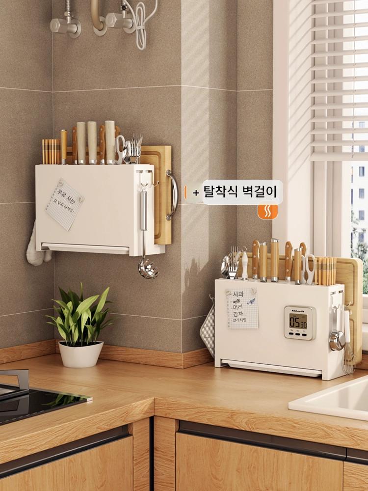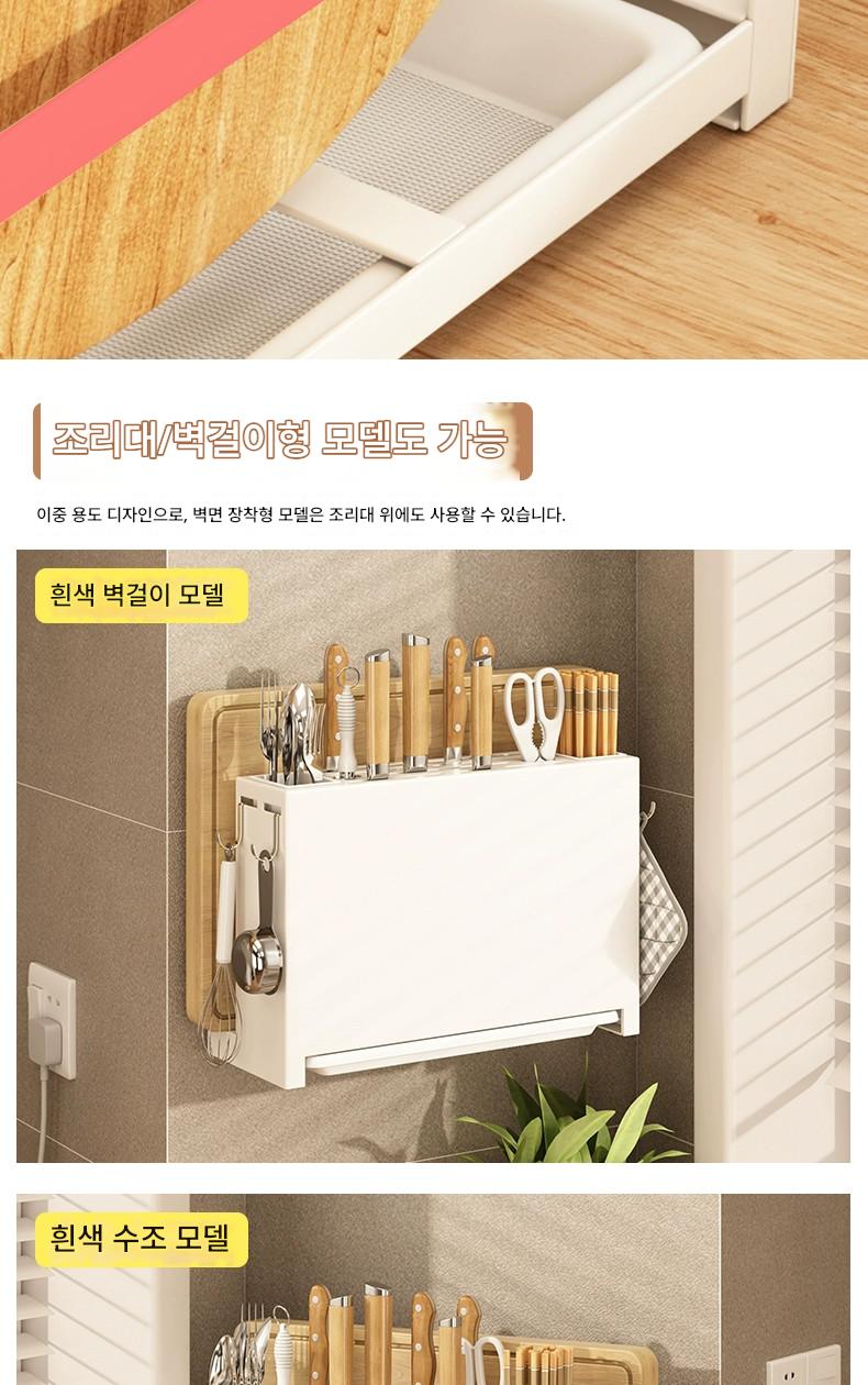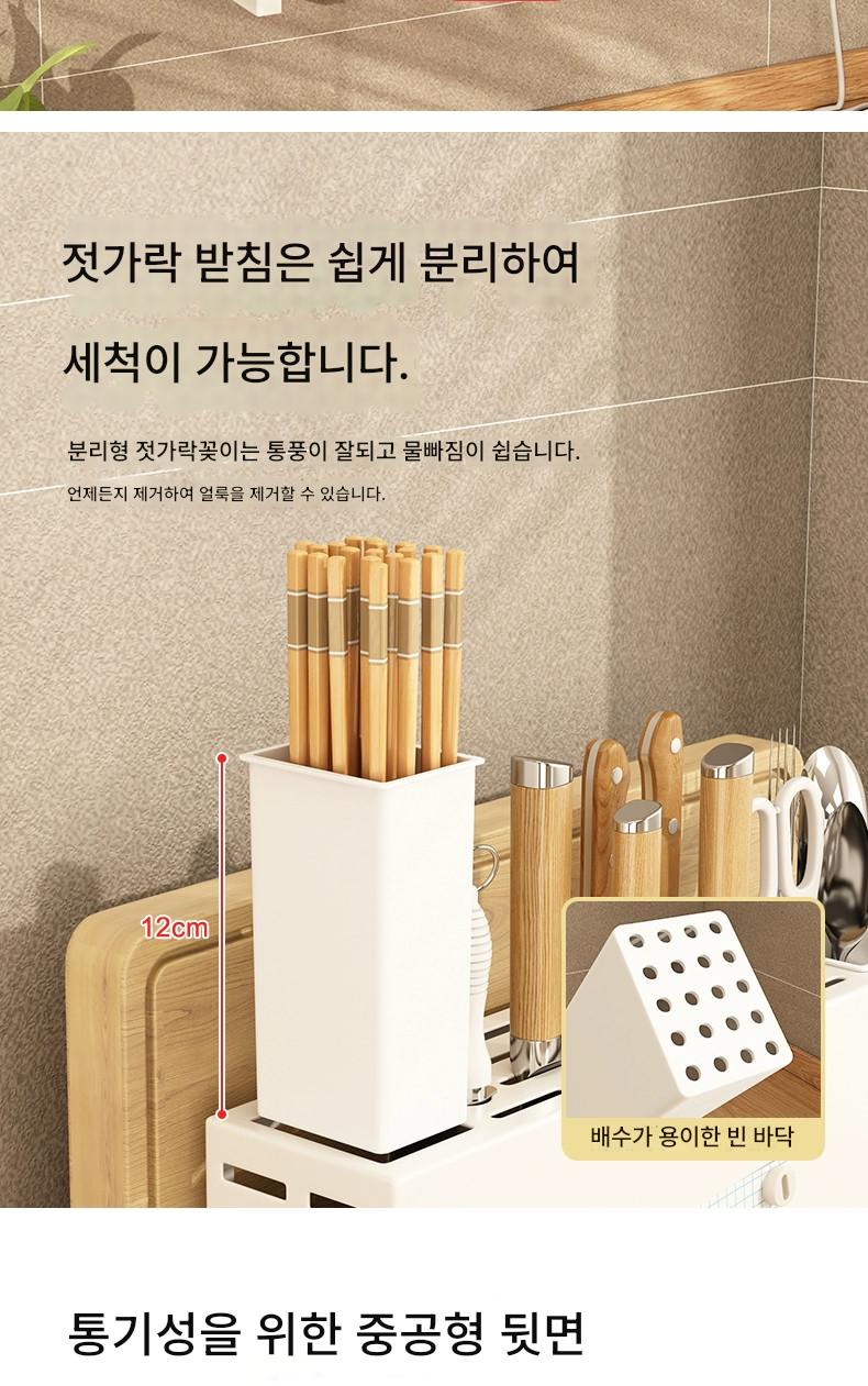 주방 칼꽂이 다기능 조리대 도마 도마 젓가락 젓가락 꽂이 통합 수납 배수구 칼꽂이 벽면 장착