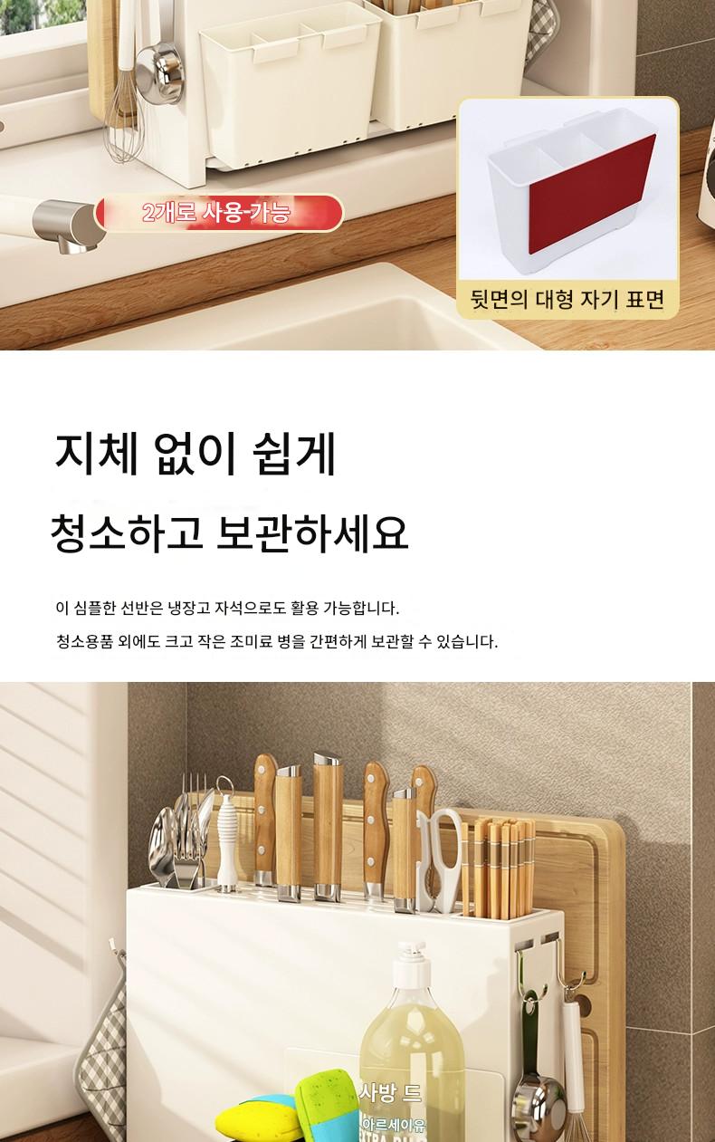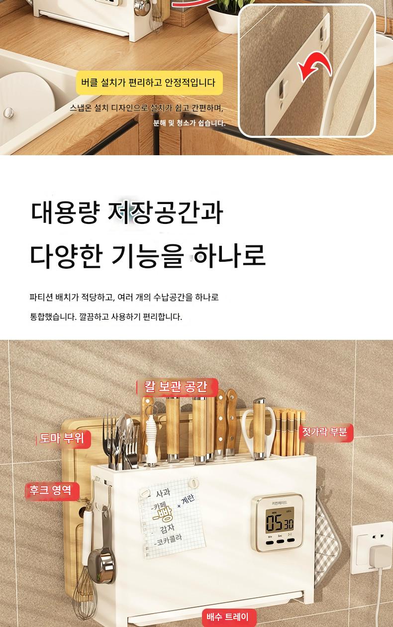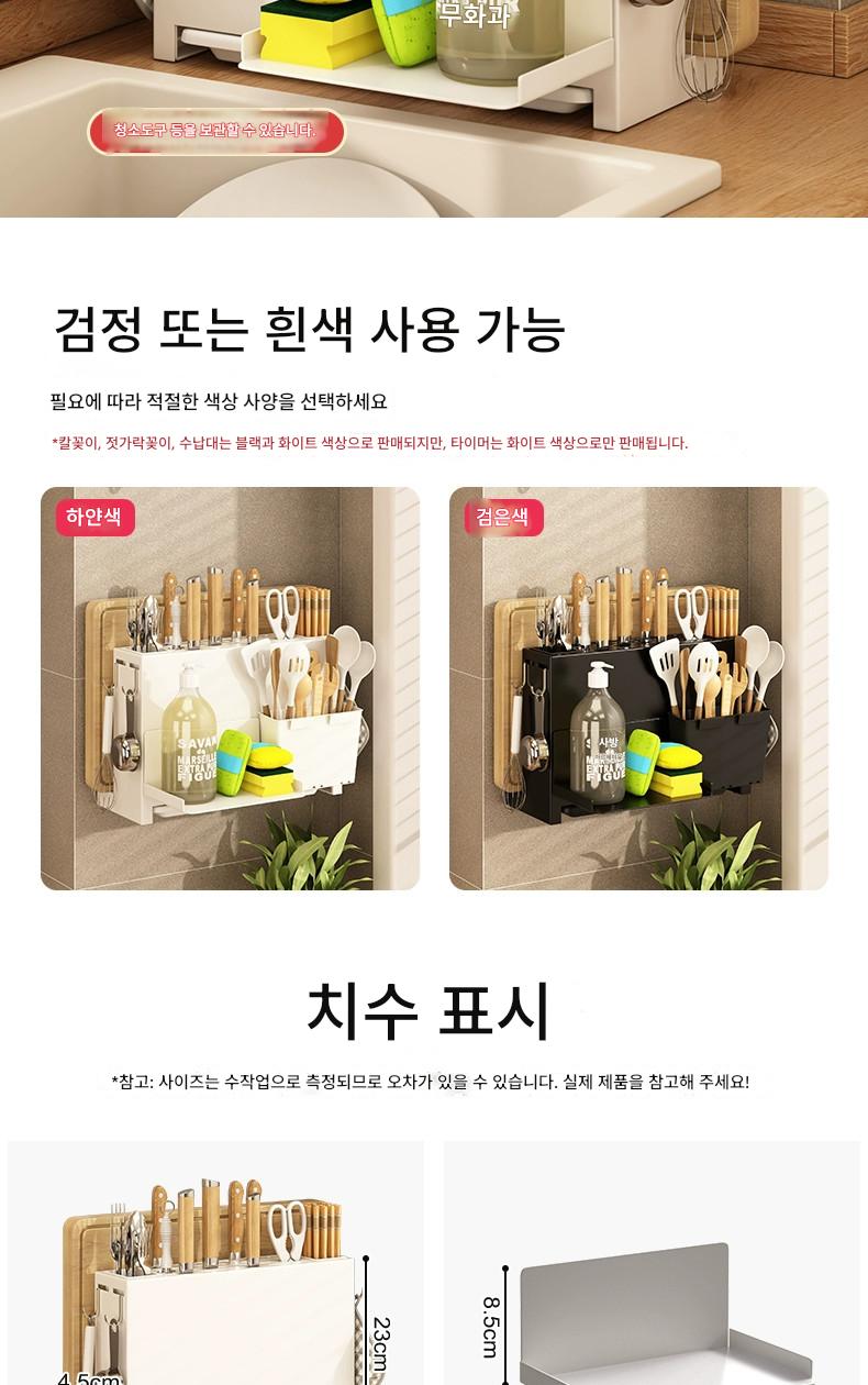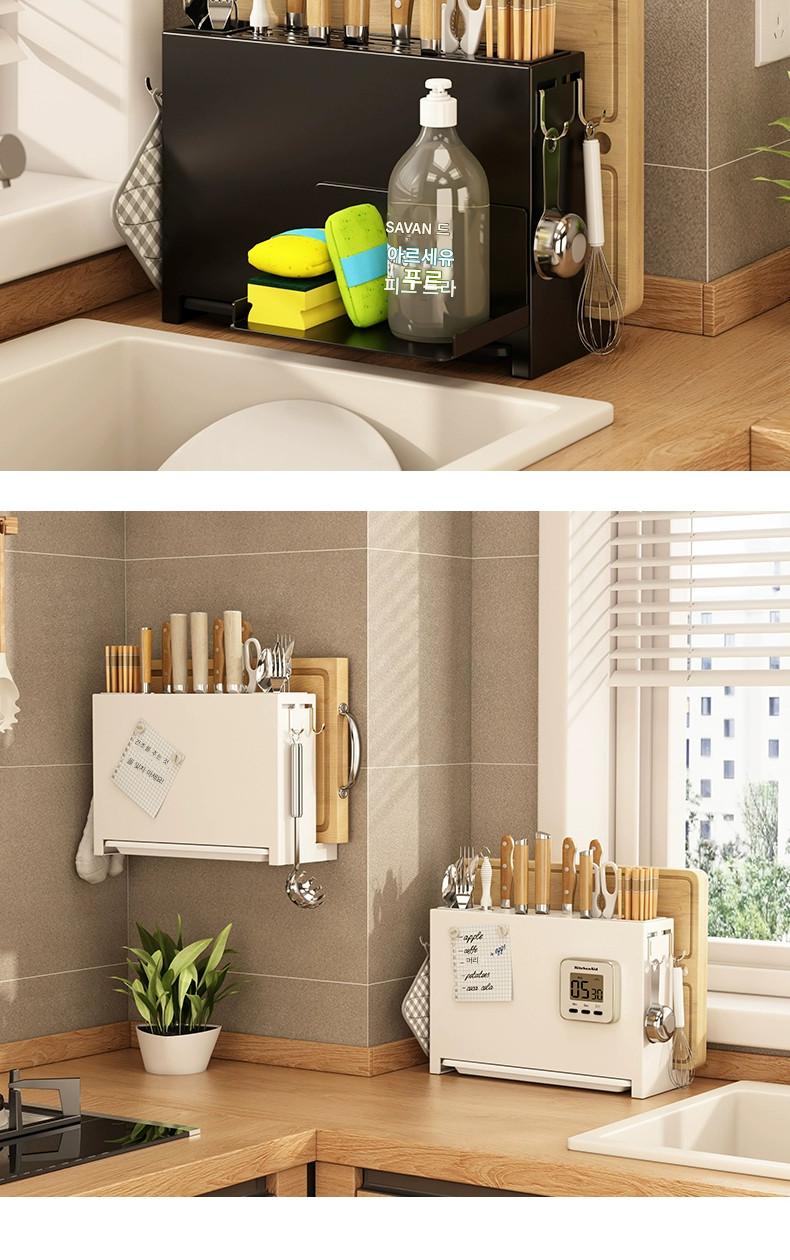 주방 칼꽂이 다기능 조리대 도마 도마 젓가락 젓가락 꽂이 통합 수납 배수구 칼꽂이 벽면 장착