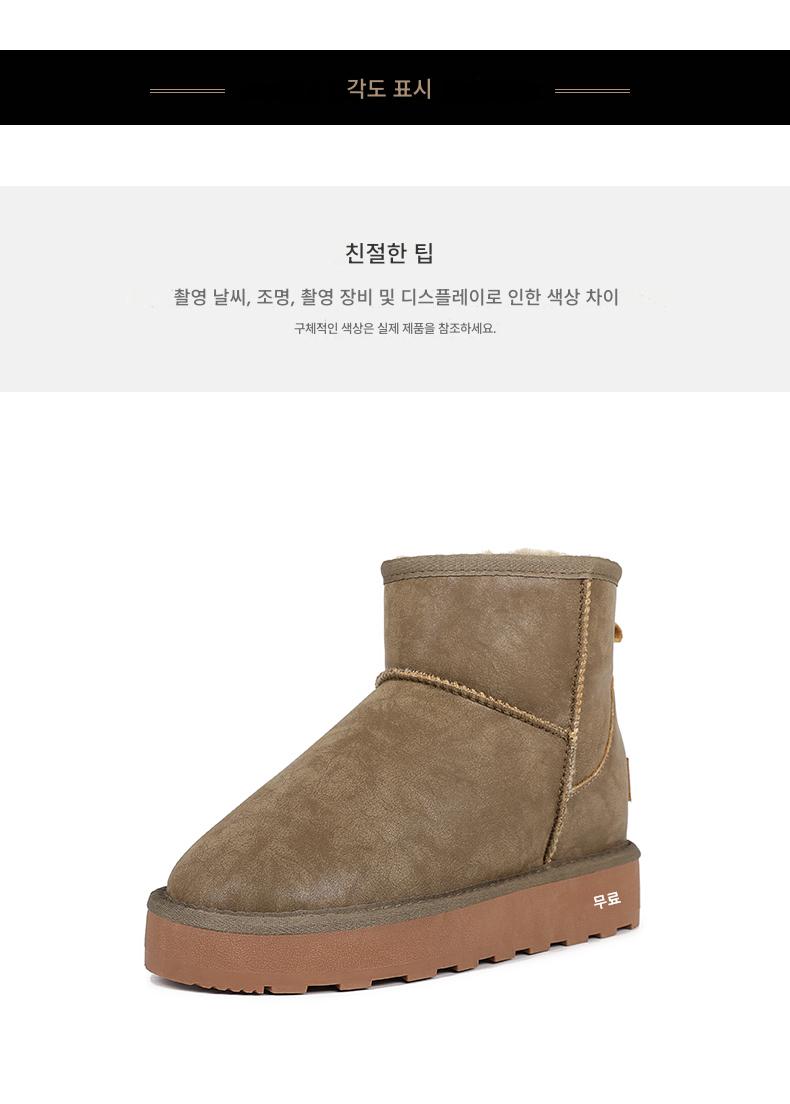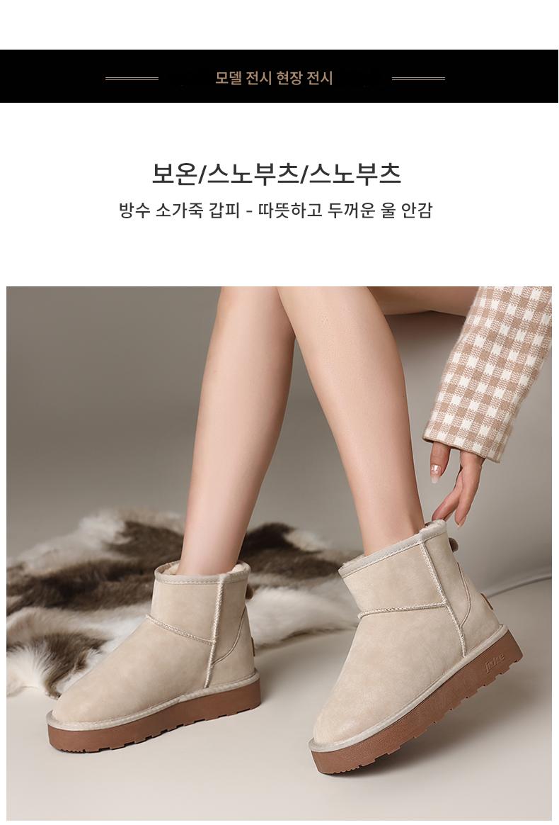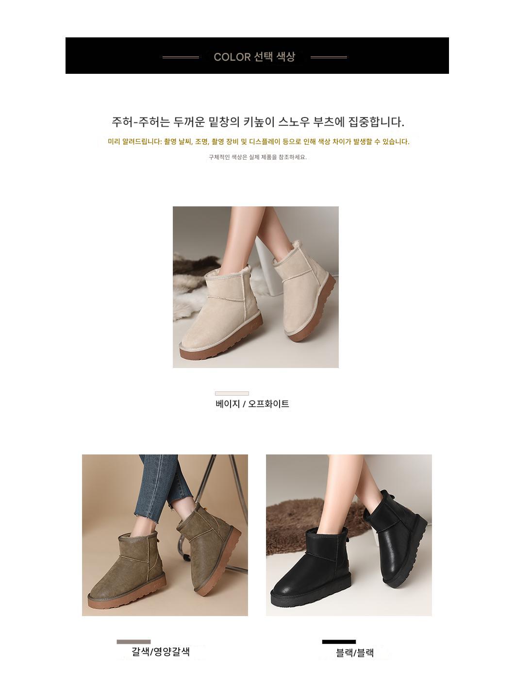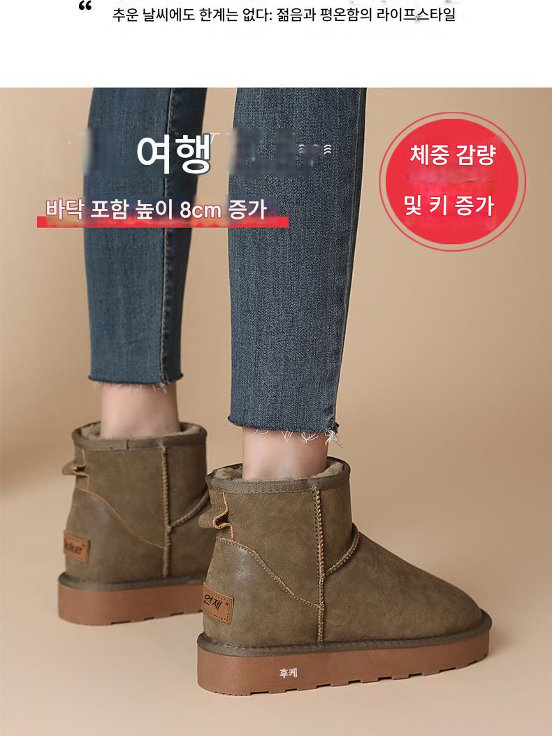 주허 2025 겨울 짧은 튜브 두꺼운 바닥 8CM 높이가 있는 스노우 부츠 여성용 스웨이드 가죽 부츠 방수 코튼 슈즈