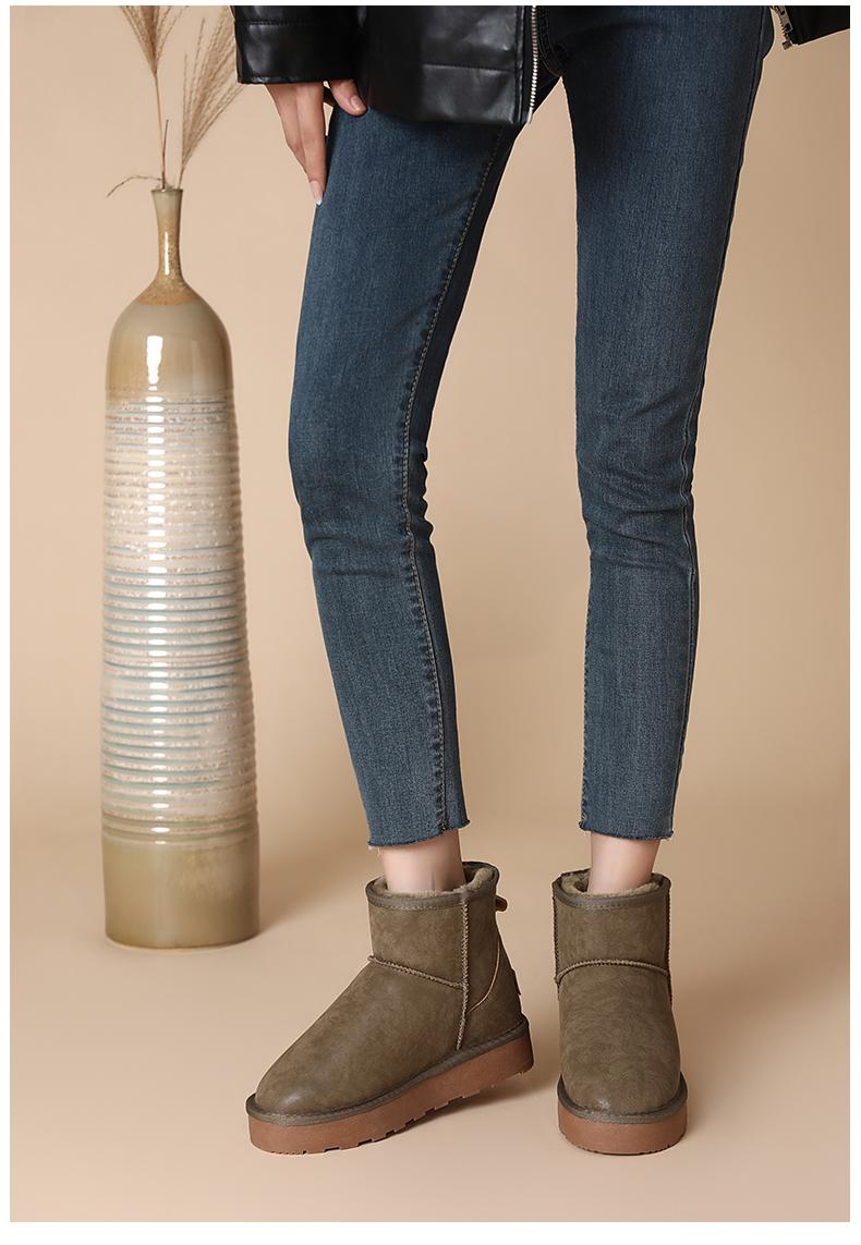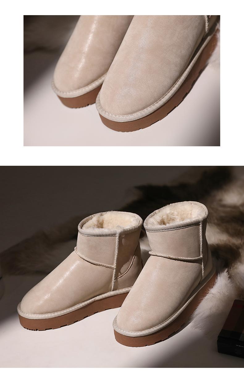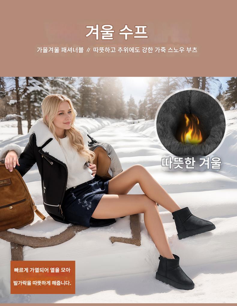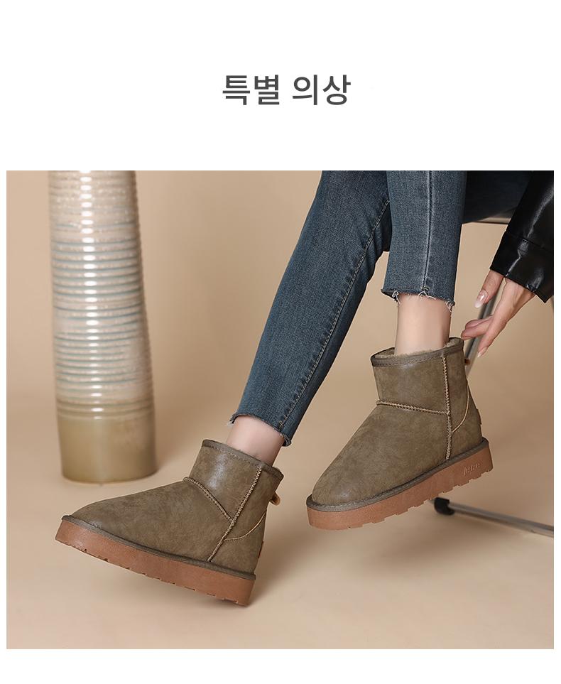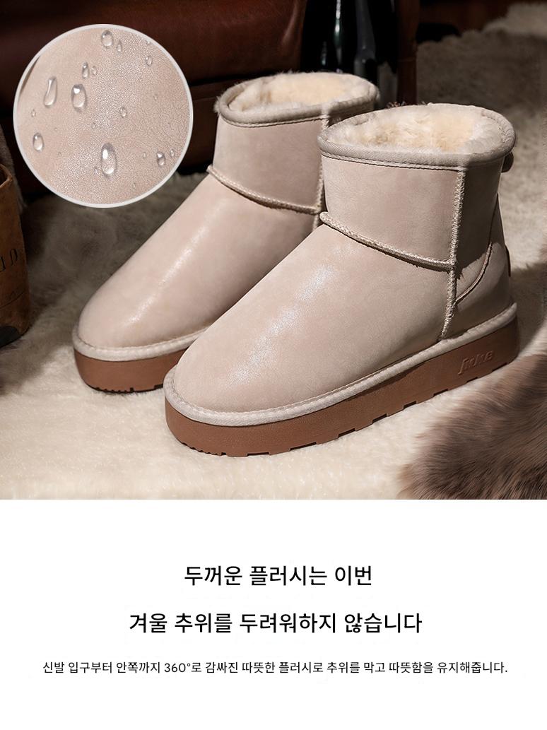 주허 2025 겨울 짧은 튜브 두꺼운 바닥 8CM 높이가 있는 스노우 부츠 여성용 스웨이드 가죽 부츠 방수 코튼 슈즈