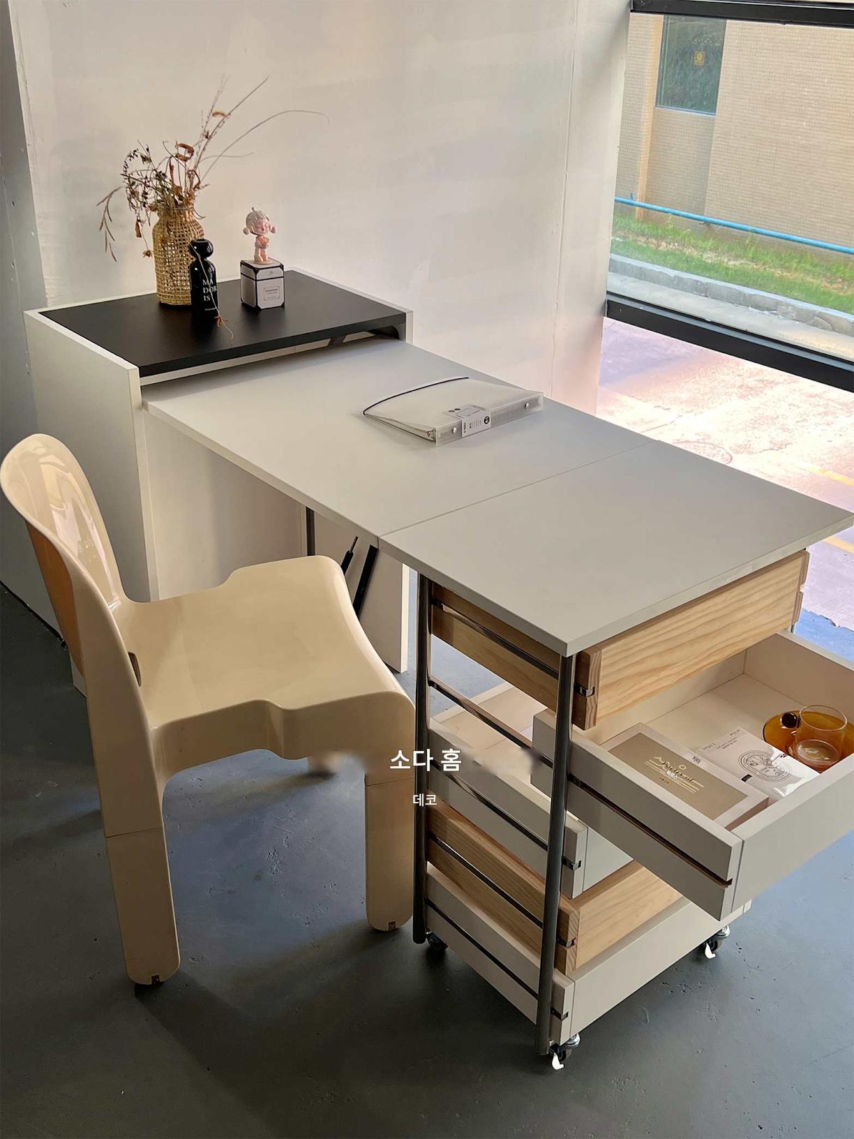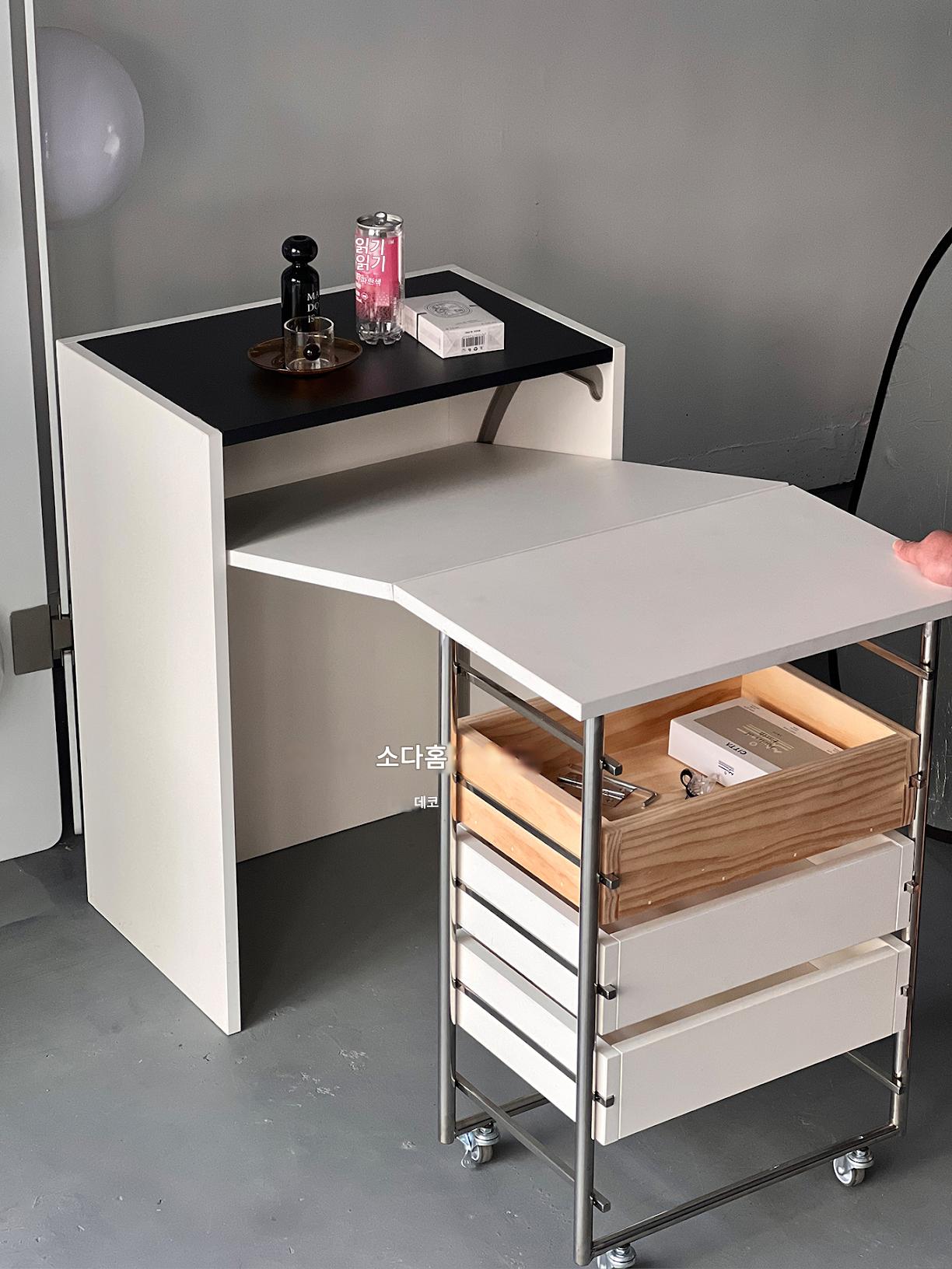 중고 솔리드 우드 접이식 테이블 다기능 직사각형 보이지 않는 침대 옆 탁자 이동식 카트 서재 사무실 책상