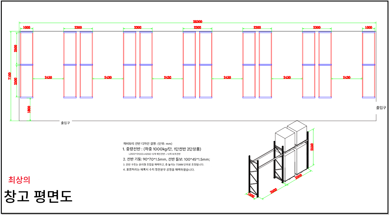 主架4层含板/蓝橘色 > 内长2500*宽1000*高*3000/单层载重1吨