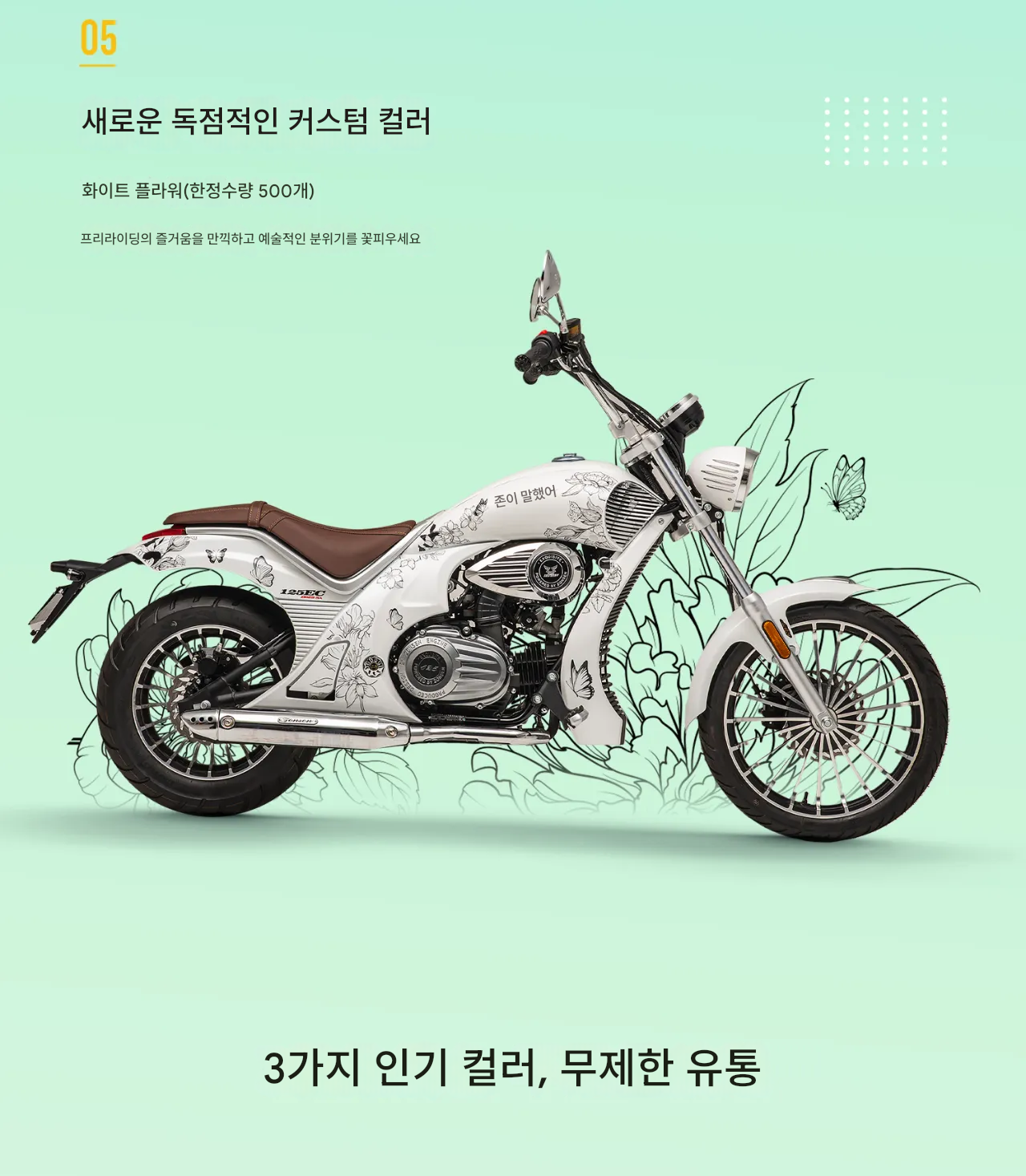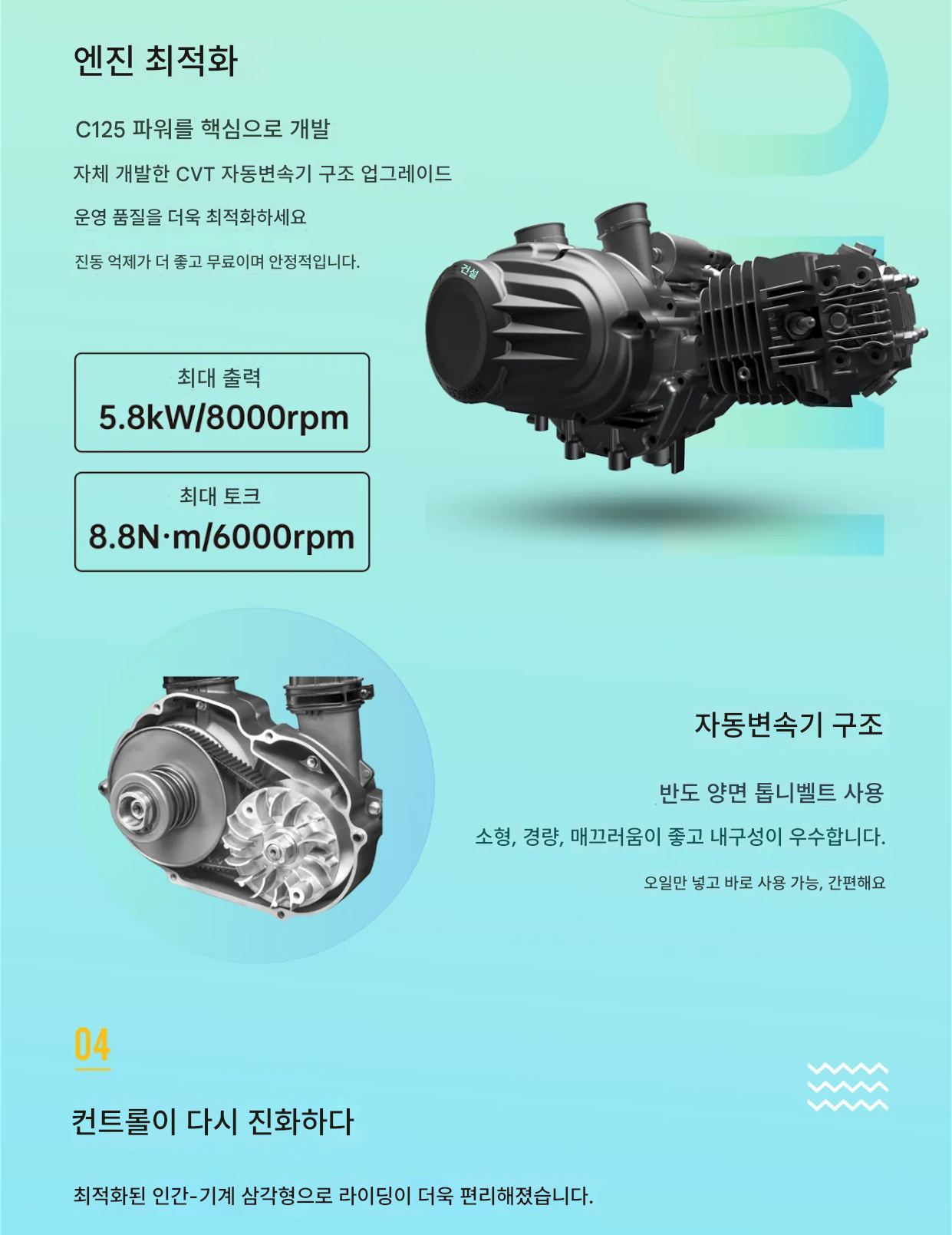중선유미요미 오토바이 중선유미125는 기어를 바꿀 필요가 없고 무한변속이 간편하고 등록이 가능합니다.