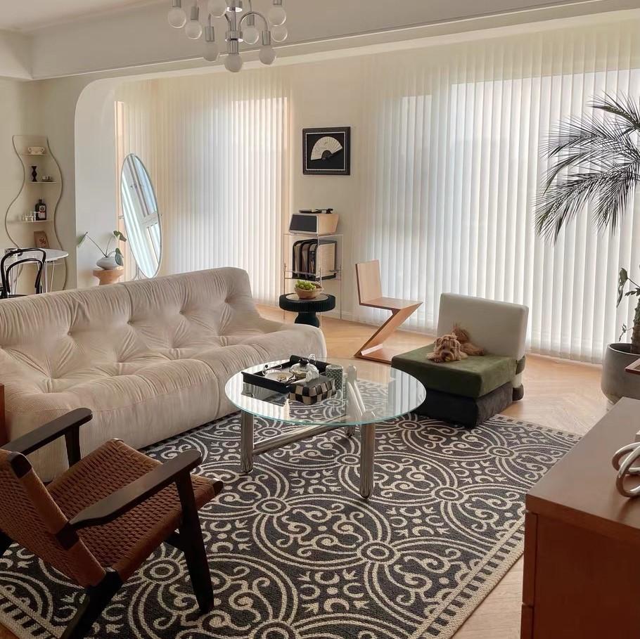 중세풍 주택 블랙 레트로 루프 파일 카펫 거실 고급 커피 테이블 매트 침실 서재 옷장 카펫 매트