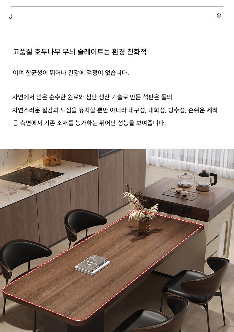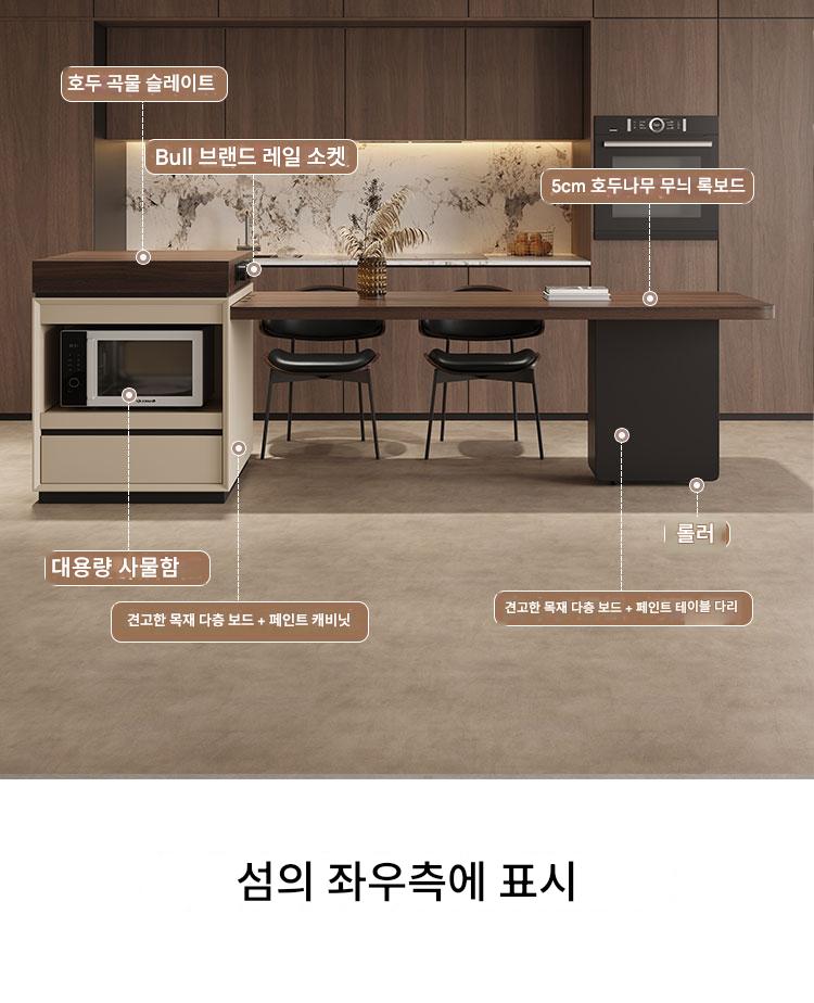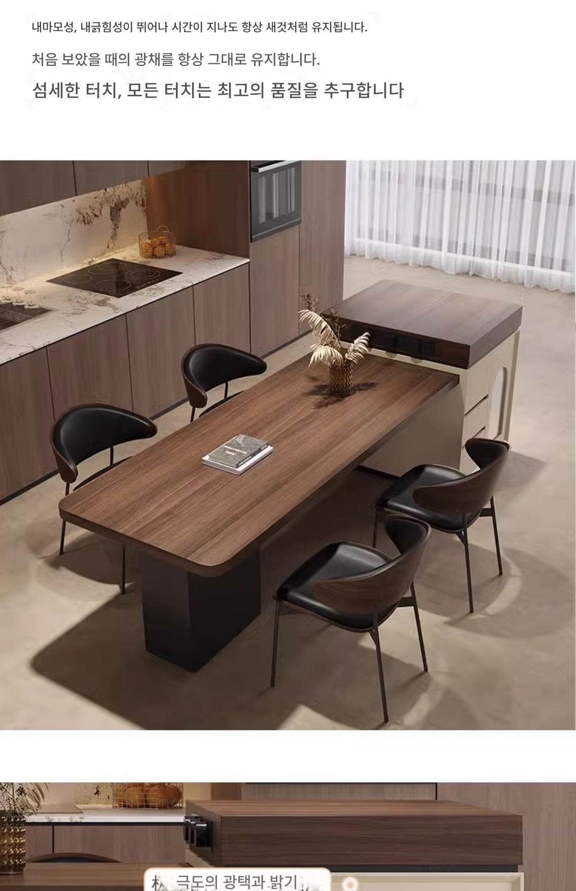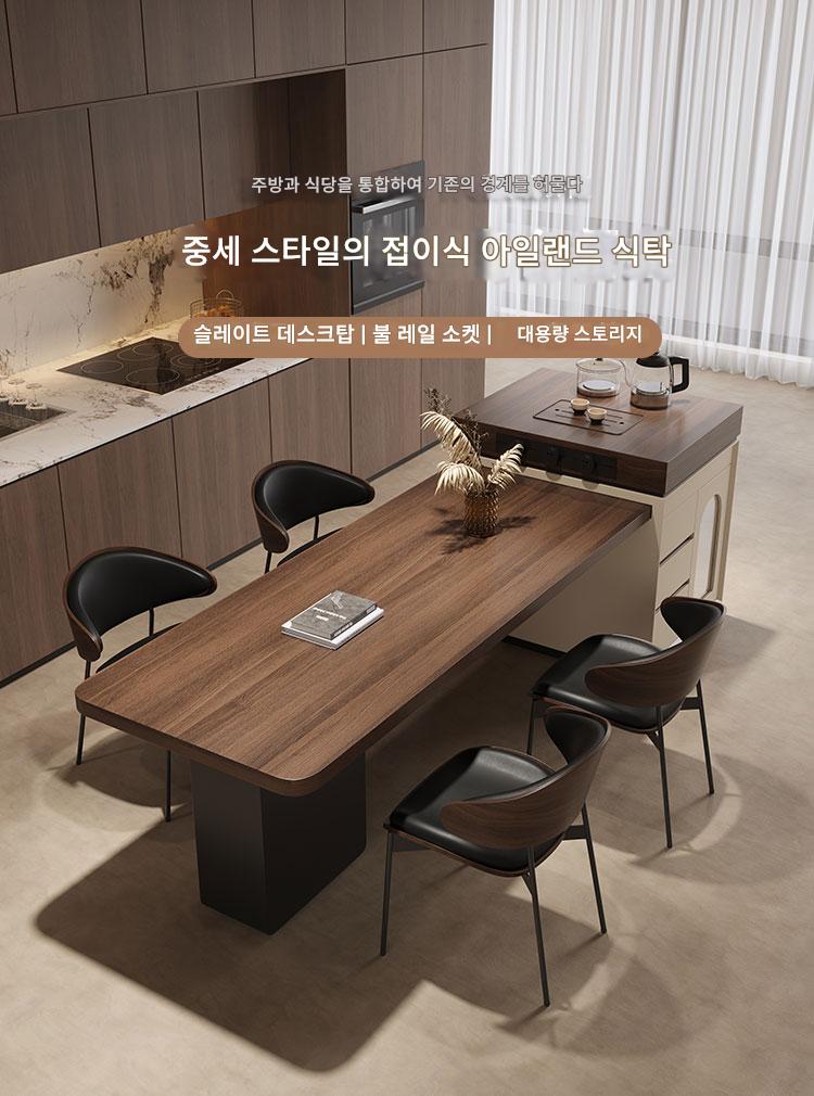중세 스타일 검은 호두 나무 무늬 록 플레이트 섬 테이블 식탁 통합형 접이식 다기능 대형 아파트 고급 섬 테이블