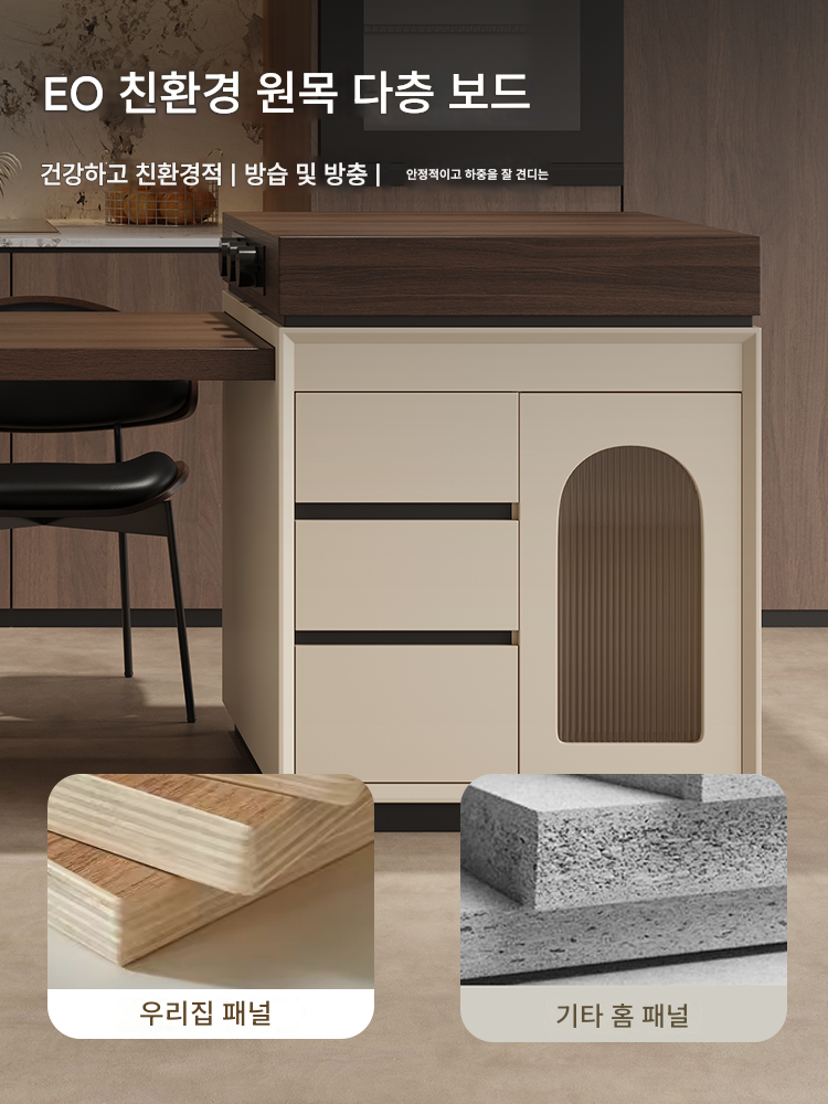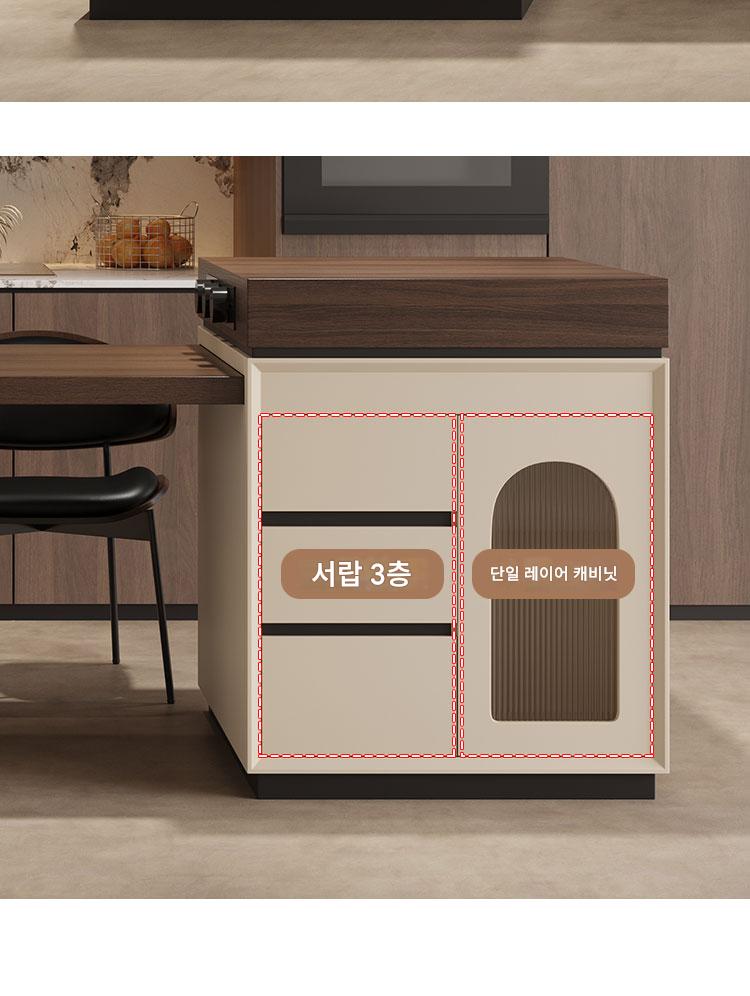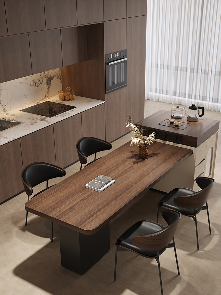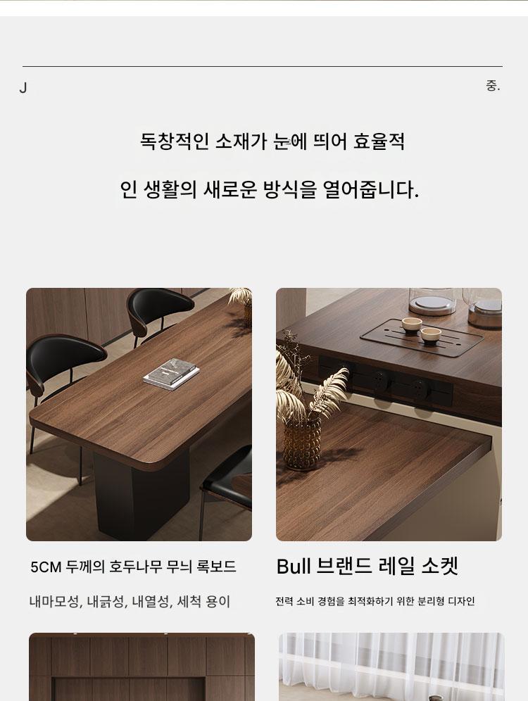 중세 스타일 검은 호두 나무 무늬 록 플레이트 섬 테이블 식탁 통합형 접이식 다기능 대형 아파트 고급 섬 테이블