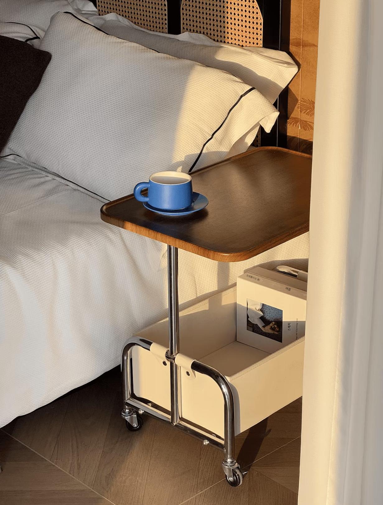 중세 스타일 사이드 테이블, 작은 트롤리 랙, 바퀴 달린 이동식 소파, 모던 심플 커피 테이블, 침대 옆 캐비닛
