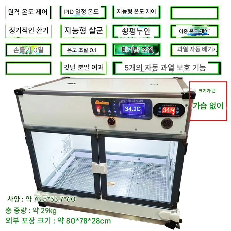 지능형 앵무새 인큐베이터 이중 온도 제어 주파수 변환 일정 온도 보습 0 제로 데이 손으로 키운 어린 새 병아리 대형 pid