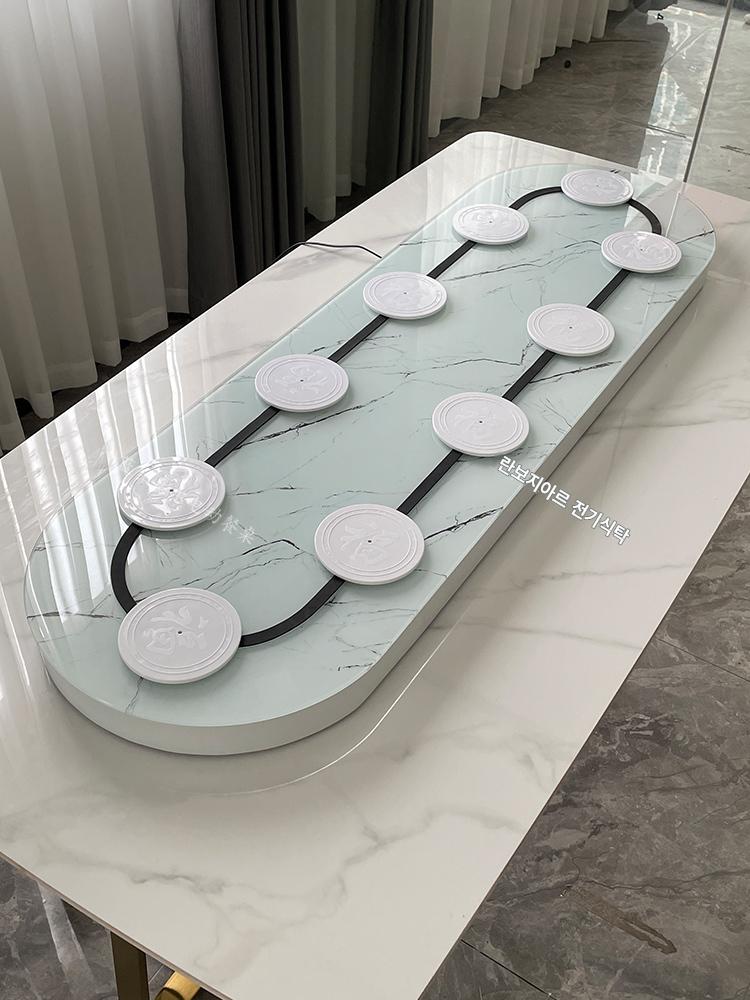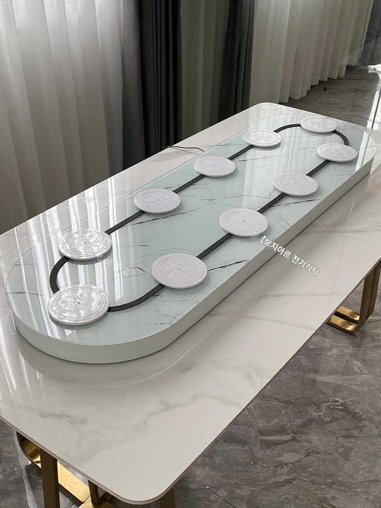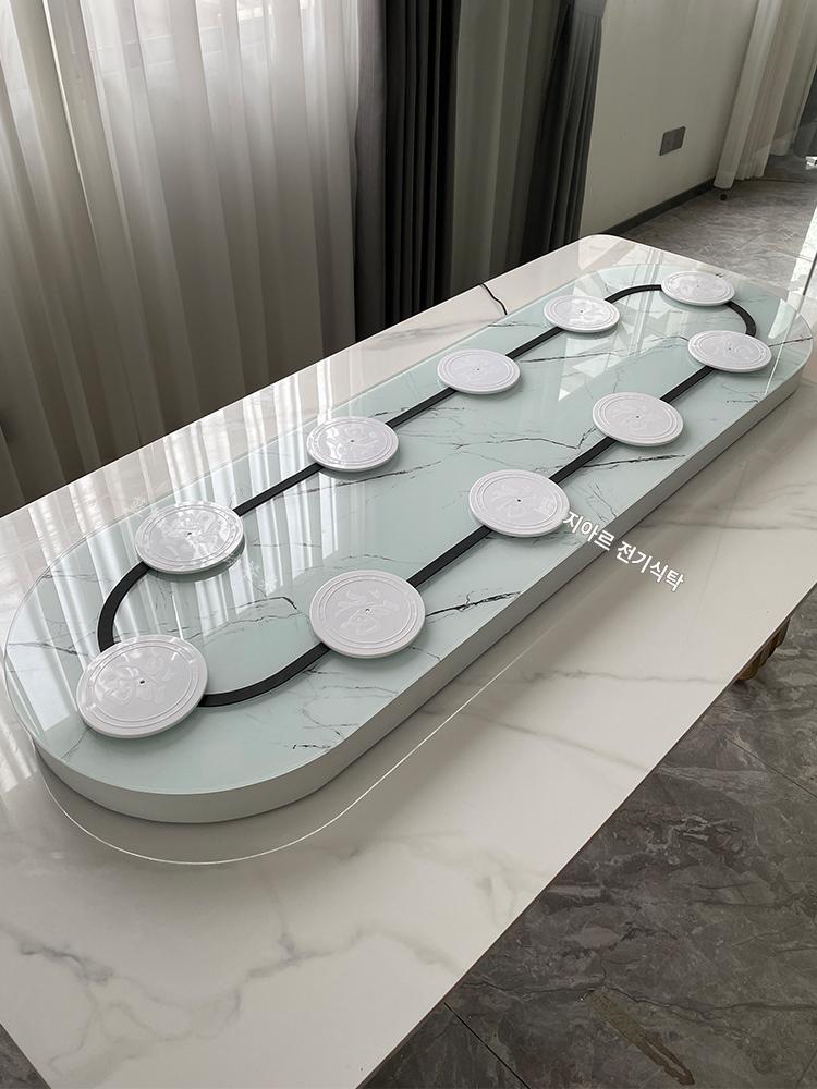 직사각형 식탁 전기 턴테이블 가정용 심플 통합 롱 테이블 지능형 원격 제어 자동 회전 무소음 컨베이어 벨트