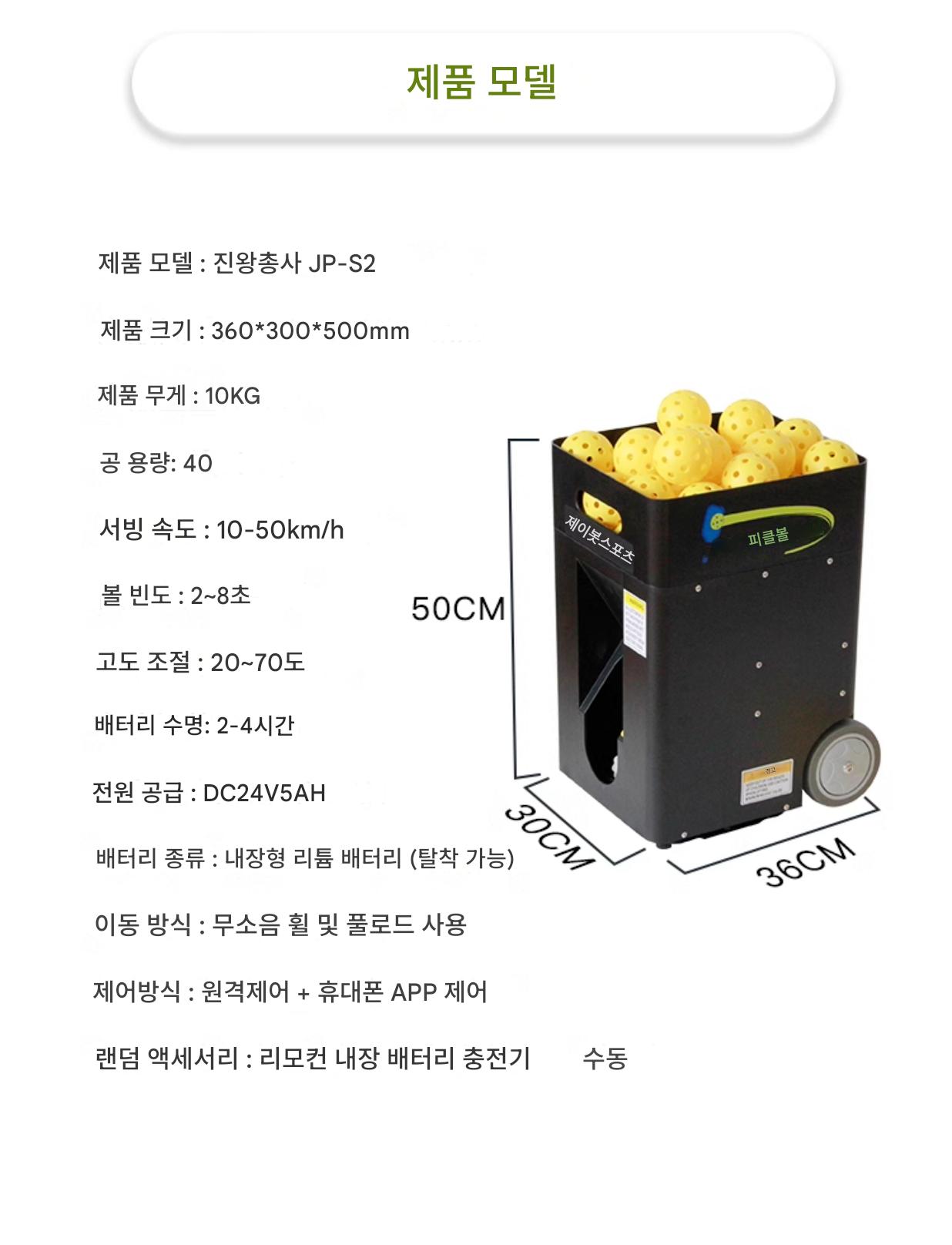 진왕 머스킷티어 JP02 피클볼 서브 머신 좌우 서브 초보자 고급 트레이닝 휴대용
