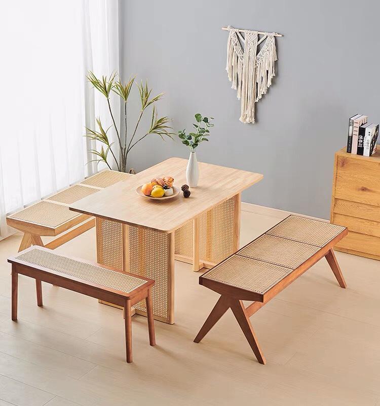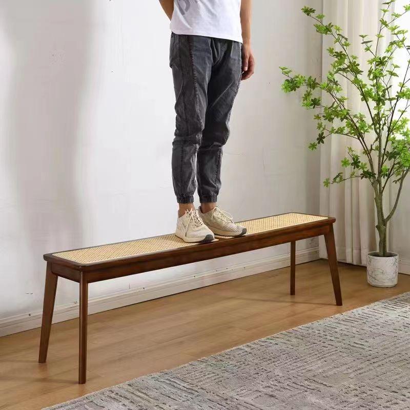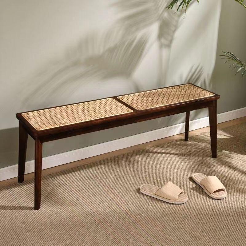 찬디가르 의자 라탄 롱 벤치 홈 솔리드 우드 다이닝 의자 일본식 통나무 롱 벤치 침대 끝 벤치 신발 벤치