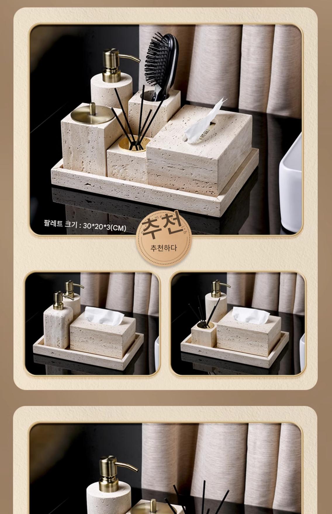 “천연 노란색 트라버틴 트레이 장식 호텔 욕실 대리석 세면용품 현관 보석 아로마테라피 보관 트레이”의 첫 상품평을 남겨 주세요