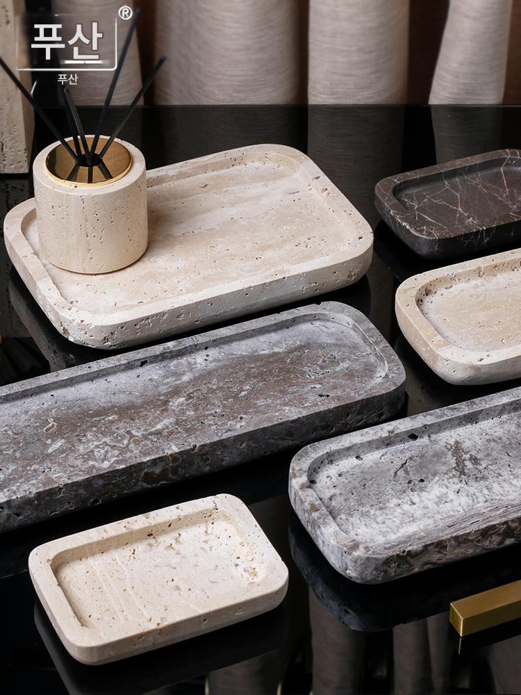 천연 노란색 트라버틴 트레이 장식 호텔 욕실 대리석 세면용품 현관 보석 아로마테라피 보관 트레이