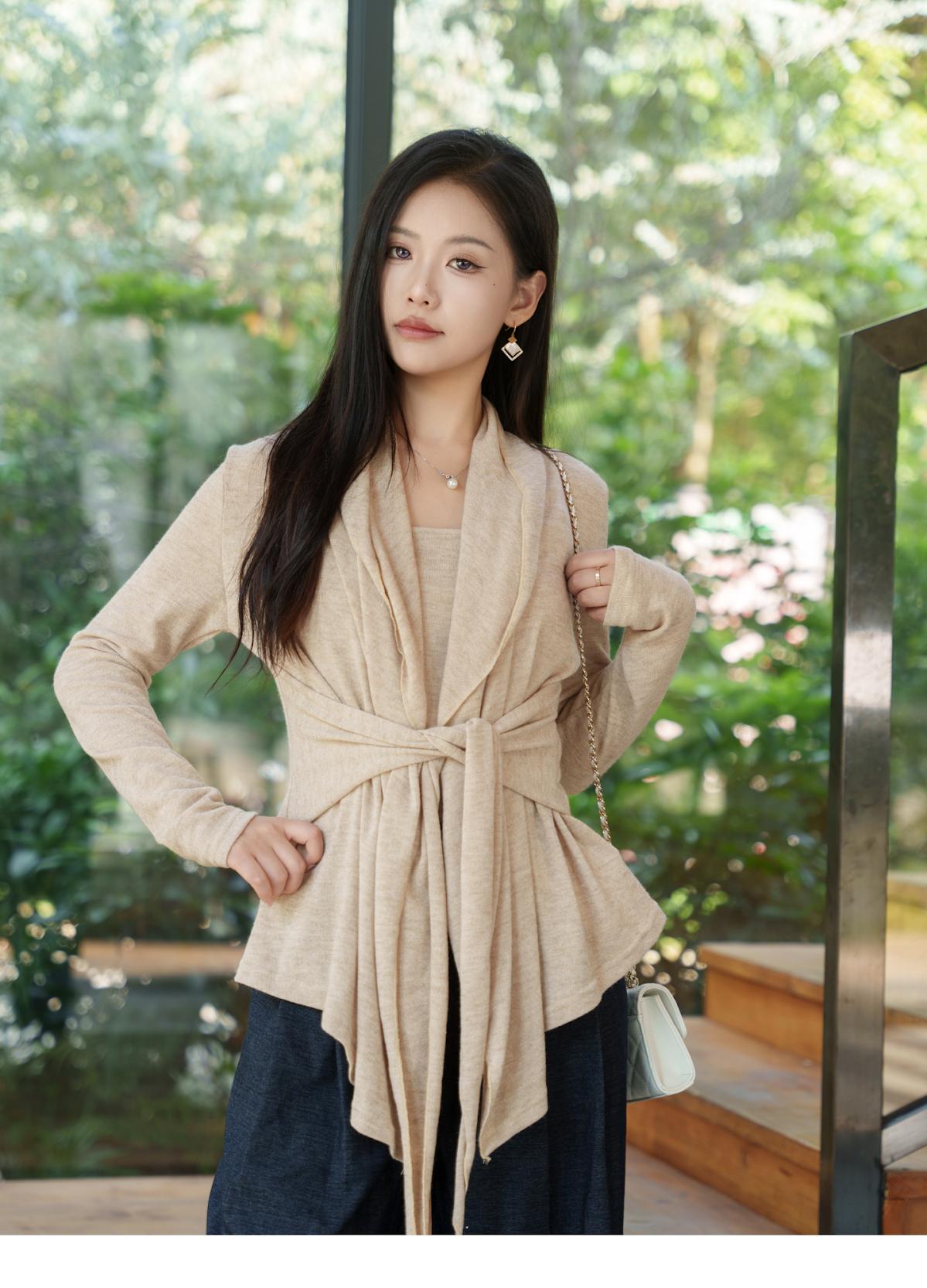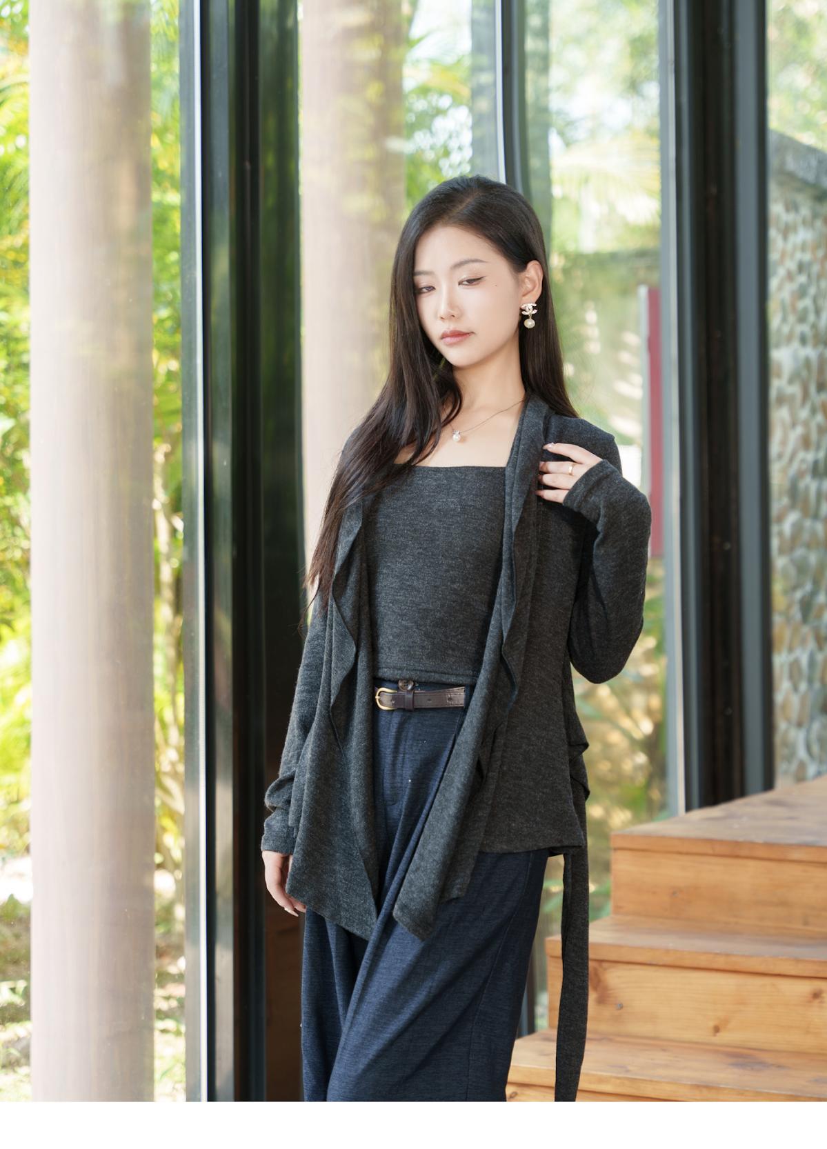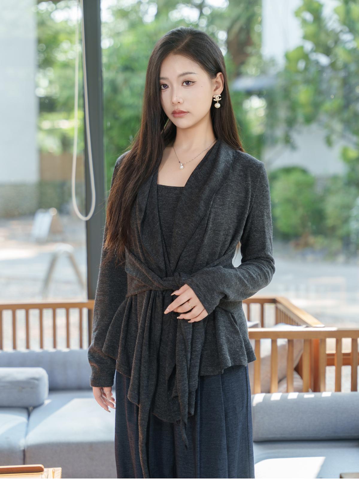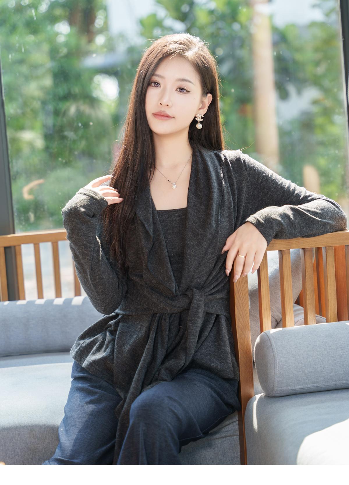 초가을 니트 스웨터 여성 2025 신상품 가을 레이지 스타일 카디건 투피스 세트 가을 웨어 네이비 블루 웨어 허리