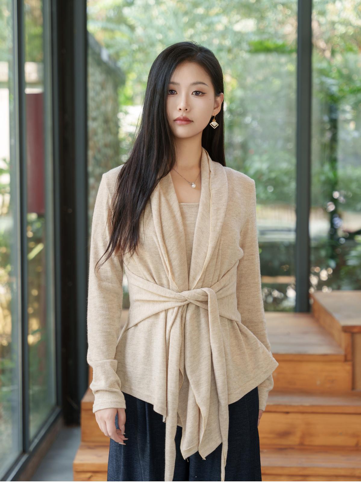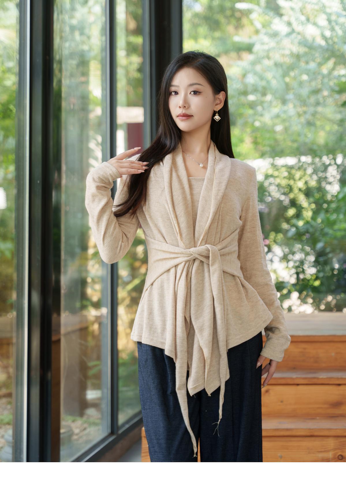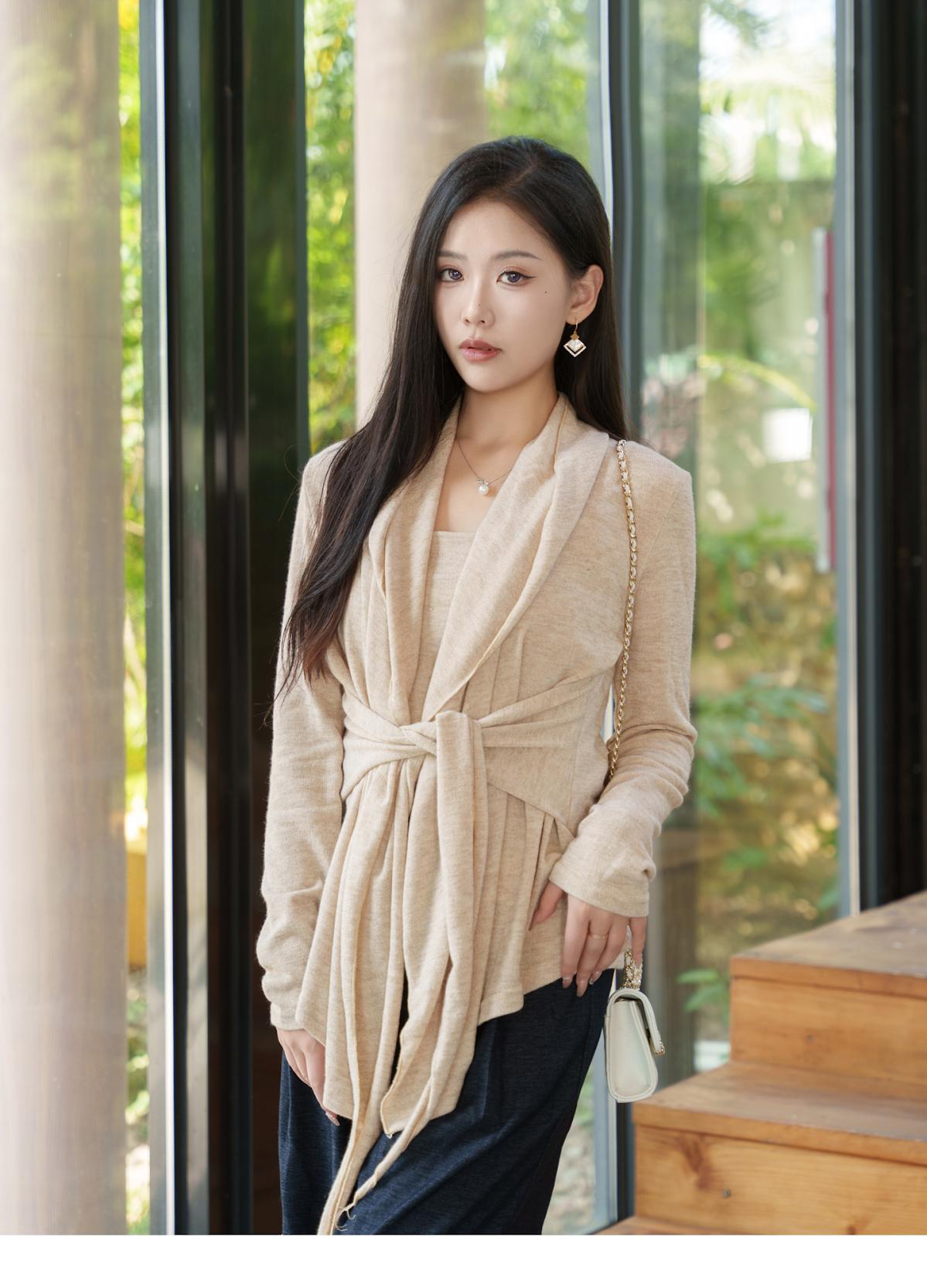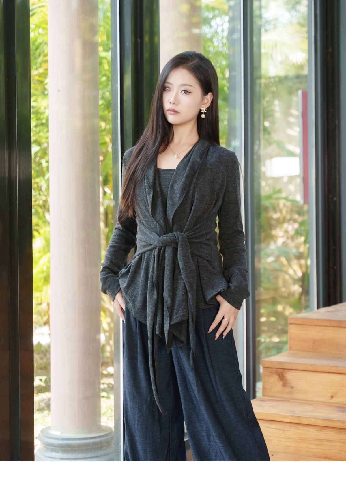 초가을 니트 스웨터 여성 2025 신상품 가을 레이지 스타일 카디건 투피스 세트 가을 웨어 네이비 블루 웨어 허리