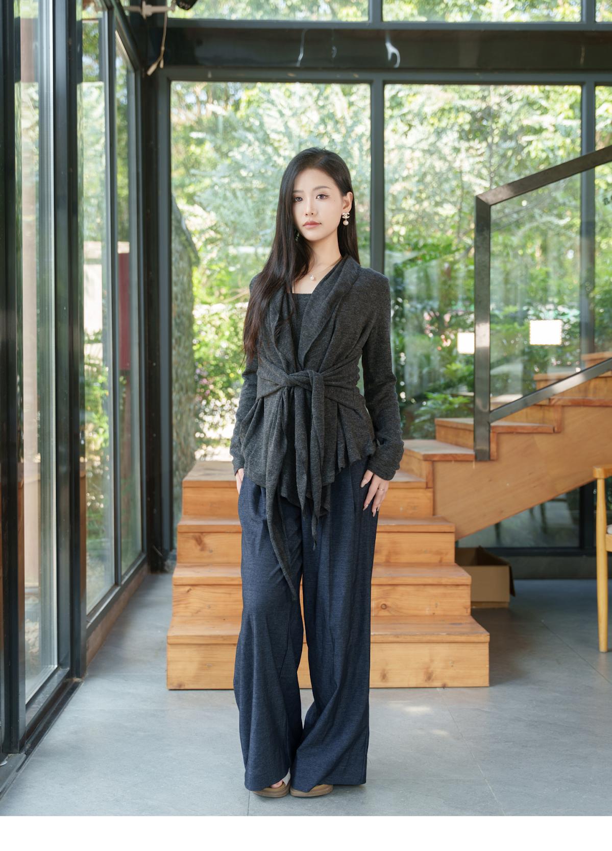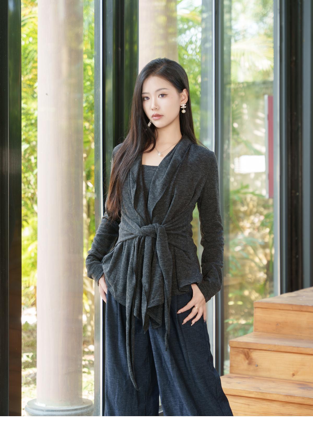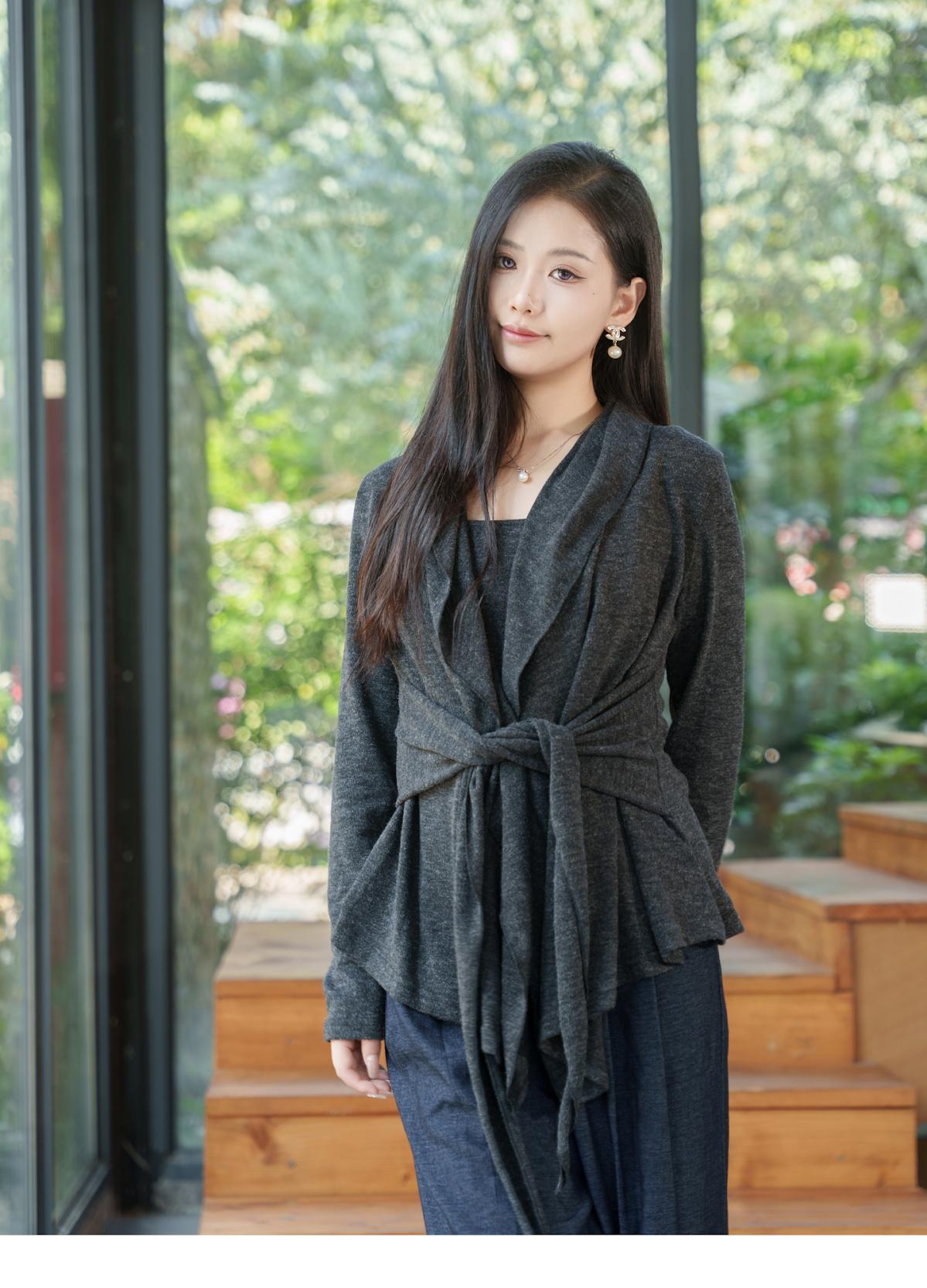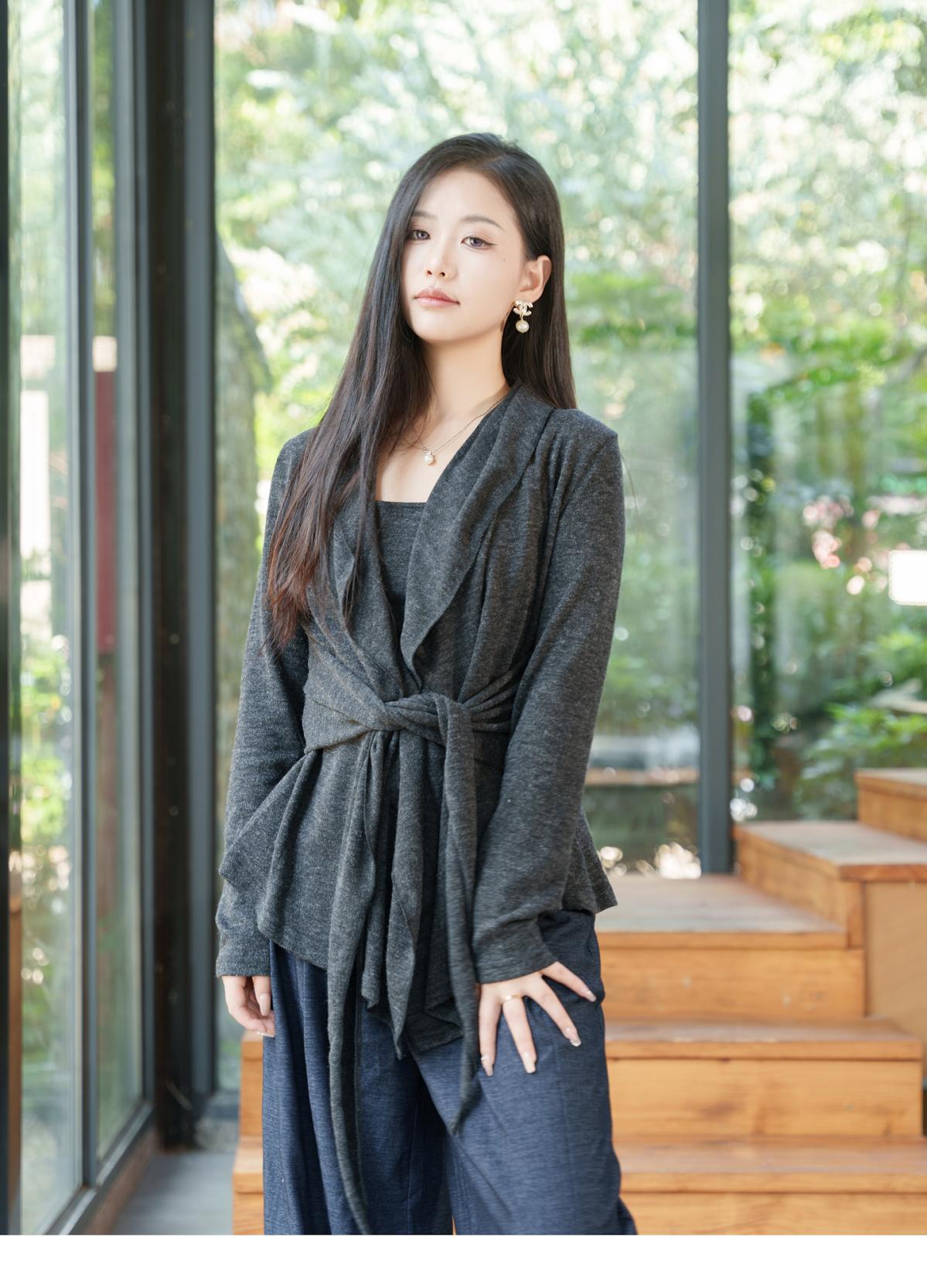 초가을 니트 스웨터 여성 2025 신상품 가을 레이지 스타일 카디건 투피스 세트 가을 웨어 네이비 블루 웨어 허리